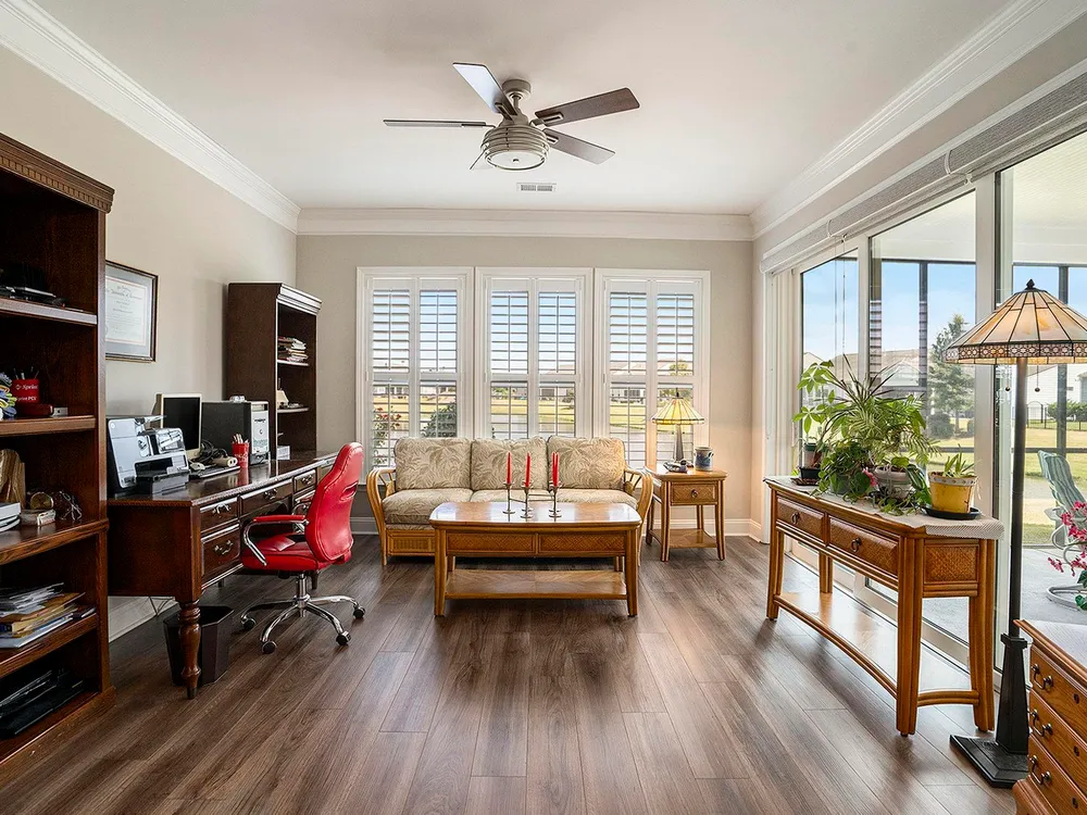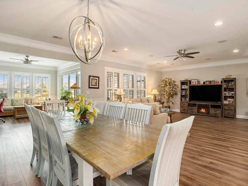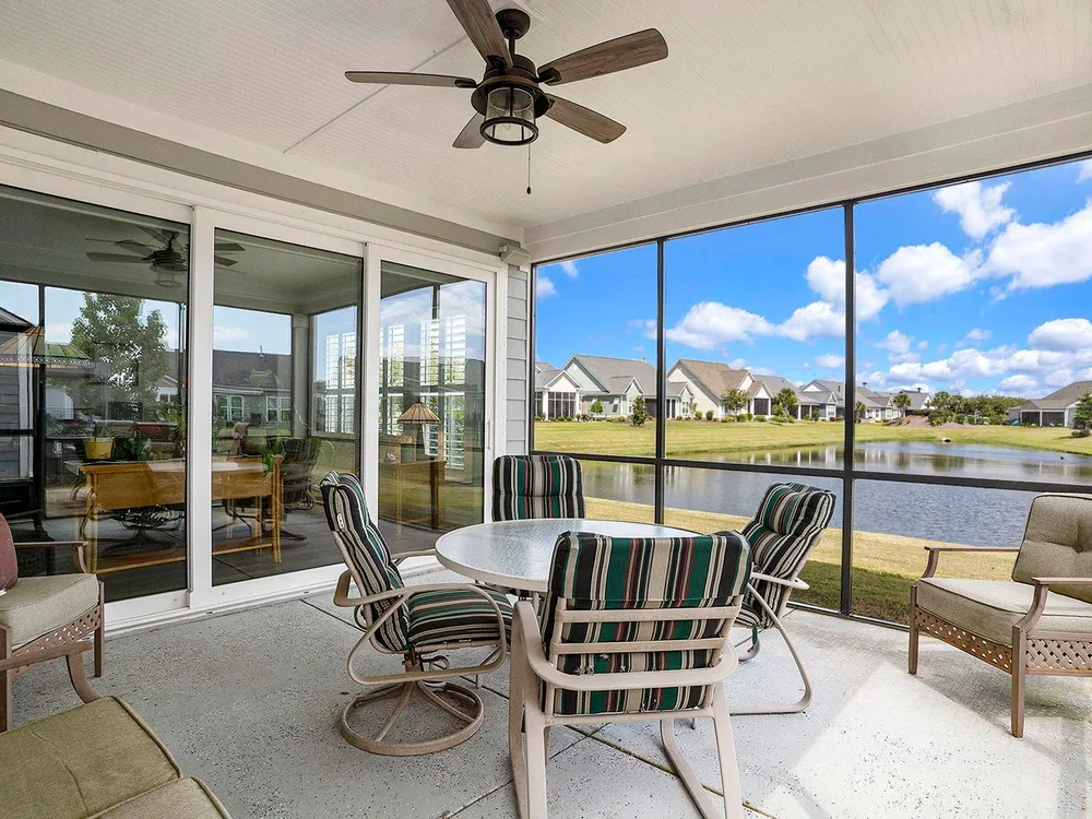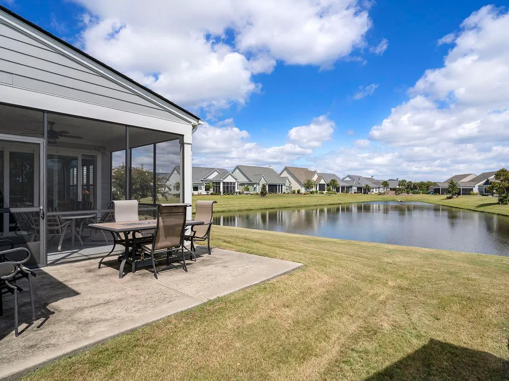 Welcome to 6586 Brindisi Street – Your Dream Home at the beach! Located in the heart of Myrtle Beach within the highly desirable Del Webb 55+ community, this meticulously maintained pond-side home is packed with premium upgrades and thoughtful design features throughout. Step inside to find elegant touches like wide baseboards, crown molding, wainscoting, and custom blinds. The floor plan includes a functional mudroom, a pass-through from the primary suite to the laundry room, and a roomy two-car garage with additional storage. Enjoy modern conveniences with a brand-new tankless water heater, built-in speakers, and a CPI security system for peace of mind. The owner’s suite features a walk-in closet, ceiling fan, and a spa-like en-suite bath complete with dual sinks and a spacious beautifully tiled shower. Start your morning with coffee or wind down your day relaxing in your airy screened-in porch taking in the tranquil pond view. Enjoy low-maintenance living with HOA-covered lawn care and access to resort-style amenities, including: a beautifully appointed clubhouse, indoor and outdoor pools, hot tub, fitness center, tennis & pickleball courts, private beach club, and a vibrant calendar of social events. Just minutes from top-rated restaurants, shopping, and healthcare facilities, Del Webb at Myrtle Beach offers not just a home—but a lifestyle. Don’t miss your opportunity to live in one of the area’s most sought-after communities. Schedule your private showing today!