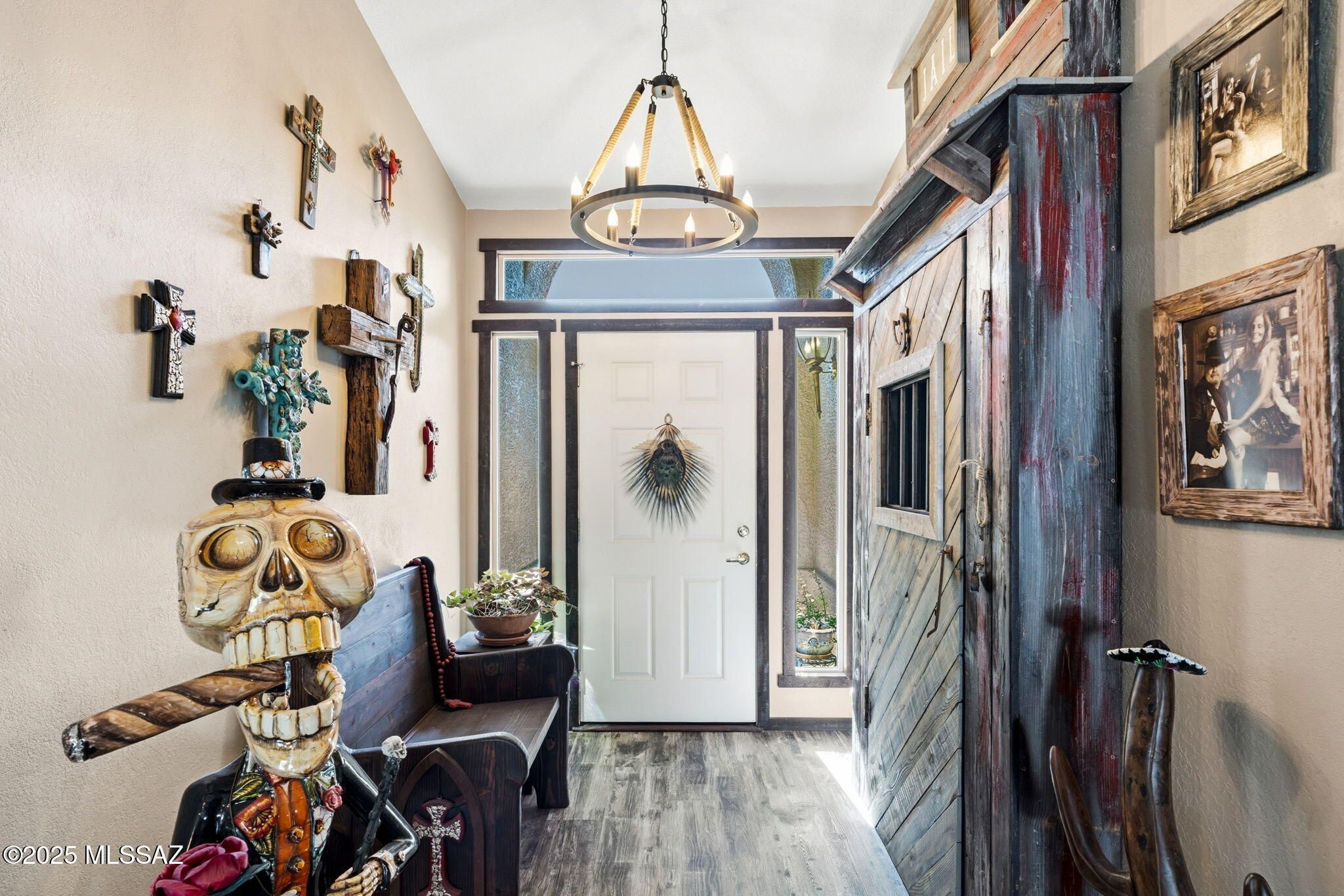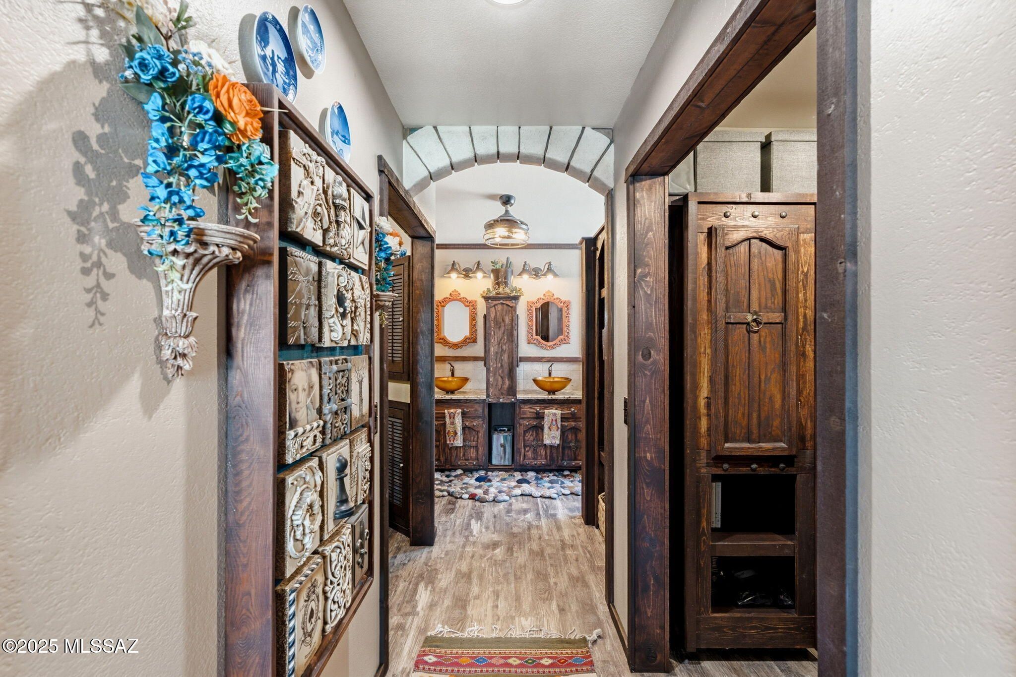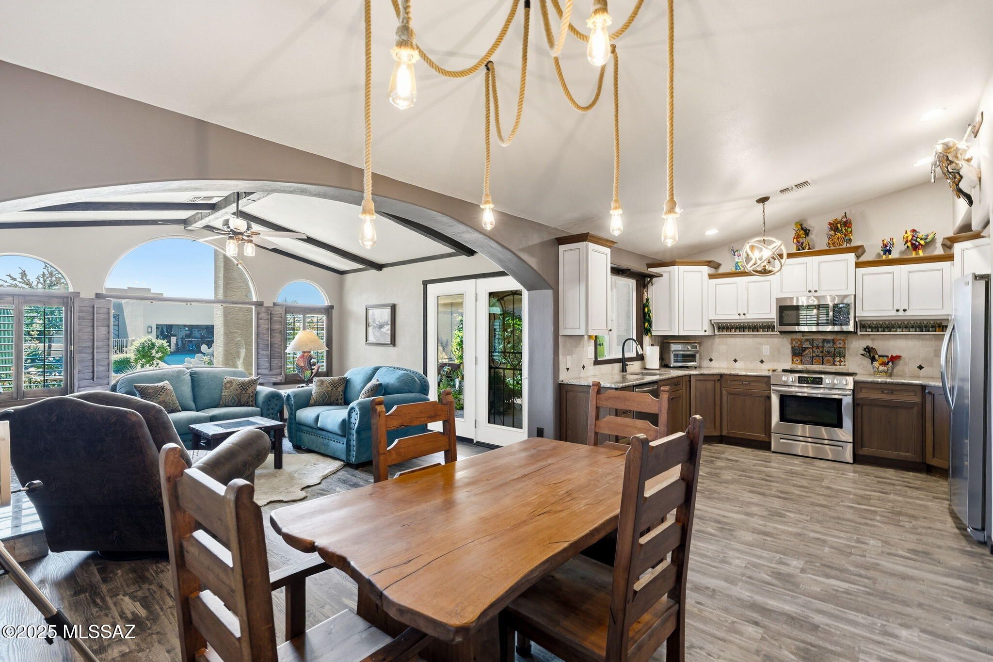 Inspired by Old Spanish & Western Interior design this exceptional whole house remodel reflects custom craftmanship bringing the Old World into the 21st century. Featured design elements include solid wood handcrafted accents such as 12' oak & mesquite wood bar, custom wood beams, Turkish antique wooden doors, stack stone, Luxury vinyl plank flooring, new plush carpet. Kitchen remodel includes beautiful granite, travertine back splash, Talavera inset, stainless-steel appliances. Sellers have spent countless hours & funds replacing those hidden home components...plumbing, sewer lines, windows ,mechanicals and roof. Additionally, all exterior walls & raised garden beds have been stucco & painted. Not lack of attention has been given to the awesome exterior of this wonderful home...