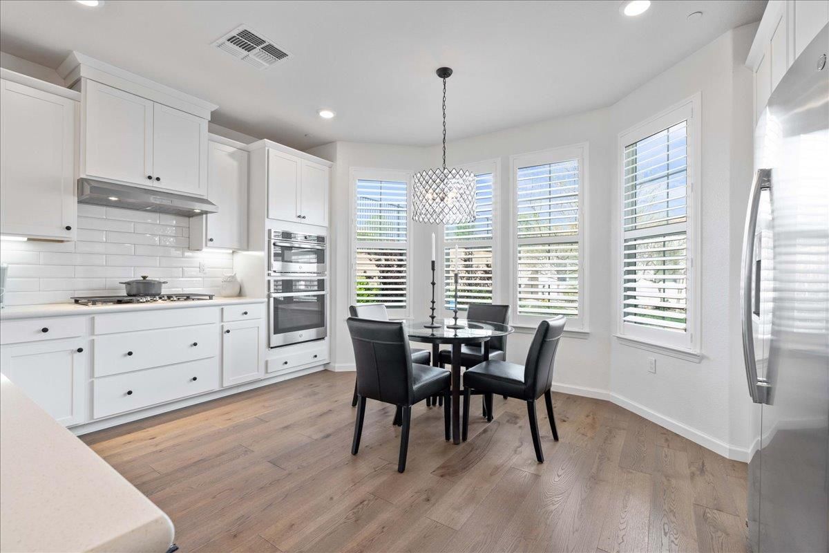 This stunning home sits on a generous cul-de-sac lot in the highly desirable Heritage El Dorado Hills 55+ gated community. Part of the Reflections Collection, it features an upgraded exterior elevation that enhances its curb appeal and a floor plan that lives larger than its square footage. The heart of the home is a spacious great room that is perfect for everyday living & effortless entertaining. The kitchen is a chef's delight with shaker cabinets, quartz countertop, a full-height subway tile backsplash, & GE Profile stainless steel appliances. A large dining bar seats four, and the sunny breakfast nook is a cozy place to enjoy your morning coffee. Upgrades throughout the home include rich engineered hardwood flooring, large tile flooring in the bathrooms, Hunter Douglas shutters, & designer light fixtures. The primary suite features an abundance of windows, quartz counters, & a curbless walk-in shower with a built-in bench & dual showerheads. Enjoy peaceful sunset views from your back patio & beautifully landscaped backyard, with a wrought iron fence that opens up the space. Owned solar keeps energy bills extremely low! The resort lifestyle awaits you with 2 private clubhouses, pools, fitness centers, pickleball, tennis, bocce ball, walking trails, activities galore, & more!