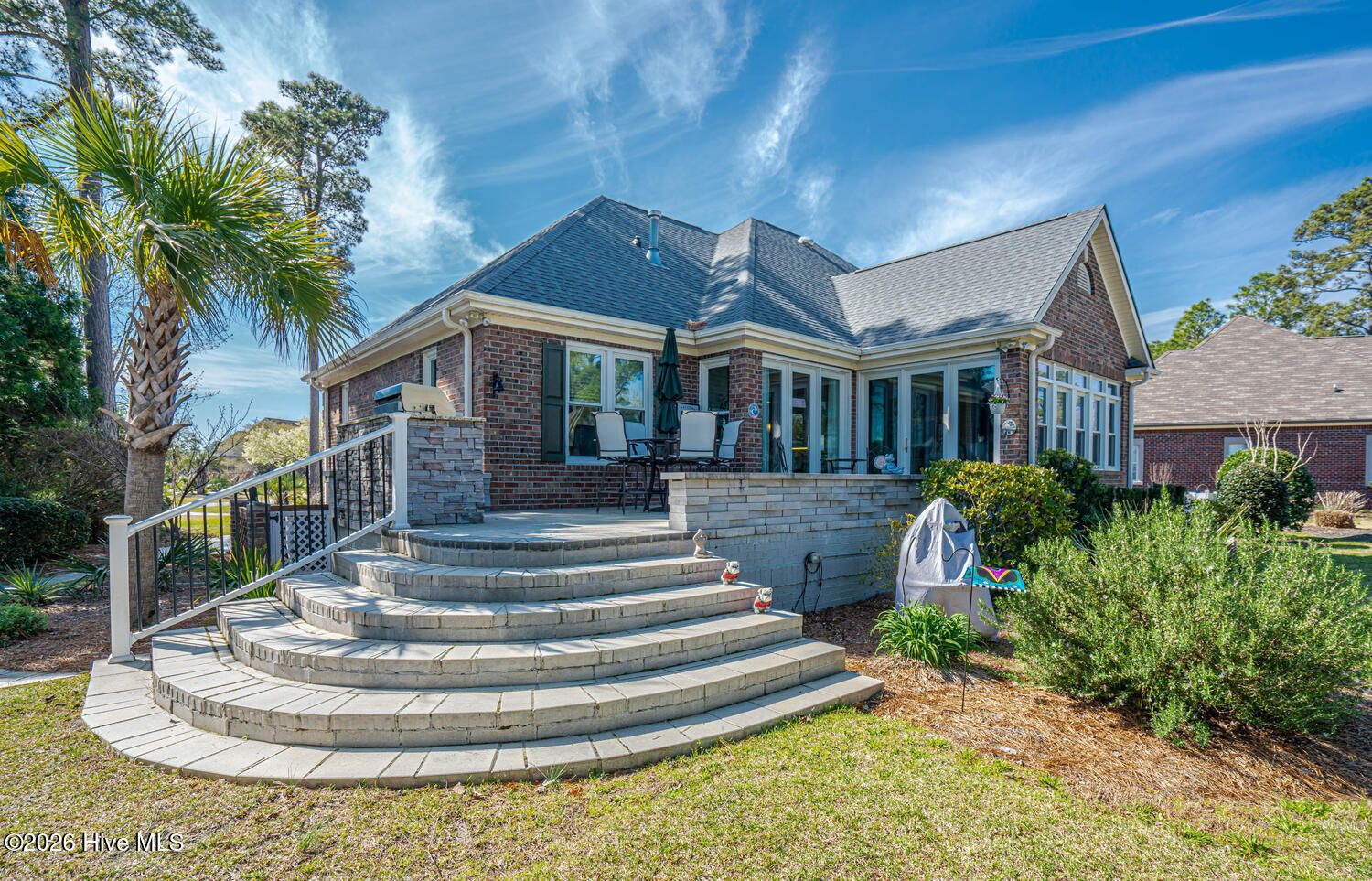 Almost completely renovated within the last few years, this low-maintenance 3BR/3BA brick beauty is located on a quiet notch in the heart of Ocean Ridge Plantation. This home backs up to the par 4 15th green of Panther's Run Golf Course so you can see the approach shots come in from the beautifully renovated sunroom. New glass along the back of the home to enjoy abundant natural light and the breathtaking setting with pond/golf views and mature landscaping. Huge outdoor paver patio to enjoy our year-round temperate climate and an outdoor kitchen. A common area out in front of the home provides an additional buffer for even more privacy. This 2513 square foot home offers the coveted split floor plan with the primary bedroom on one side and the 2 guest bedrooms on the other side for added privacy for all. Bonus room upstairs has a full bath and is currently being used as a bedroom, but it could also be a great entertainment or craft room. Features an open kitchen overlooking the cozy living room anchored by a beautiful fireplace/mantle. The kitchen was completely remodeled with granite, tile backsplash, painted/refinished cabinets, and newer stainless steel appliances. Both bathrooms downstairs were renovated within the last few years with new tiled showers, vanities, sinks, toilets, and a soaking tub in the primary bath. Other recent upgrades include the re-stained wood flooring in the living room, beautiful tiled flooring throughout much of the main level, new lighting/ceiling fans, a whole-house reverse osmosis system, a new roof in 2022, crawl space was encapsulated by the current owners with a dehumidifier, an epoxy garage floor, and a new HVAC in 2017 (and air handler replaced in 2025). So many updates it's hard to list them all...This one is move-in ready! A must-see in Ocean Ridge Plantation which is widely regarded as the premier community in southern NC. Ocean Ridge is home to 4 great golf courses, 2 golf clubhouses, 2 amenity centers with a heated indoor pool, jacuzzi, sauna, steam room, 2 outdoor pools, pickleball courts, a newly remodeled fitness center, meeting/party rooms, a nature pavilion, walking trails, a community garden, & a beach clubhouse on the locals favorite, Sunset Beach!