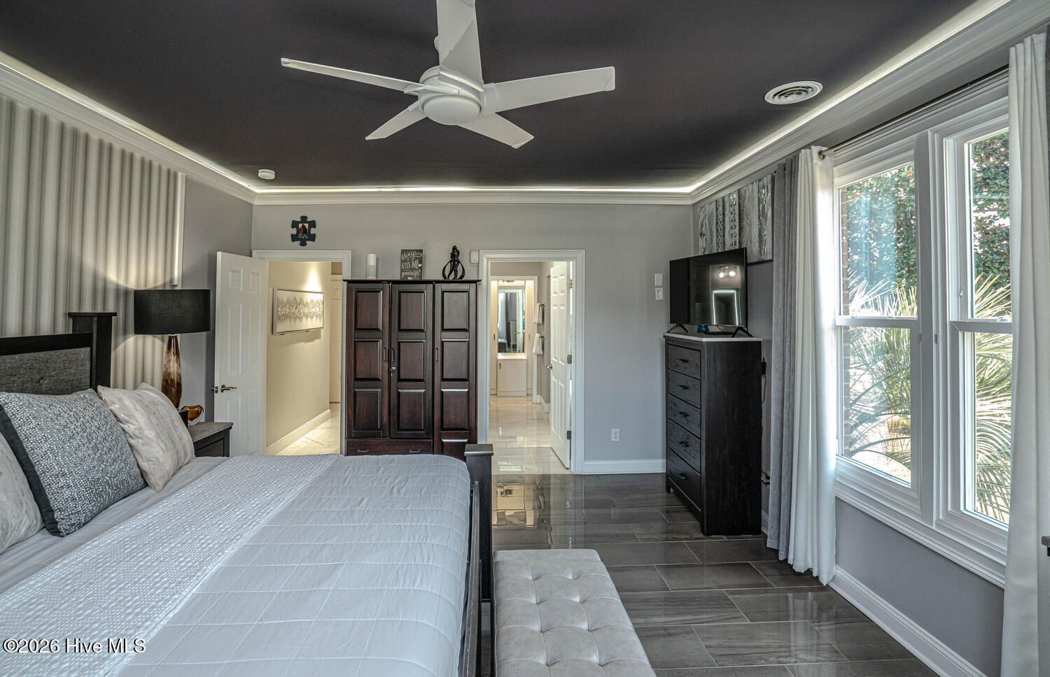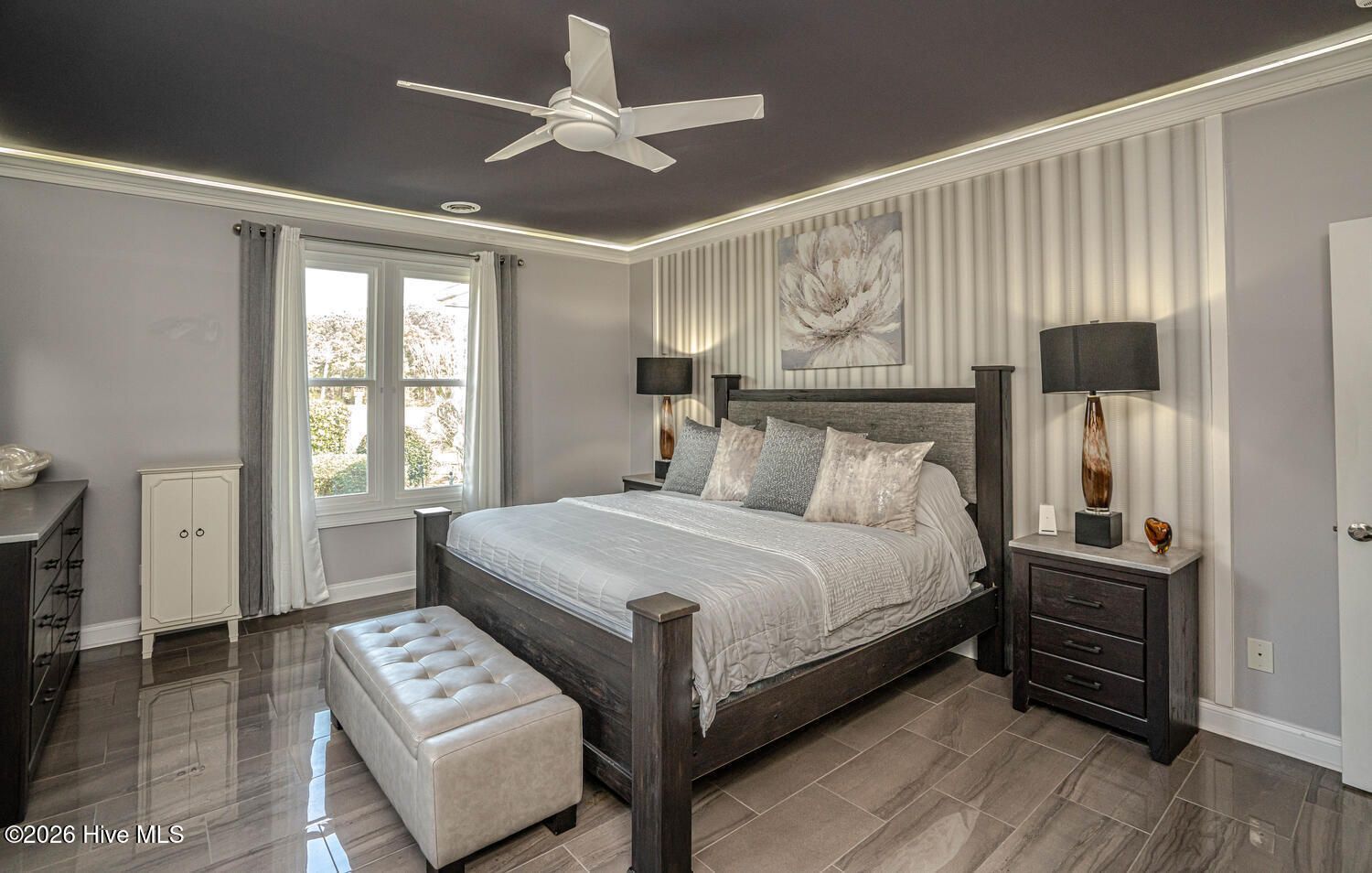 - Master Downstairs, Walk-in Closet(s), Tray Ceiling(s), Entrance Foyer, Mud Room, Solid Surface, Ceiling Fan(s), Pantry, Walk-in Shower
