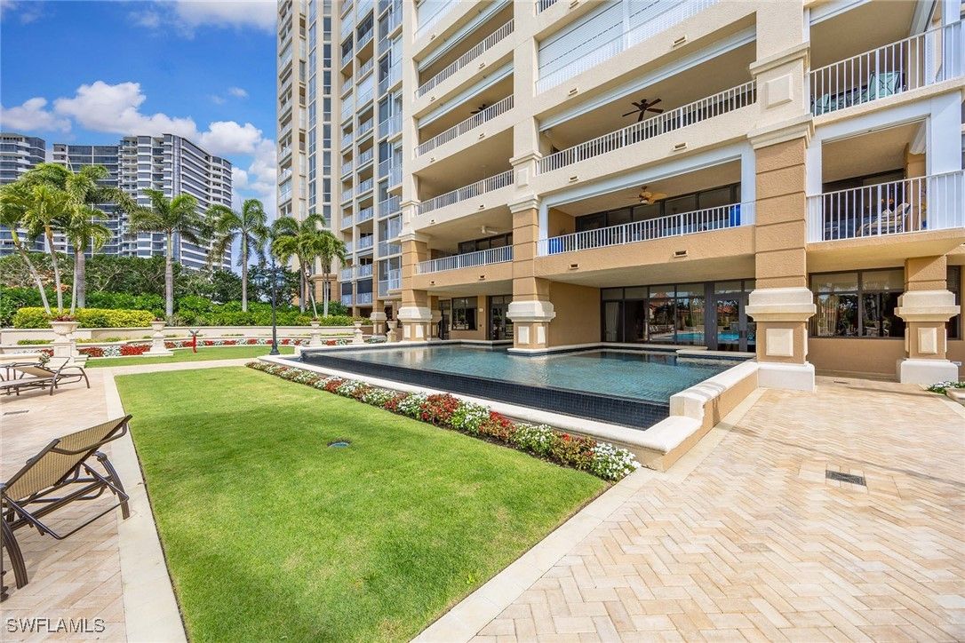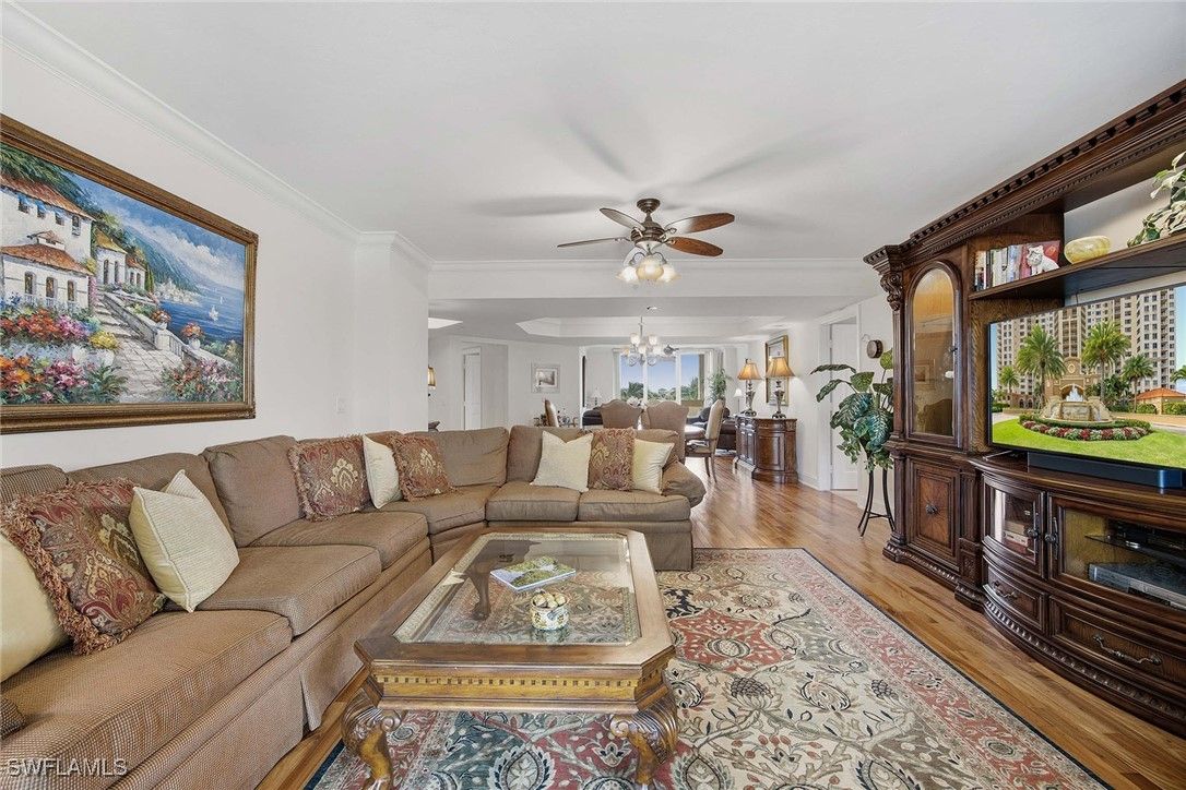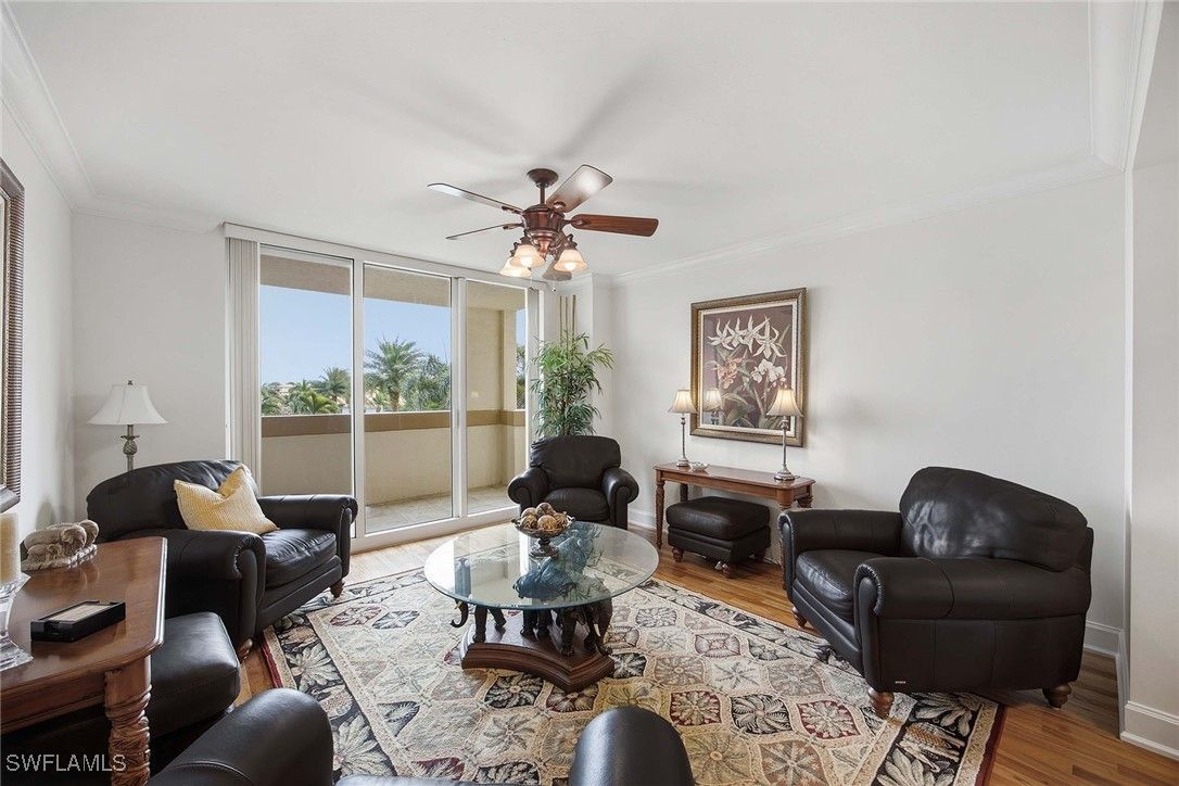 Luxurious living surrounded by beauty and elegance, this three-bedroom, three-bath, fourth-floor condominium features two main suites, a desirable split-bedroom plan, hardwood floors, an eat-in kitchen, and state-of-the-art storm shutters. Freshly painted and impeccably maintained, the residence captures breathtaking sunset views from the spacious lanai overlooking the pool and pristine landscaped grounds. Two assigned underground garage spaces and a private storage unit are included. Residents enjoy the exclusivity of a 24/7 guard-gated entrance and 24/7 front-desk personnel, along with multiple grand social gathering areas, an expansive, attended fitness center, and personal men’s and women’s spa therapy rooms. The community offers two beautifully appointed guest suites, a learning center, and a vibrant calendar of year-round social and recreational programming designed to enhance lifestyle and wellness. Just steps from the Pelican Bay beach tram station, owners benefit from attended beachfront services, two beachfront restaurants, and effortless access to miles of kayaking, biking, and walking paths. Additional amenities include 18 Har-Tru tennis courts, sailing, an attended fitness program, and a pickleball park currently in progress. Ideally located near upscale shopping, dining, and cultural venues, this exceptional residence delivers a refined coastal lifestyle defined by luxury, convenience, and world-class amenities.