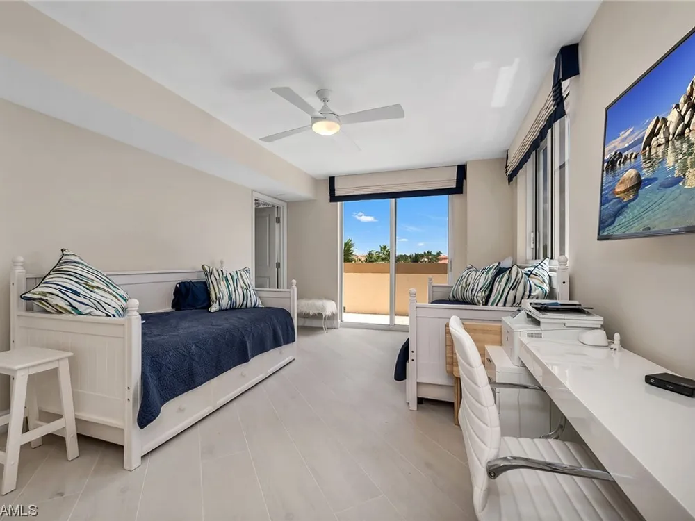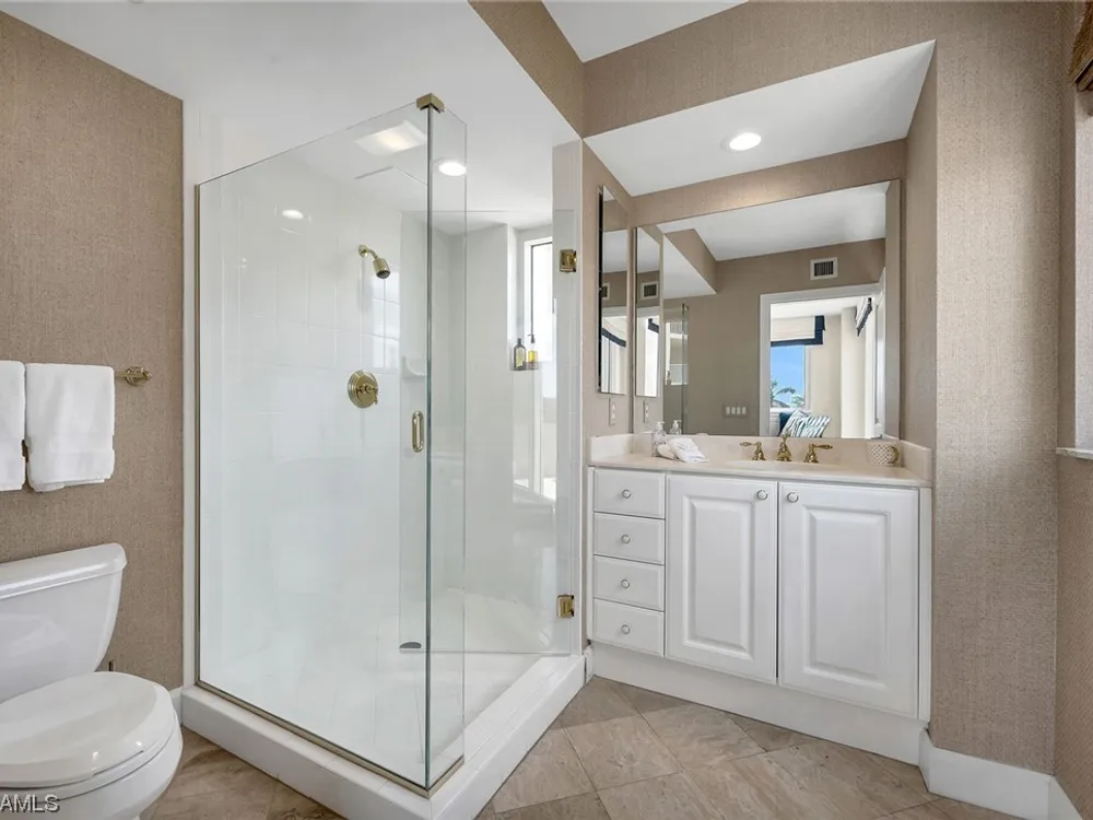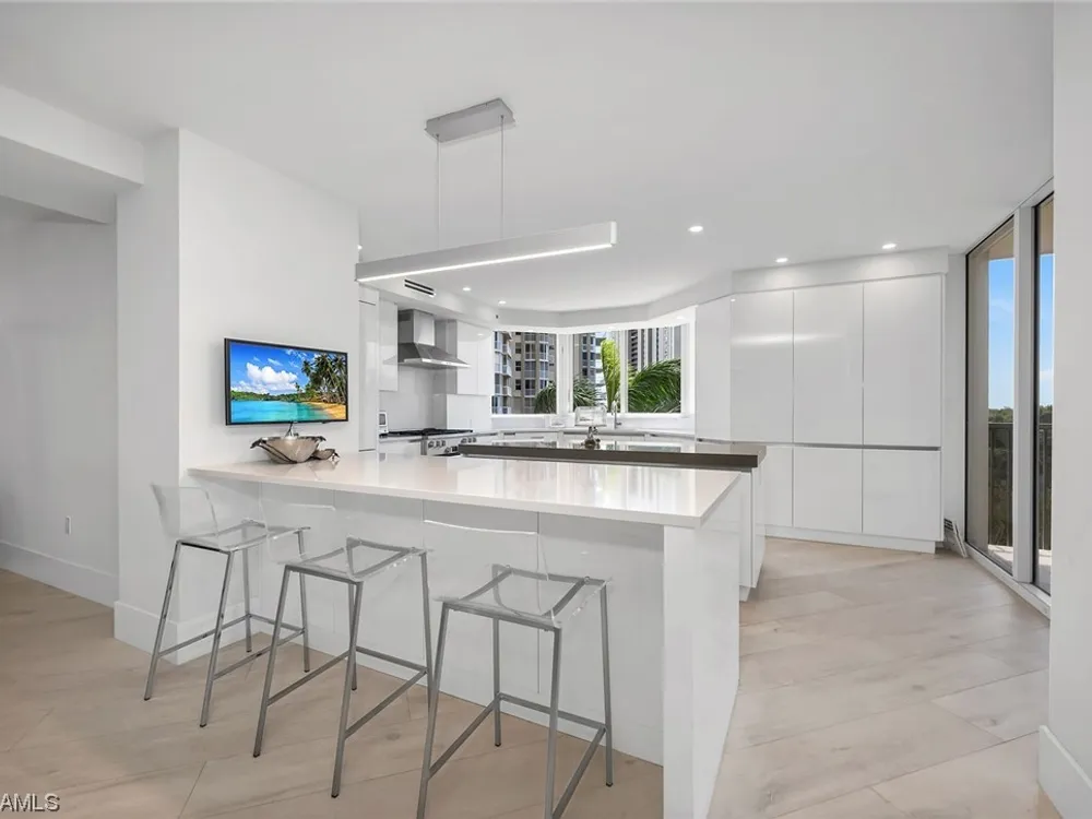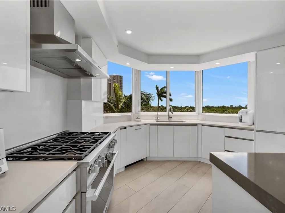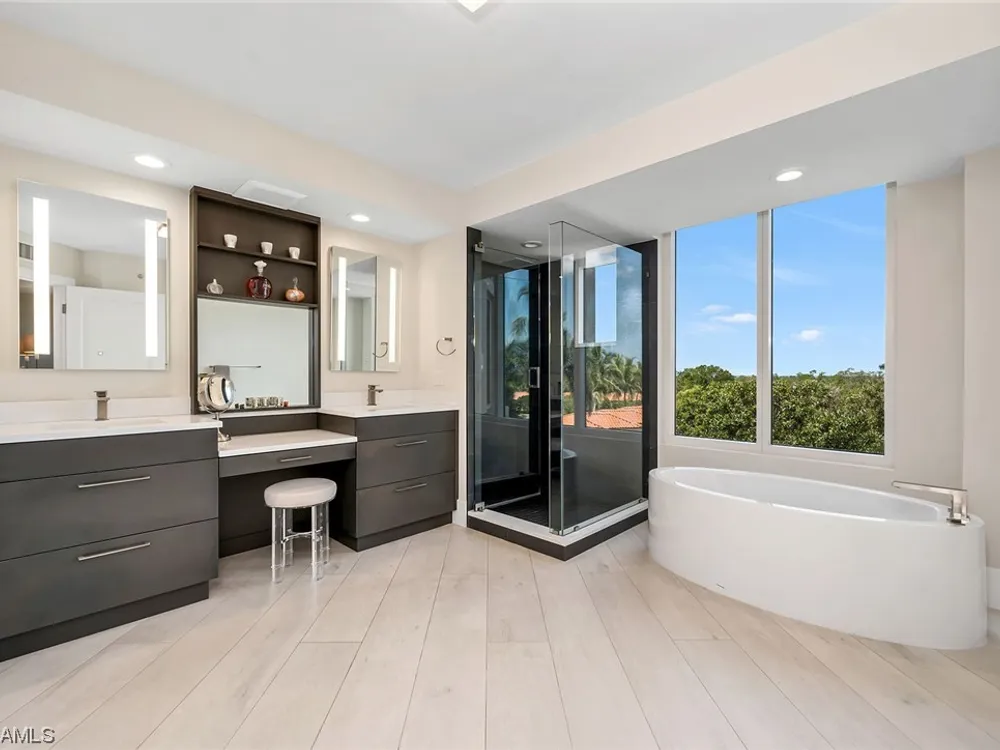 Beautiful, bright, and modern corner end unit in the fantastic Cap Ferrat; updated, offered furnished and ready for you for the season. The primary bedroom offers privacy and sunset views, separate walk-in closets, updated bath with separate shower and freestanding soaking tub. Screened and open lanais with western views and two balconies for the guest bedrooms with sunrise views. The kitchen features a 6-burner gas range, wine cooler, steam oven with generous pantry space. Two car spaces and a community with 24-hour security and staffed gate and front desk, concierge service, fitness center, resort-style pool, spa, health club, saunas, steam rooms, massage rooms and so much more. Pelican Bay amenities include two private beach pavilions with indoor and outdoor dining, beach lounge/umbrella service, tennis, community center with state-of-the-art fitness, spa and tennis courts.