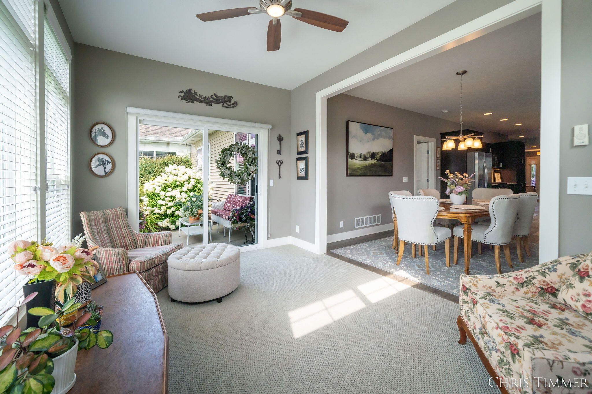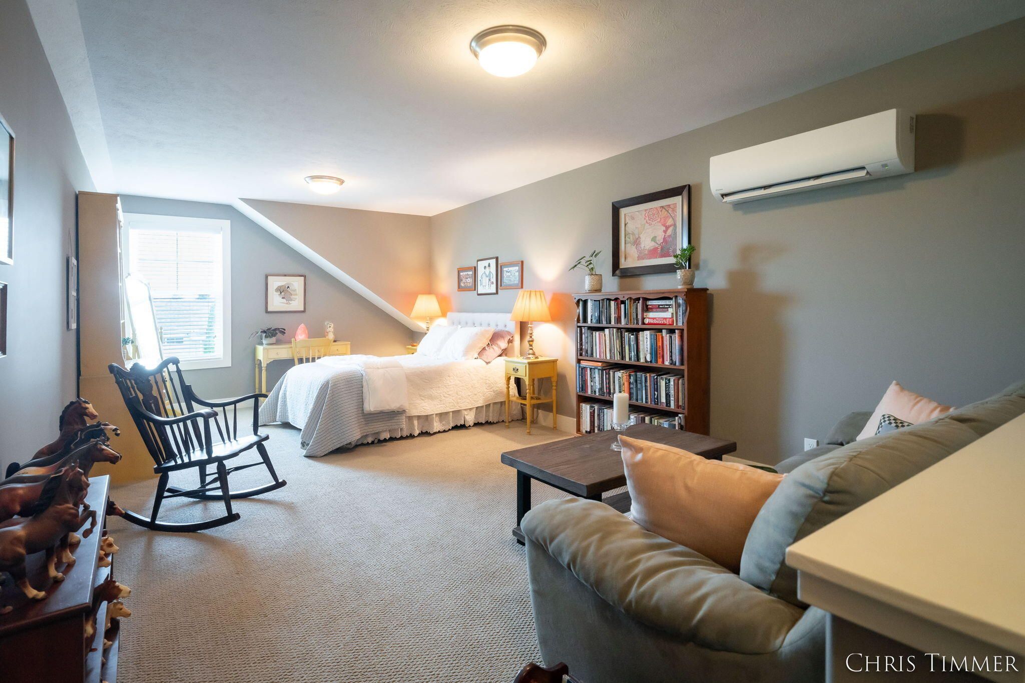 Discover effortless, high-end living in this meticulously maintained, zero-step former Parade of Homes condo. Convenience meets luxury with two bedrooms and two full bathrooms all on the main level. The residence boasts a functional yet stunning layout. The heart of the home is the lovely kitchen, shining with beautiful finishes and practical under-cabinet lighting. Relax by the gas fireplace or enjoy sunny afternoons in the charming sunroom. The primary suite is a true retreat, featuring a private bath with a very large, tiled walk-in shower. Practicality is covered by main floor laundry and a massive three-stall attached garage. Need extra space? The versatile bonus room above the garage (ideal for an office, gym, or extra bedroom) is perfectly climate-controlled by a one-year-old mini-split system. Beyond your private residence, enjoy the association's fantastic amenity: a nice inground pool. This home offers a lifestyle of quality, comfort, and convenience!