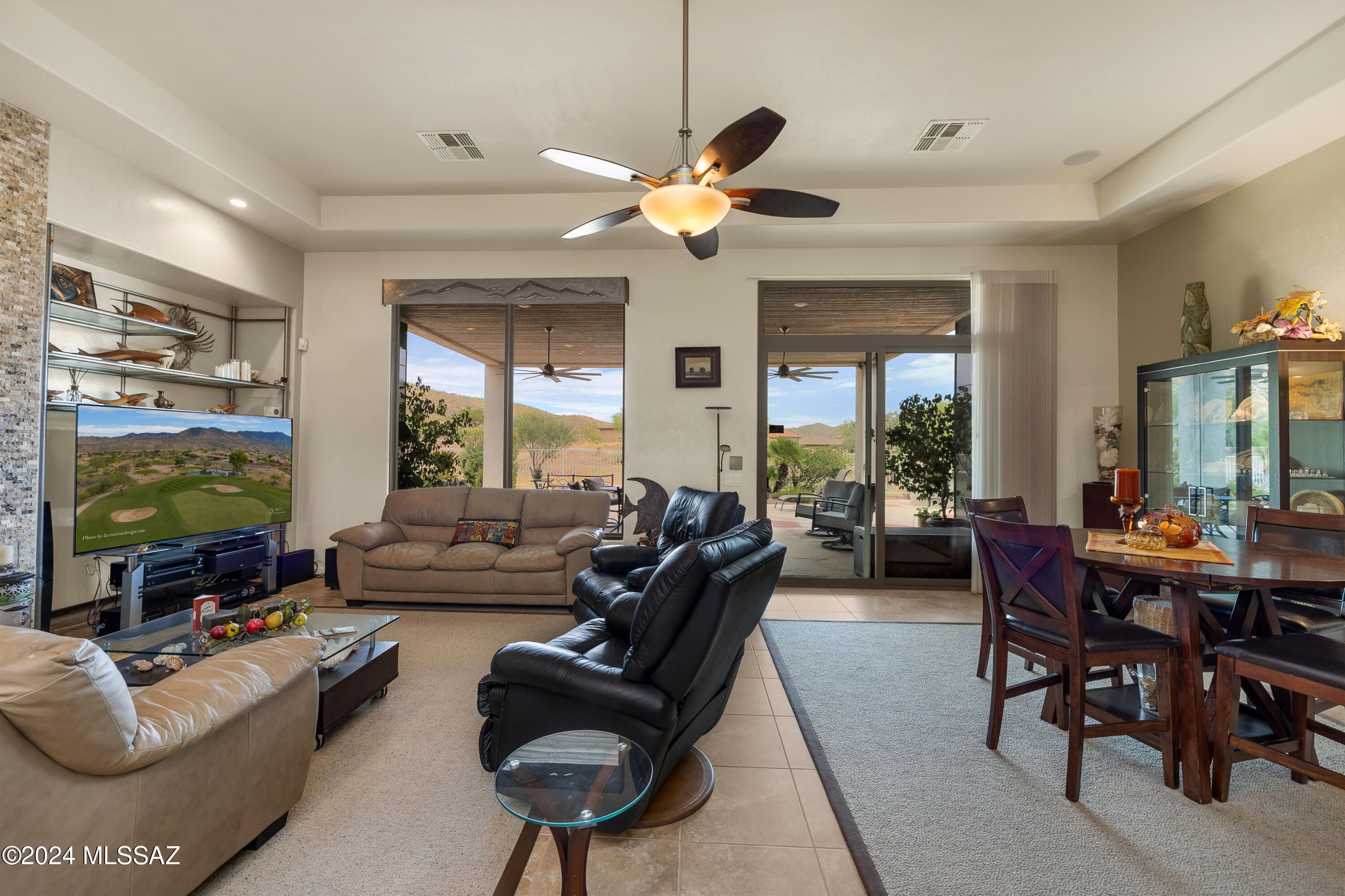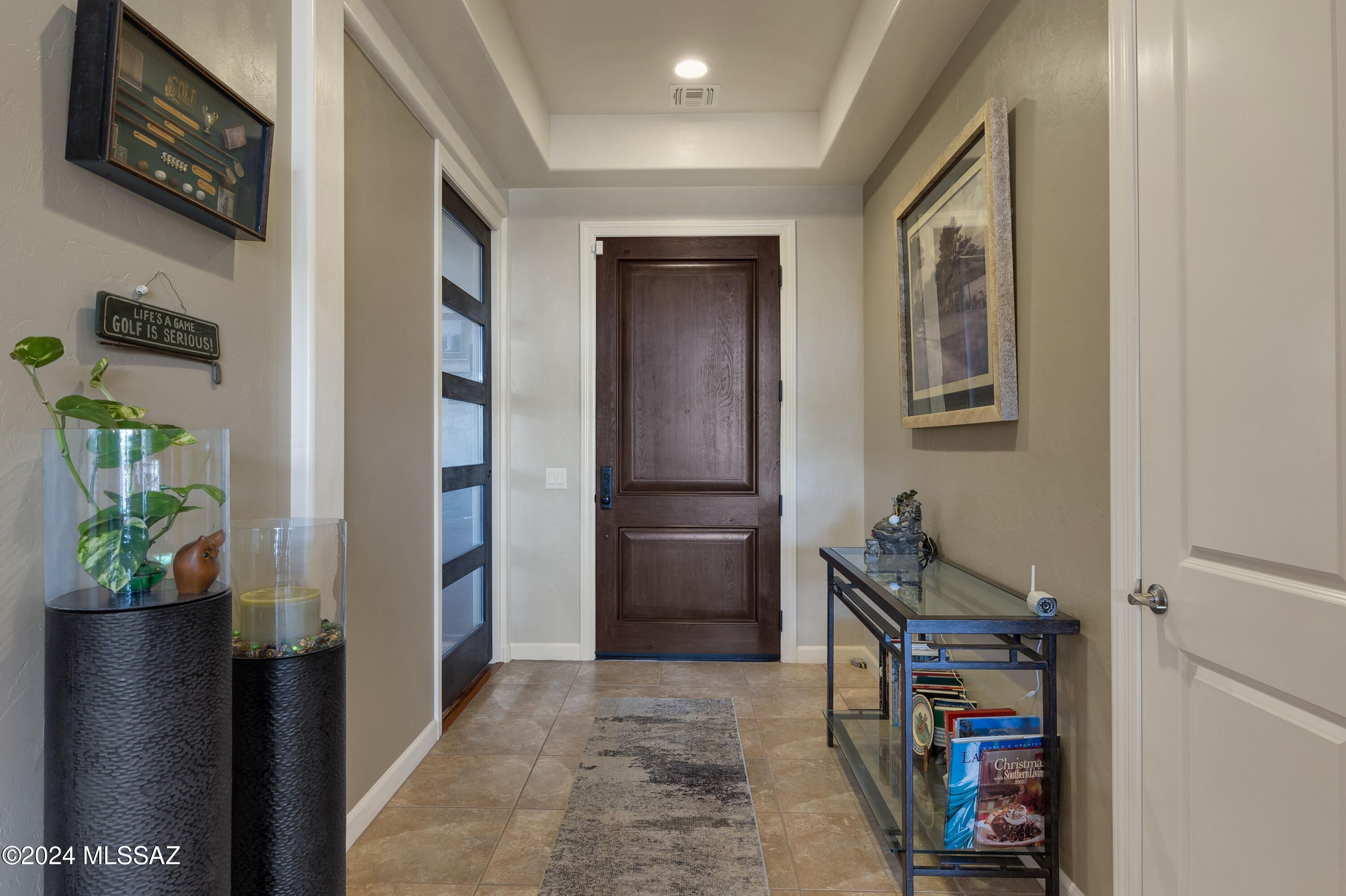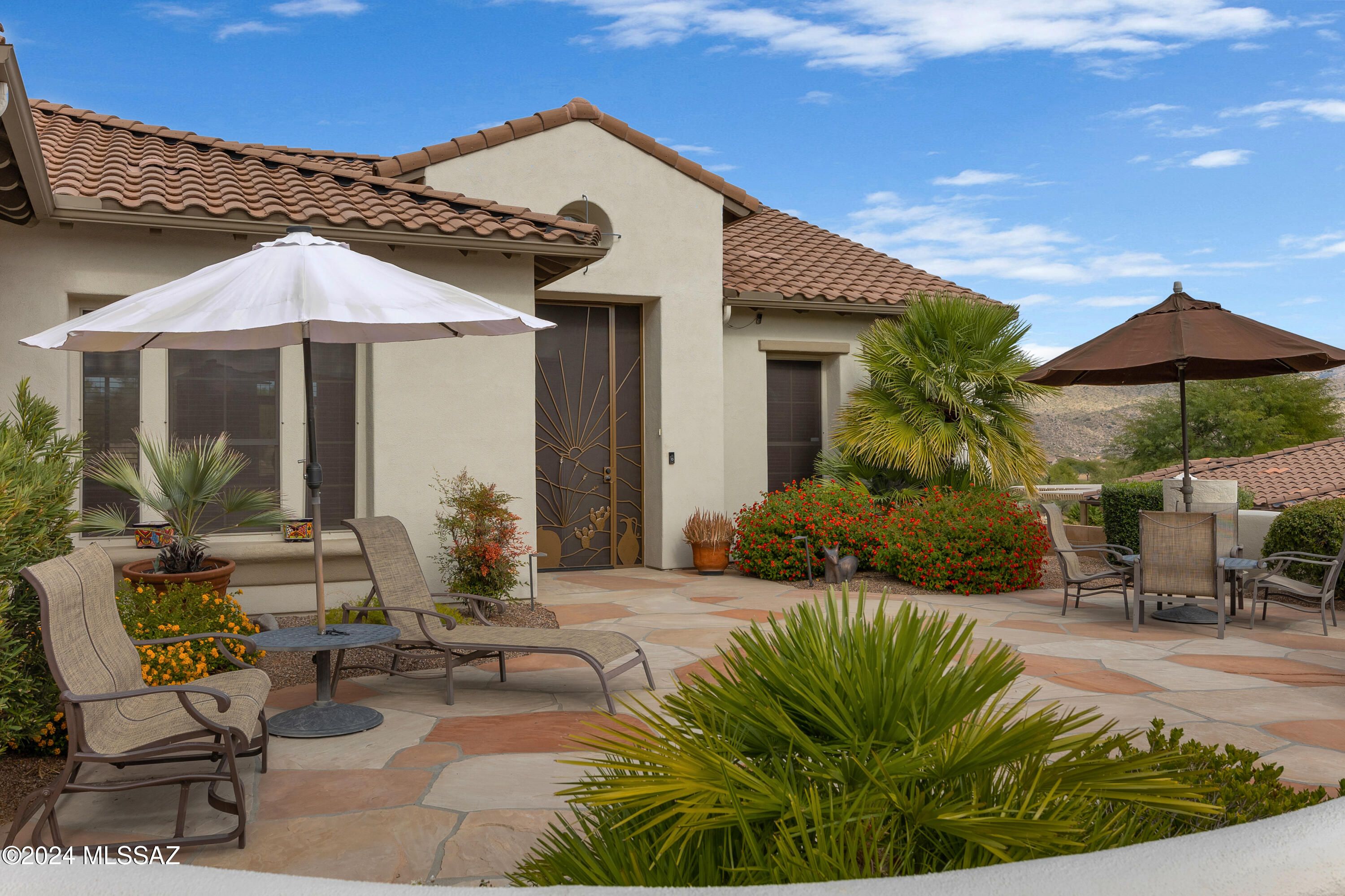 Highly upgraded SABINO model sits above the 11th hole and 12th tee box of The Preserve golf course with sweeping views of the Catalina Mountains from both the front courtyard and the expanded rear patio. Home features an owned 9.5kW solar system, Tesla Powerwalls, 2023 Trane 18 seer HVAC system, new water heater and R30 insulation. Kitchen has a custom cabinet, quartz countertop, built-in ice maker and wine cooler. Rear patio roof has been extended 8ft with tongue and groove ceiling. 2 Bromic gas heaters and flagstone patio. Large entertaining backyard has Pebbletec spool, rock waterfall, fire pit, BBQ island that seats six and endless mountain views. Also has a side load garage and windows have sun screens. Call today for your private showing.