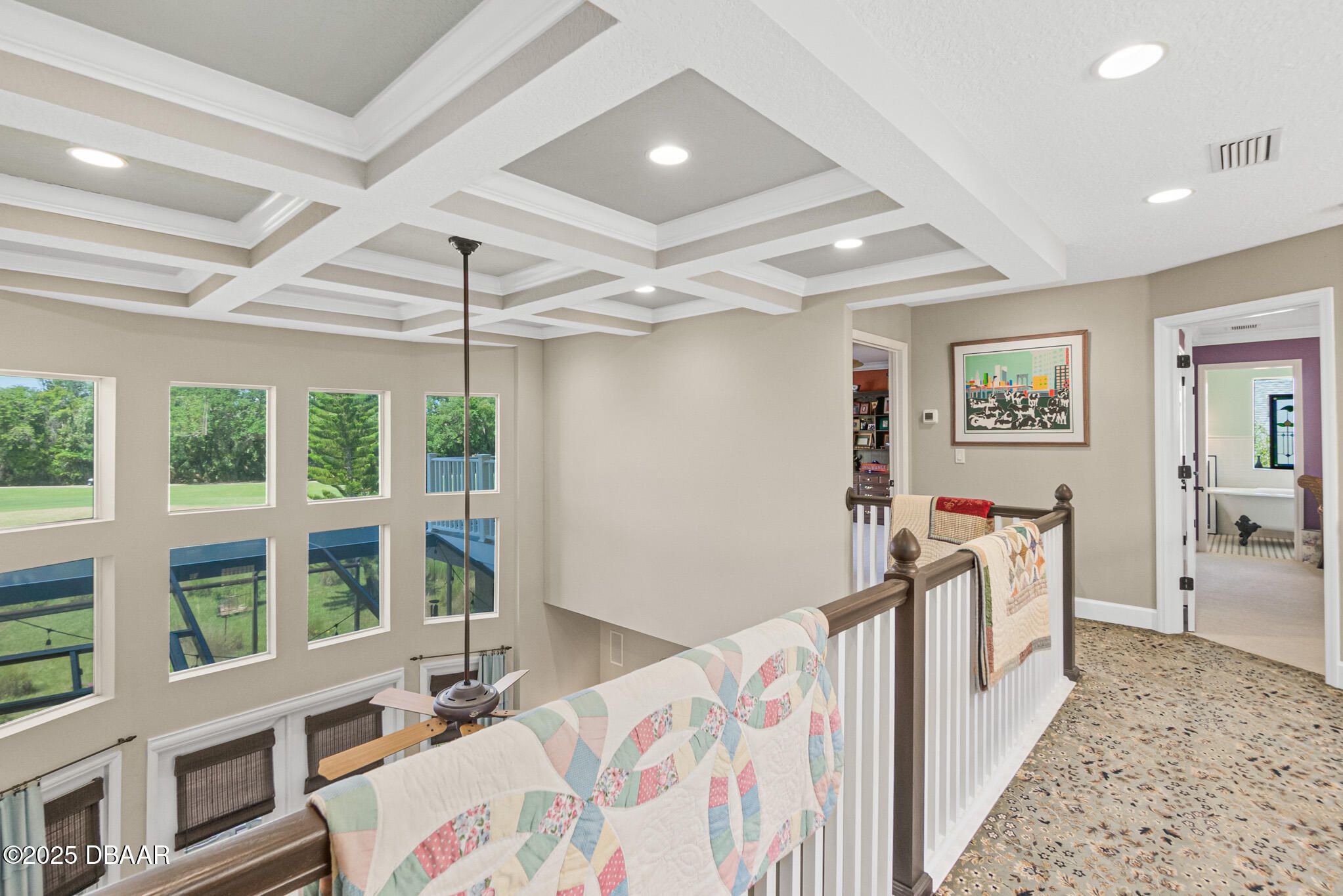 INCREDIBLE CUSTOM HOME in the beautiful Grand Haven community!! Nestled on a quiet street in a PREMIUM neighborhood, this home is ready for its new owner. Upon approaching the home, you are greeted with PAVERS driveway and walkway, custom SLATE front porch, and your ELEGANT front door entry with privacy glass and sidelights. When entering the home, you are greeted with Kahrs Swedish HARDWOOD flooring, tall ceilings, and TRANSOM window above front door. Entry Foyer opens in grand Living Room with TWO-STORY height ceilings, coffered ceiling with crown molding, Kahrs hardwood floors continued, and FRENCH DOORS to lanai. For added convenience, Living Room is also pre-plumbed for gas fireplace installation, if desired. Flows into Kitchen outfitted with large L-shaped countertop, hardwood floors continued, STAINLESS-STEEL appliances, high-end dovetail wood cabinets, GRANITE countertops, tile backsplash, and GAS cooktop. Paired alongside Kitchen is your Dining Area outfitted with hardwood floors, transom window for NATURAL LIGHT, and sliders to Lanai. Located at the front of your home is Office/Den which could effortlessly be utilized as a Formal Dining Room. This room features Kahrs Swedish hardwood floors, tray ceiling, and crown molding. Head into your Private Master Suite with tray ceilings, CROWN MOLDING, CUSTOM accent lighting in ceiling, hardwood floors continued, PLANTATION SHUTTERS, and convenient access to LANAI. Access your en-suite Master Bathroom outfitted with large GRANITE double vanity with makeup counter in middle, under-cabinet lighting, water closet, TRANSOM window, and HUGE walk-in shower with RAINFALL feature. En-suite Master Bathroom is accompanied with MASSIVE walk-in closet. Right outside of your Master Suite is the Powder Room featuring tile floors and crown molding. Traverse to the second-story of the home via your beautiful CUSTOM staircase for Guest Bedrooms 1 & 2. Head down the SOARING walkway to Guest Bedroom 1 which is massive in size and finished with carpeted floors, crown molding, and PLANTATION SHUTTERS. Upstairs Guest Bathroom is a Jack-and-Jill layout inspired by the New York subway with VINTAGE cast-iron clawfoot tub, ceramic vanity, subway tile wainscoting, and tile floors. Guest Bedroom 2 is located towards the rear of the second-story and features carpeted floors, crown molding and double-door entry to your BALCONY overlooking the 17th hole of the Grand Haven golf course. In addition to the upstairs Guest Bedrooms, you have a generously-sized bonus/flex room. After a long day, retreat out back to your massive SCREENED-IN pavers Lanai with built-in TILE countertop and sink. An absolutely perfect space for entertaining! Head past the Kitchen into your FULL-SIZE Laundry Room featuring SLATE floors, built-in cabinets, and sink. Also enjoy the CONVENIENCE of your FULL-SIZE pantry with CUSTOM built-ins. Home is complete with 2-car front entry garage w/ central vacuum and storage cubby under staircase. Additionally, this home features a 2021 ROOF and 2018 HVAC. Grand Haven in Palm Coast, Florida, is a prestigious gated community offering a blend of luxury and tranquility. Nestled along the Intracoastal Waterway, this beautiful neighborhood features scenic views, world-class amenities, and a variety of spacious homes. Residents can enjoy an 18-hole golf course, resort-style pool, fitness center, tennis courts, championship croquet courts, pickleball, and walking trails, along with easy access to the beach, shopping, and dining. With its peaceful setting and close-knit community, Grand Haven provides an ideal lifestyle for those seeking comfort and convenience in Palm Coast.