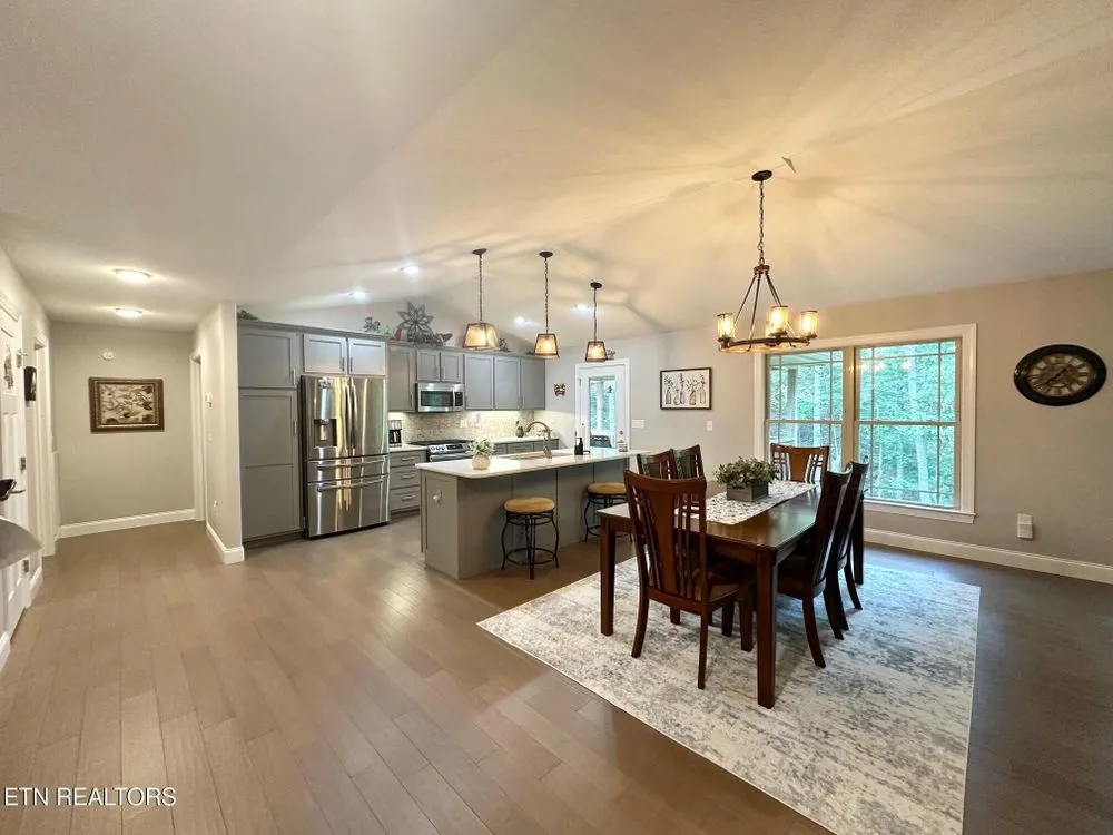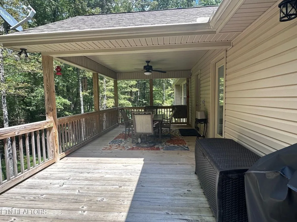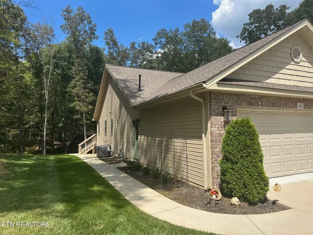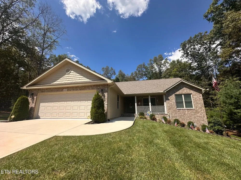 Built in 2021, this beautifully maintained 3BR/2BA home offers 1,924 sq. ft. of comfortable living space with an open floor plan designed for modern living. The living area features vaulted ceilings and a cozy fireplace, while the kitchen boasts custom cabinets, stainless steel appliances, a large island, and a stylish backsplash. The primary suite includes a double vanity and a tile walk-in shower. Outdoors, a covered deck overlooks peaceful nature views, and a concrete path extends from the front of the home to the back deck for added convenience. Additional highlights include a whole-house Generac generator for peace of mind, a workshop below with double doors and a 12x30 concrete pad, and an encapsulated crawl space.