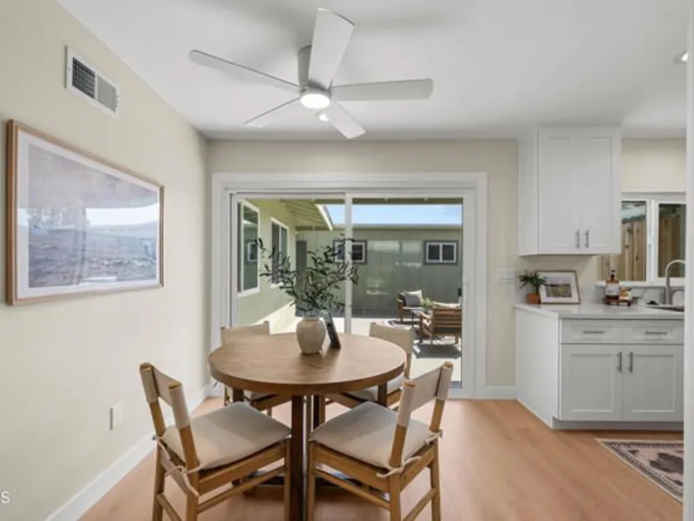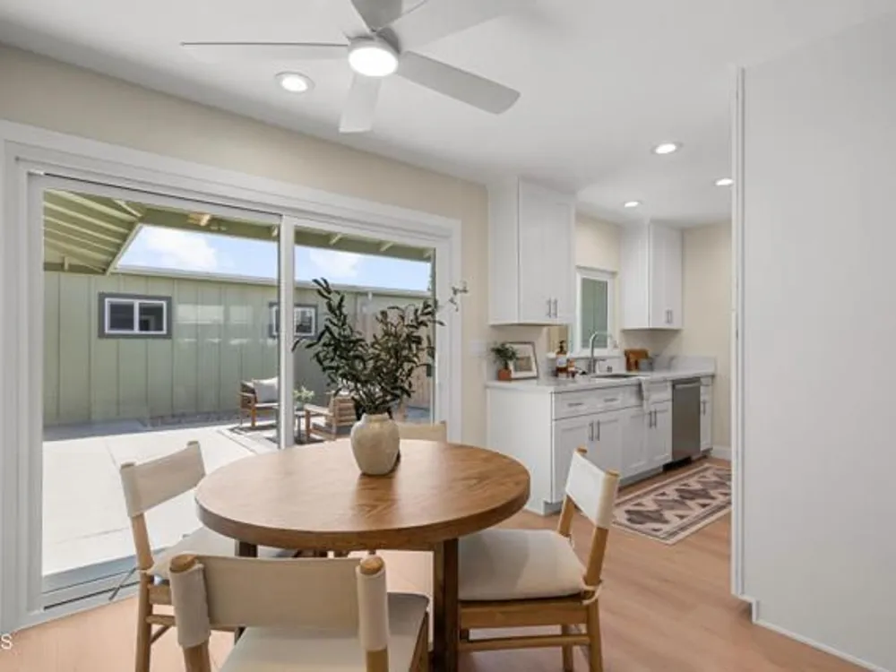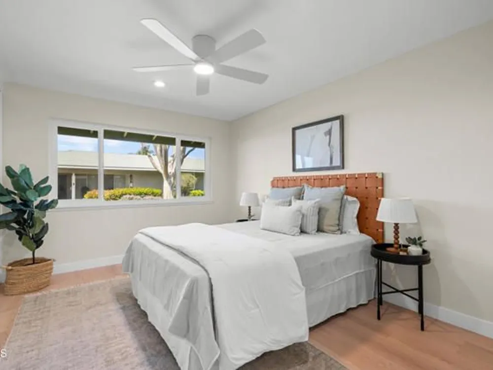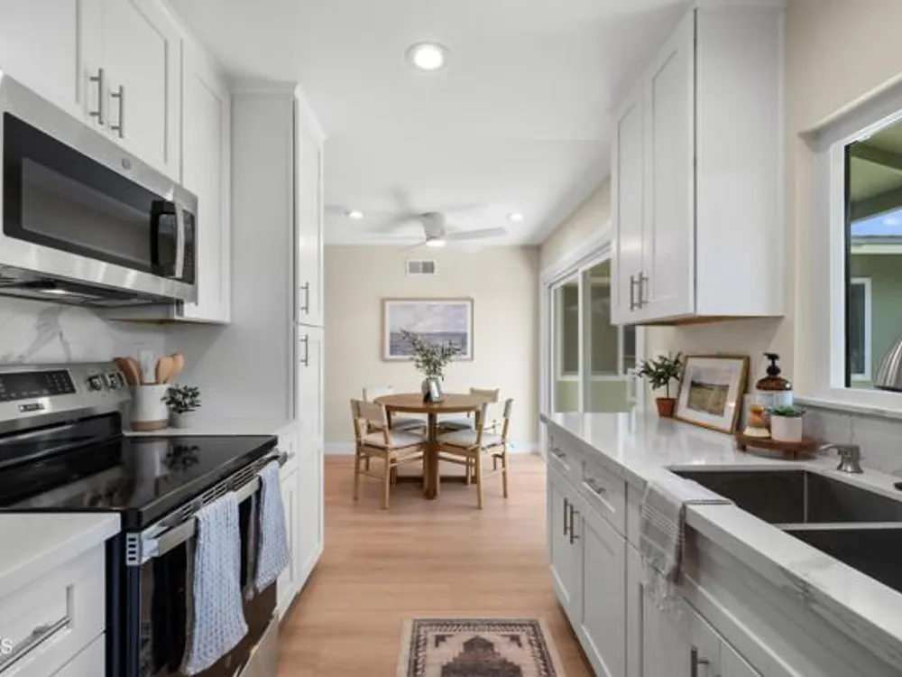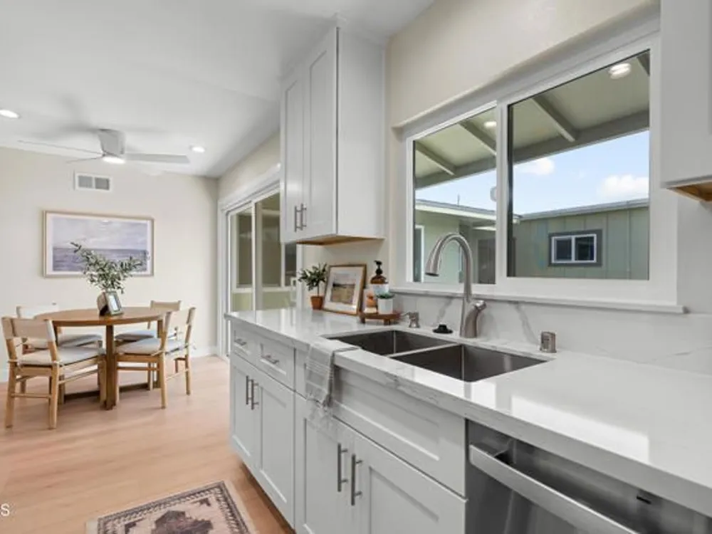 Experience refined coastal living in this beautifully renovated 3-bedroom, 2-bathroom Dolphin model in the sought-after Hueneme Bay senior community. Thoughtfully upgraded with modern finishes and high-end details, this home blends luxury and comfort, offering effortless style just moments from the beach. Every detail has been thoughtfully upgraded--brand-new luxury vinyl plank flooring and baseboards, fresh interior paint, recessed lighting, and stylish ceiling fans create a bright, airy ambiance. The original block wall in the living room has been expertly skim-coated, enhancing its modern appeal. New vinyl dual-pane windows throughout the entire home offer energy efficiency and enhance the natural light. The redesigned kitchen is a chef's delight, featuring sleek countertops, soft-close cabinetry, brand new stainless steel dishwasher, an electric cooktop and range with microwave hood, a refrigerator and freezer with a water dispenser and ice maker, and a designer backsplash. Both bathrooms have been transformed with spa-like finishes, including custom vanities, elegant tile work, and modern fixtures. The primary bathroom shower was expanded from its original size, giving more space and functionality. Each well-proportioned bedroom features full-length mirrored closet doors. Additional upgrades include a full plumbing repipe and sewer line replacement for long-term peace of mind, as well as brand new ducting and heat pump for year-round comfort. Step outside to your private, low-maintenance patio--an ideal space to sip your morning coffee or unwind at sunset. Don't miss the hobby room right off the garage with washer and dryer hookups, a utility sink, and the perfect space for storage. This serene retreat is part of a beautifully maintained community offering resort-style amenities, including a sparkling pool, clubhouse, and private 9-hole golf course. With pristine beaches, scenic walking paths, shopping, and dining just minutes away, you'll enjoy the perfect blend of relaxation and convenience. Don't miss this move-in-ready coastal gem--schedule your private tour today!