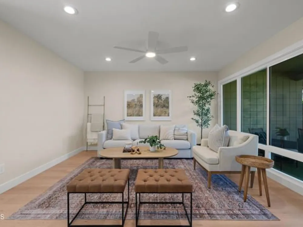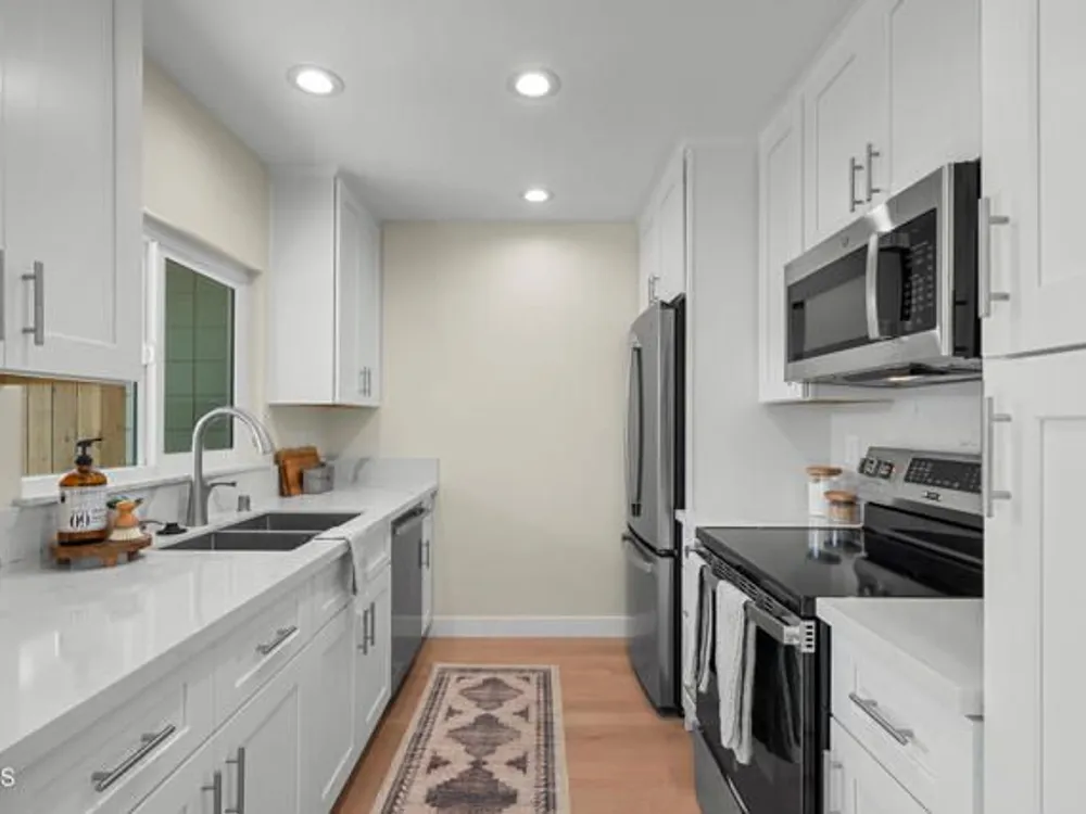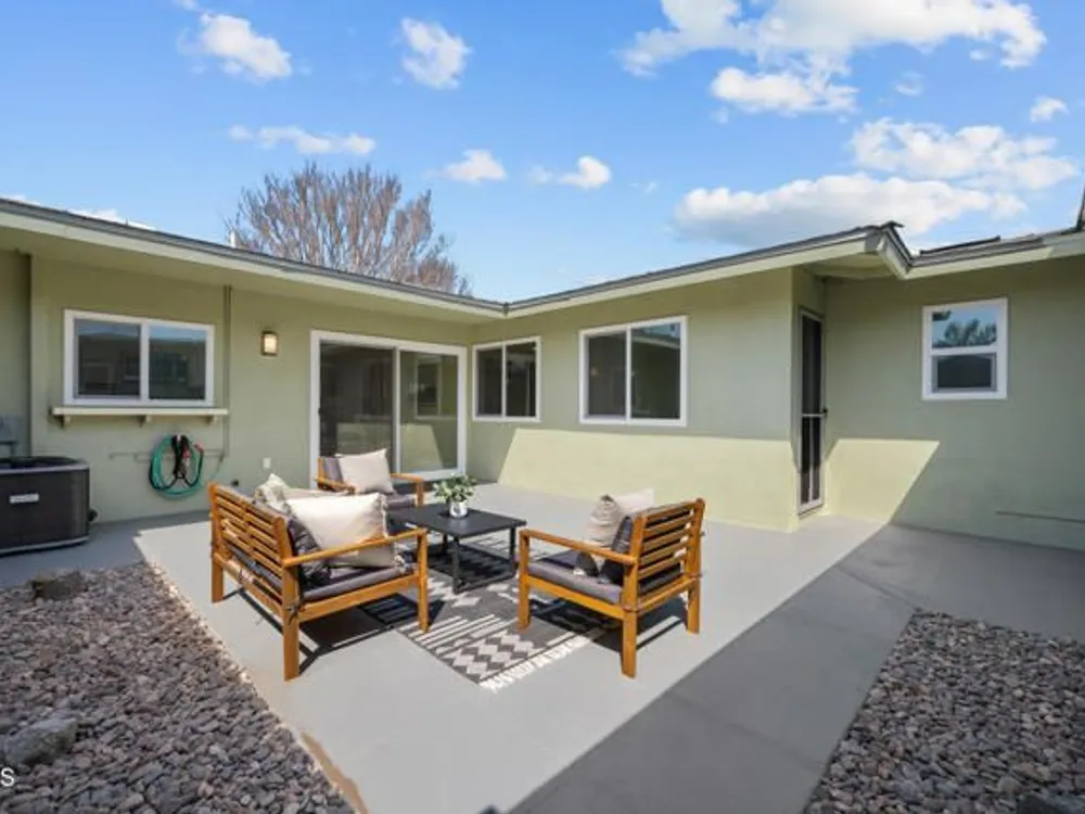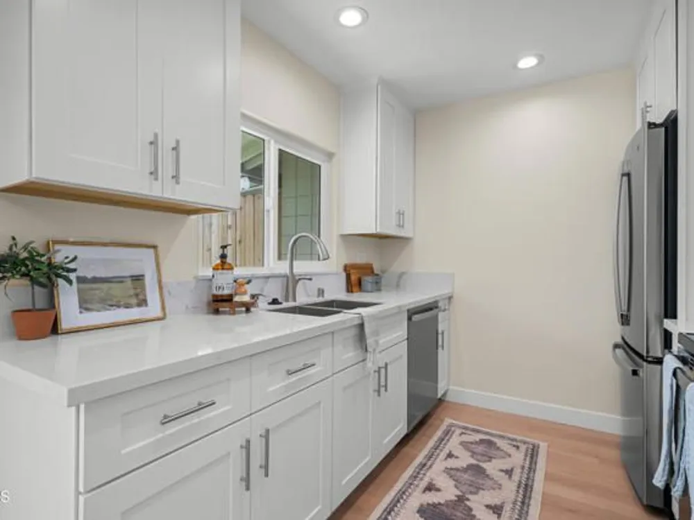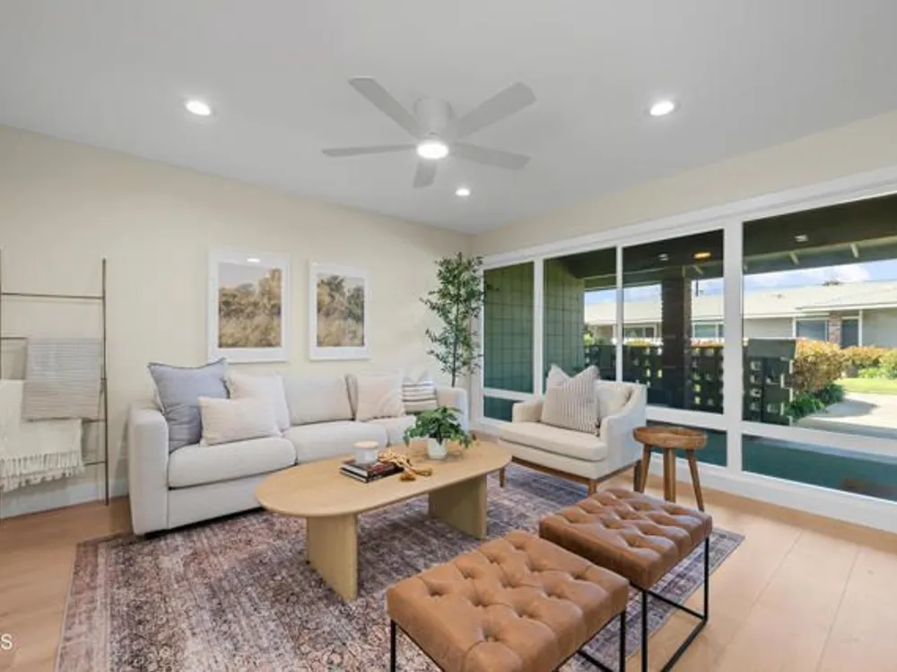 Experience refined coastal living in this beautifully renovated 3-bedroom, 2-bathroom Dolphin model in the sought-after Hueneme Bay senior community. Thoughtfully upgraded with modern finishes and high-end details, this home blends luxury and comfort, offering effortless style just moments from the beach. Every detail has been thoughtfully upgraded--brand-new luxury vinyl plank flooring and baseboards, fresh interior paint, recessed lighting, and stylish ceiling fans create a bright, airy ambiance. The original block wall in the living room has been expertly skim-coated, enhancing its modern appeal. New vinyl dual-pane windows throughout the entire home offer energy efficiency and enhance the natural light. The redesigned kitchen is a chef's delight, featuring sleek countertops, soft-close cabinetry, brand new stainless steel dishwasher, an electric cooktop and range with microwave hood, a refrigerator and freezer with a water dispenser and ice maker, and a designer backsplash. Both bathrooms have been transformed with spa-like finishes, including custom vanities, elegant tile work, and modern fixtures. The primary bathroom shower was expanded from its original size, giving more space and functionality. Each well-proportioned bedroom features full-length mirrored closet doors. Additional upgrades include a full plumbing repipe and sewer line replacement for long-term peace of mind, as well as brand new ducting and heat pump for year-round comfort. Step outside to your private, low-maintenance patio--an ideal space to sip your morning coffee or unwind at sunset. Don't miss the hobby room right off the garage with washer and dryer hookups, a utility sink, and the perfect space for storage. This serene retreat is part of a beautifully maintained community offering resort-style amenities, including a sparkling pool, clubhouse, and private 9-hole golf course. With pristine beaches, scenic walking paths, shopping, and dining just minutes away, you'll enjoy the perfect blend of relaxation and convenience. Don't miss this move-in-ready coastal gem--schedule your private tour today!