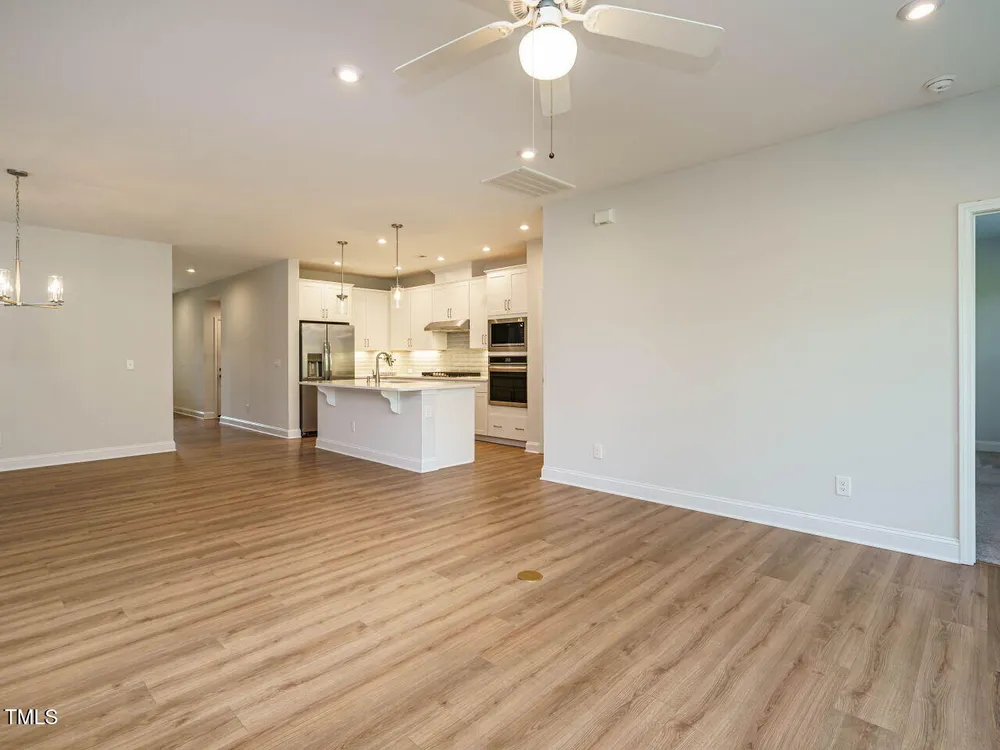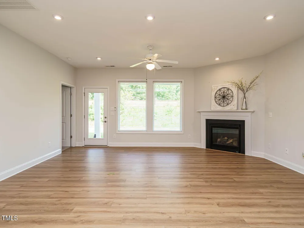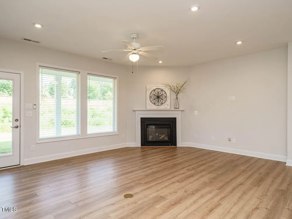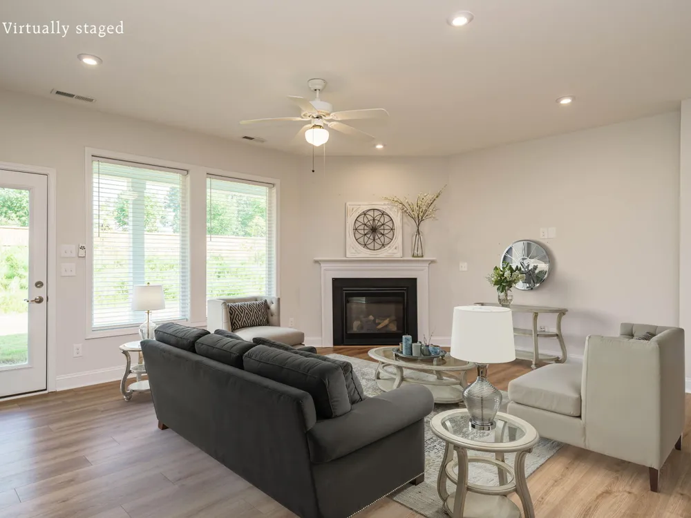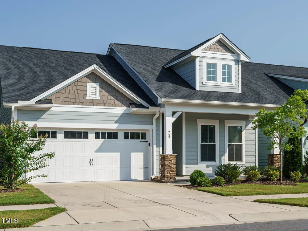 Welcome home to effortless 55+ living in the desirable Encore at Wendell Falls community. This newer (2022) ranch is designed for the ultimate downsized, low-maintenance lifestyle, placing you at the heart of premium amenities. This single-story home shines with an open-concept floor plan, ideal for entertaining and easy living. Enjoy a chef-inspired kitchen featuring quartz countertops, a gas cooktop, and a large center island, flowing seamlessly into a spacious living room with a cozy gas fireplace. A versatile private study with French doors offers the perfect space for a home office, den, or hobby room. The thoughtful split-bedroom layout ensures maximum privacy. The spacious Primary Suite is a true retreat, boasting an oversized tiled walk-in shower with a built-in bench and a clever walk-through closet connected directly to the laundry room. A private second bedroom and full guest bath sit on the opposite side of the home. Enjoy the outdoors on your covered rear patio with a ceiling fan. Storage is a breeze with a two-car garage and a large floored walk-up attic. Best of all? Lawn care is included! As an Encore resident, you get exclusive access to a private clubhouse, pool, firepit, and social events, in addition to all the amenities, trails, and shops of the greater Wendell Falls master-planned community. This is your chance to embrace life without the maintenance!