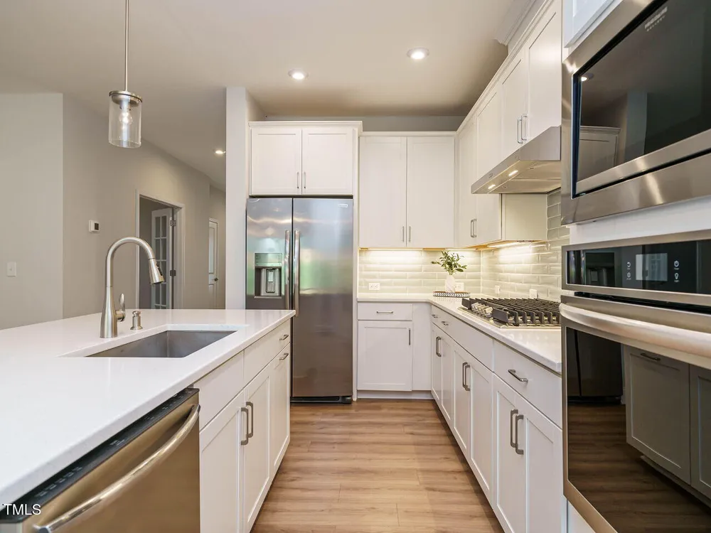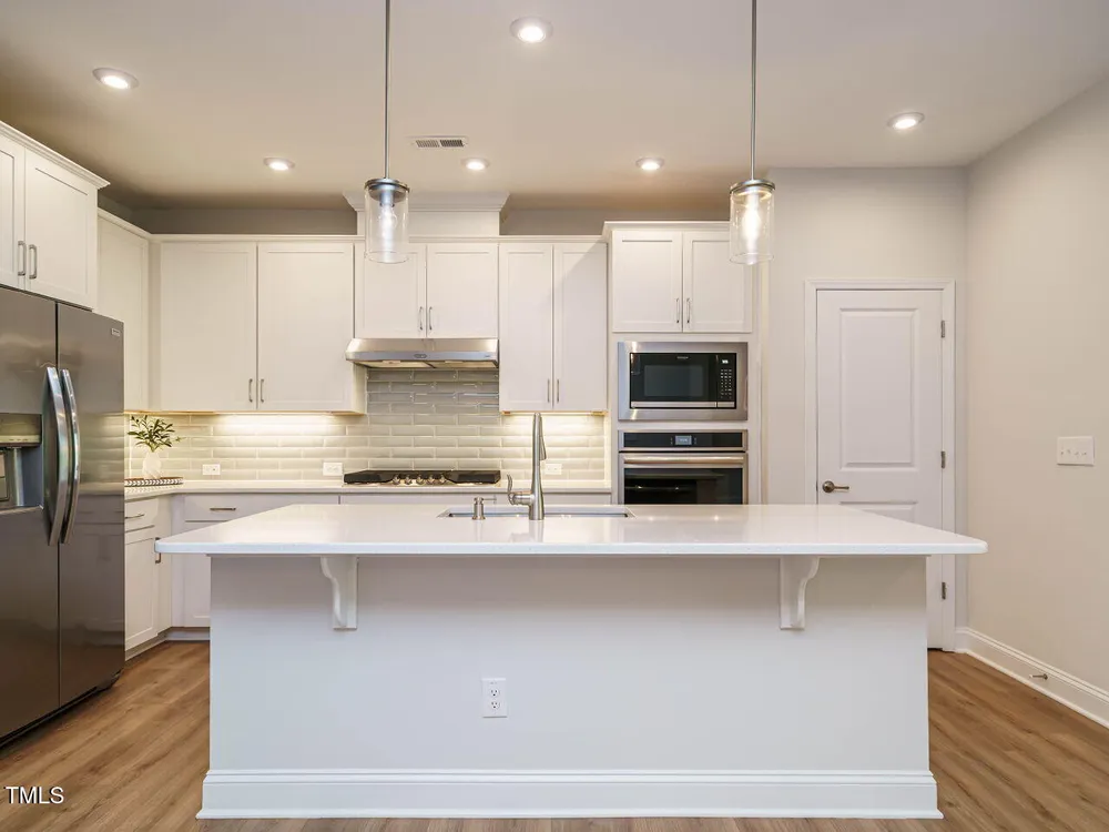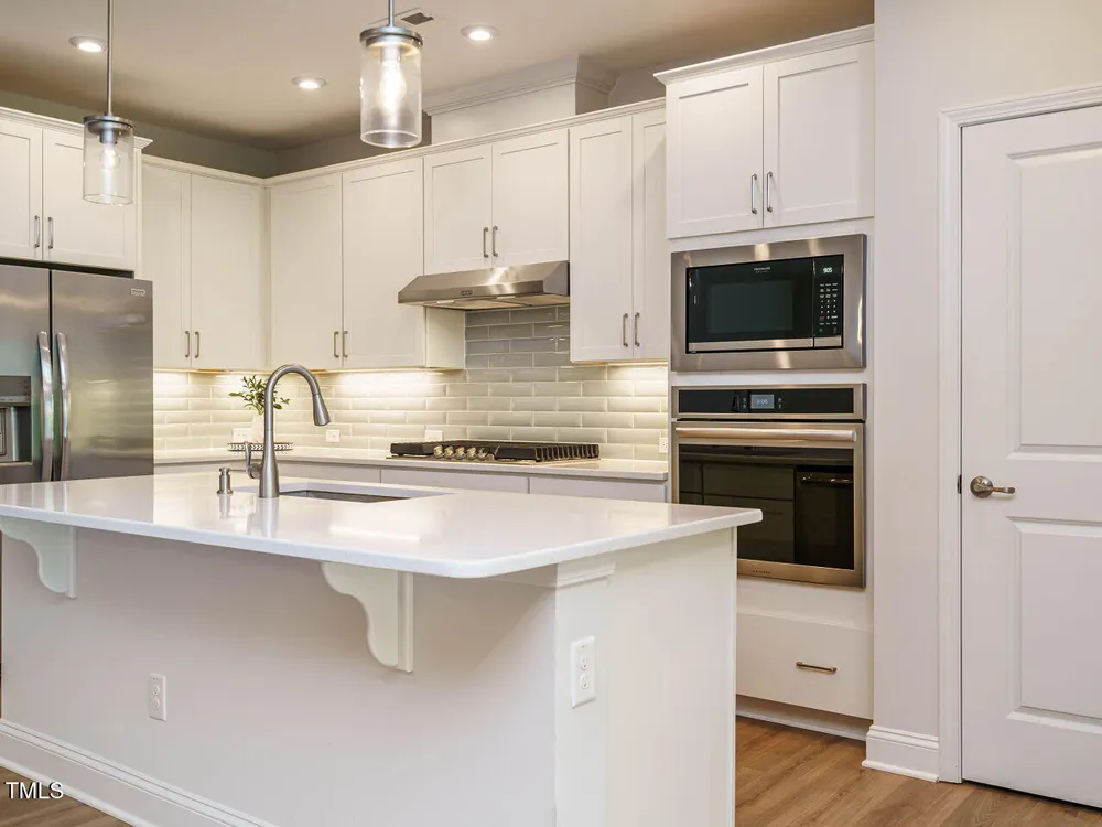 - Cooktop, Dishwasher, Disposal, Free-Standing Refrigerator, Gas Cooktop, Microwave, Oven, Range Hood, Stainless Steel Appliance(s), Vented Exhaust Fan