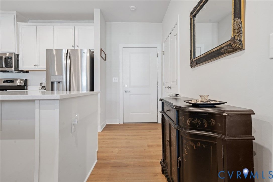Welcome home to this better-than-new, top-level condo in the highly sought-after 55+ community of Greenwich Walk at Fox Creek in Moseley! Thoughtfully designed for modern comfort and effortless living, this 2-bedroom, 2-bath home offers a bright open floor plan, perfect for entertaining or simply relaxing. The gourmet kitchen shines with sleek quartz countertops, stainless steel appliances, and contemporary cabinetry, all seamlessly flowing into the spacious living and dining areas. Luxury vinyl plank flooring runs throughout the main living spaces and bathrooms for both style and durability, while the bedrooms provide cozy comfort with plush carpeting. Step outside to your SCREENED-IN balcony and enjoy peaceful views year-round. This secure, elevator-access building adds convenience to your daily routine, while the community itself is brimming with opportunities to connect and unwind. Greenwich Walk offers its own private clubhouse, pool, fitness center, pickleball courts, and a beautiful pond to enjoy. Residents also benefit from a full calendar of social clubs, events, and community happy hours, making it easy to stay active and engaged. Ideally located just steps from Publix and Cosby Village, you’ll have dining, shopping, and activities right at your fingertips. Experience the perfect balance of luxury, convenience, and community—schedule your tour today and see why Greenwich Walk is Chesterfield’s premier active adult neighborhood!