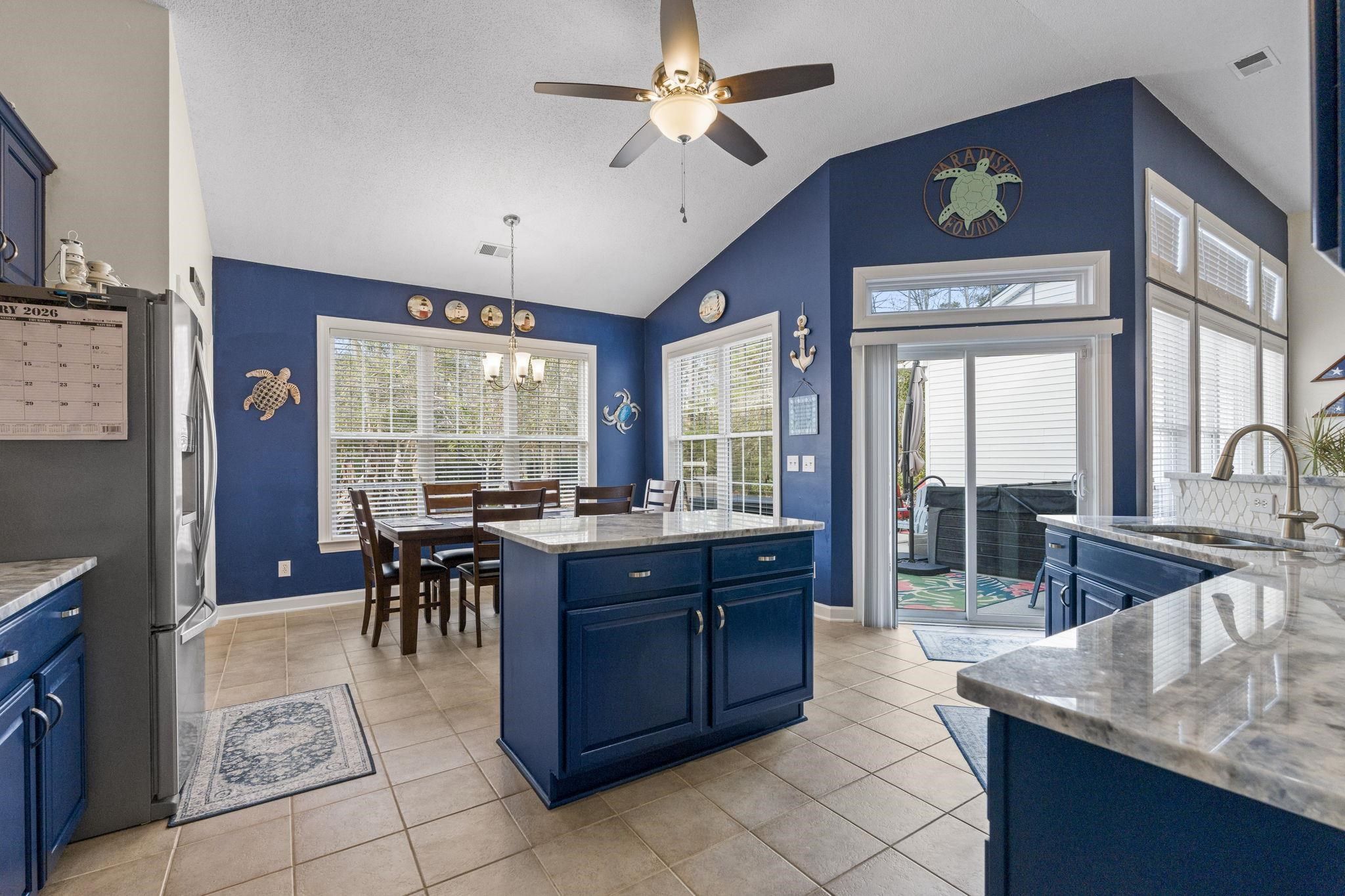 - Fireplace, Hot Tub/Spa, Split Bedrooms, Breakfast Bar, Bedroom on Main Level, Breakfast Area, Entrance Foyer, Kitchen Island, Stainless Steel Appliances, Solid Surface Counters