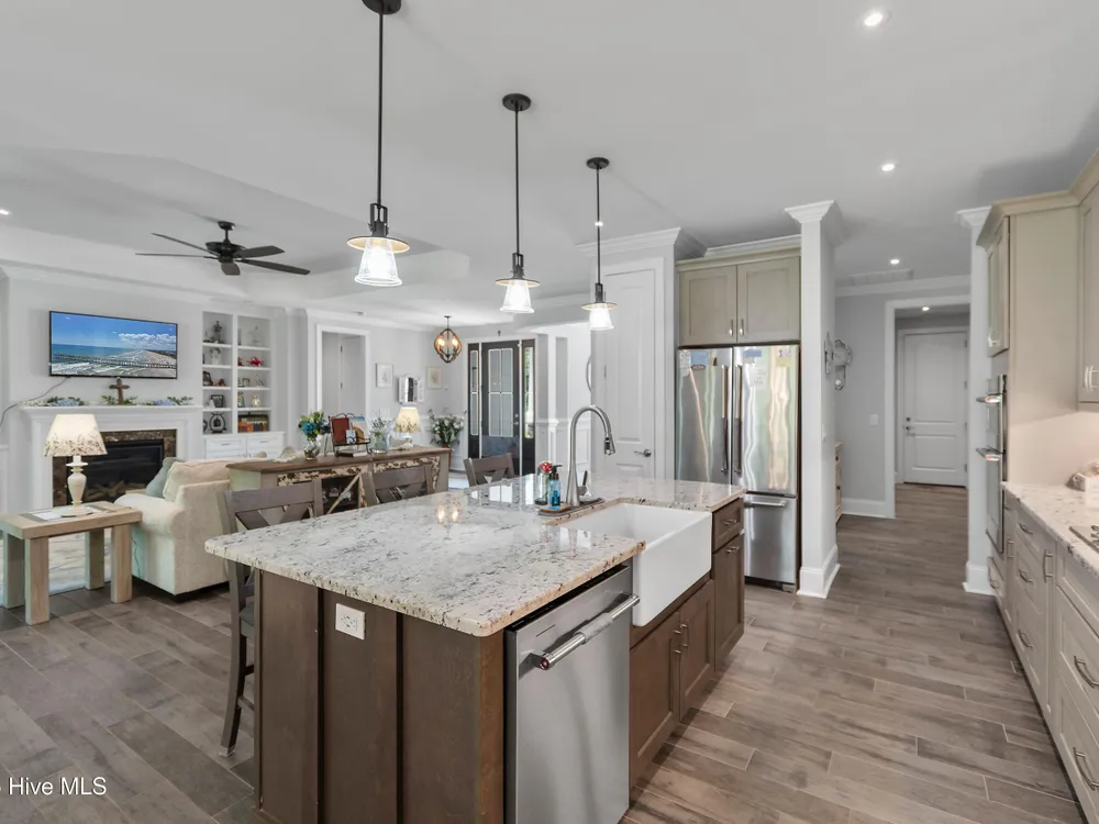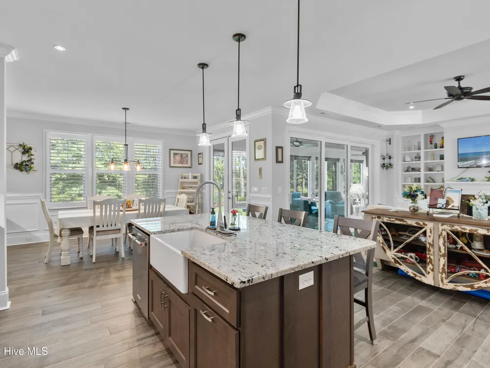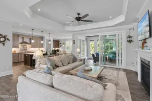 Gorgeous Custom 4Bed/4Bath Home On .45 Acres w/3 Car Garage, Office/Bonus Room, Large Sunroom, Fenced Yard, & Open Floor Plan In Amenity Rich Gated Golf Community w/ Private Beach Club On Sunset Beach & Seconds Away From New Amenity Center. This is luxury coastal living at its finest with all the bells and whistles! Located in the highly sought after Ocean Ridge Plantation and custom crafted by Coleman Fine Homes, this home is tucked in a prime location behind a beautiful protected green space and is seconds away from the communities newest amenity center w/ pool & pickle ball courts. As you walk in the front door, the natural light carries your eye through the open floor plan & highlights the living room, dining room, sunroom, & spacious gourmet kitchen w/informal dinning area. The kitchen boasts a gas stovetop w/pot filler & exhaust hood, under cabinet lighting, island with sink & hidden storage cabinets, bar seating, separate wet bar w/sink & wine cooler, & informal dinning area w/wainscot that opens to the sunroom & overlooks the private back yard. The living room includes a recessed ceiling, gas fireplace w/ built-in shelves & cabinetry, & large triple slider that opens to the sunroom, complete with tung & groove ceiling, dual ceiling fans, professional shades, stamped concrete flooring, & calming views of the back patio and gas fire pit. The elegant dining room has recessed ceiling, wainscoting, & chandelier. The master bedroom is located to the right of the living space and hosts a private entrance to the sunroom, recessed ceiling, dual walk-in closets, zero entry shower, deep free standing tub, dual vanities & water closet. There are 2 bedrooms on the left side of the 1st floor that share a bathroom, a private office/bonus room w/recessed ceiling & bathroom behind the wet bar area, & a large bedroom w/skylights & private bath upstairs. The 3 car garage includes a dog wash zone, ceiling fan, back door to side yard, & entry into a convenient drop zone area.