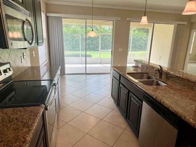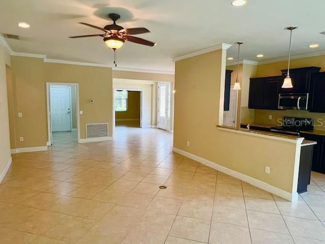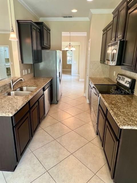 - Crown Molding, Kitchen/Family Room Combo, Stone Counters, Walk-In Closet(s)