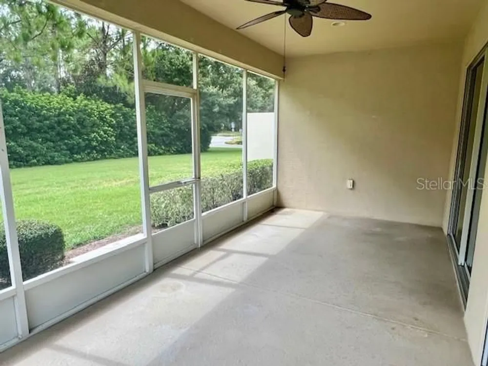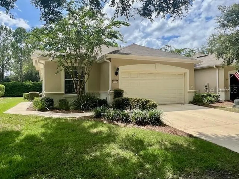 Beautifully maintained 2-bedroom, 2-bath home in the highly desirable 55+ community of Stone Creek. This spacious 1,706 sq ft villa features an open-concept layout with a formal dining area, a flex room/den, and a light-filled living space. The kitchen offers ample cabinet space and overlooks the main living areas, perfect for entertaining. The split-bedroom floor plan provides privacy for guests, and the primary suite includes a walk-in closet and en-suite bath with dual sinks and a walk-in shower. Enjoy tile and carpet flooring throughout, an interior laundry room, and a screened lanai ideal for relaxing. The property also includes a 2-car garage and sits on a well-manicured lot. HOA includes lawn care and access to resort-style amenities: clubhouse, pool, fitness center, golf, and more. Move-in ready and located in a gated, golf cart-friendly community—schedule your showing today!