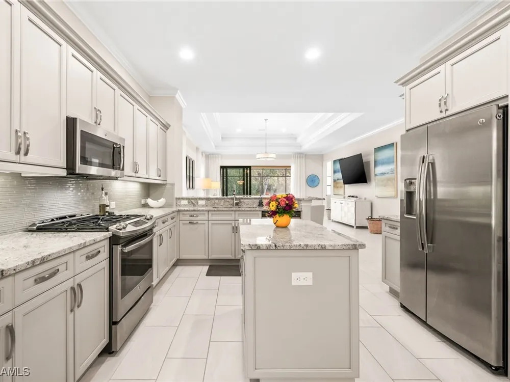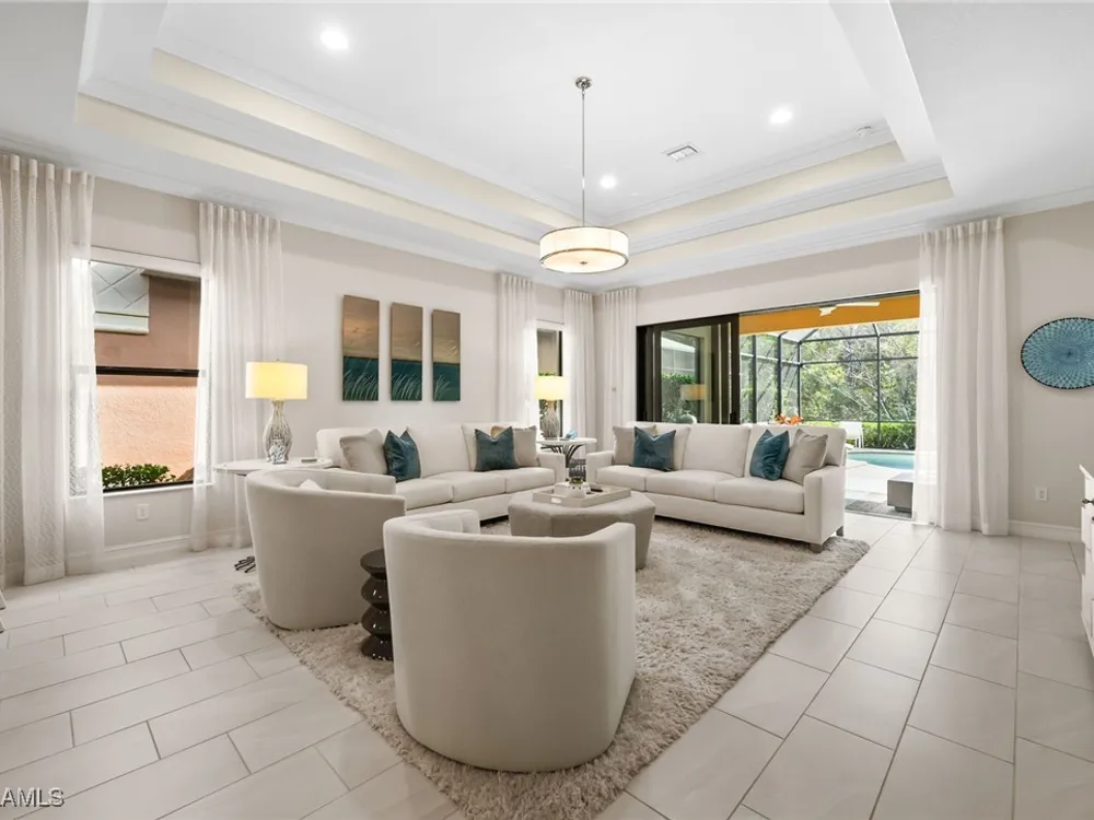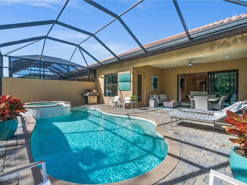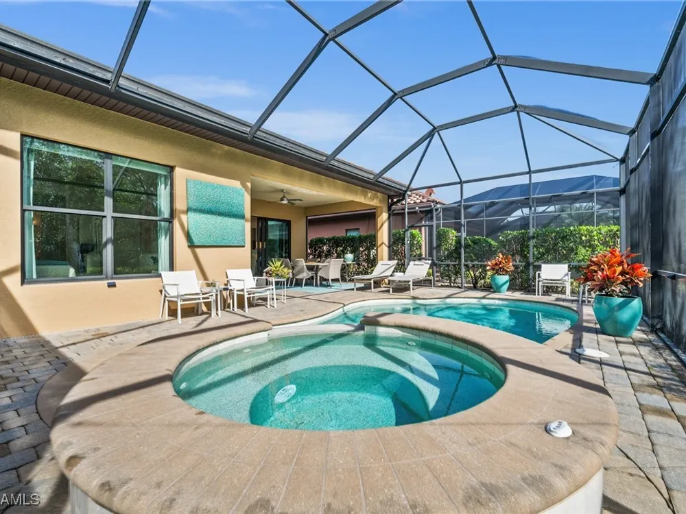TRULY PARADISE!! This is a MUST SEE!!! Come enjoy what the finest of luxury offers in Naples. This EXQUISITE home is located within the highly desired Lakoya subdivision, one of Lely Resort's most PRESTIGIOUS neighborhoods. This is the amazing Stock Group’s largest villa. It is "BETTER THAN NEW" and offers 3 bedrooms/den/2 full baths with numerous upgrades to include 12' double tray ceiling throughout, formal dining room, eat in dining area and bar in kitchen, smart home technology allowing control of the thermostat, doors and music remotely or with your voice within the home, crown moldings throughout, eight foot interior doors, elegant lighting, security system, ceiling fans, private pool and spa, hurricane impact windows and doors, the gourmet kitchen has been upgraded with professional stainless steel gas appliances and cabinetry with soft close drawers, granite countertops, a chef's island and a large pantry. Furnishings are negotiable. Skip the long wait list at the Player's Club and become immediate members. There you'll enjoy the very best of resort amenities including 3 resort style pools with a 22' waterfall, tiki bar, full-service dining with indoor/outdoor bars, 13 tennis courts, 4 pickleball courts,6 bocce courts, 5 pros on hand and a full-service spa and fitness center. Come live true paradise with the happiest residents in all of Naples! Lely Resort also offers 3 golf courses. Join the private golf course “The Classics” or play the two award winning public golf courses Flamingo and The Mustang with no mandatory memberships. Your four-legged family members also have a place to play and meet friends at the Bark Park. Live your Dream and Vacation year-round at BEAUTIFUL Lely Resort you deserve the Lely Life! See attached for list of upgrades.