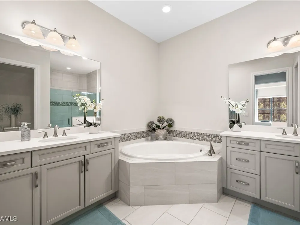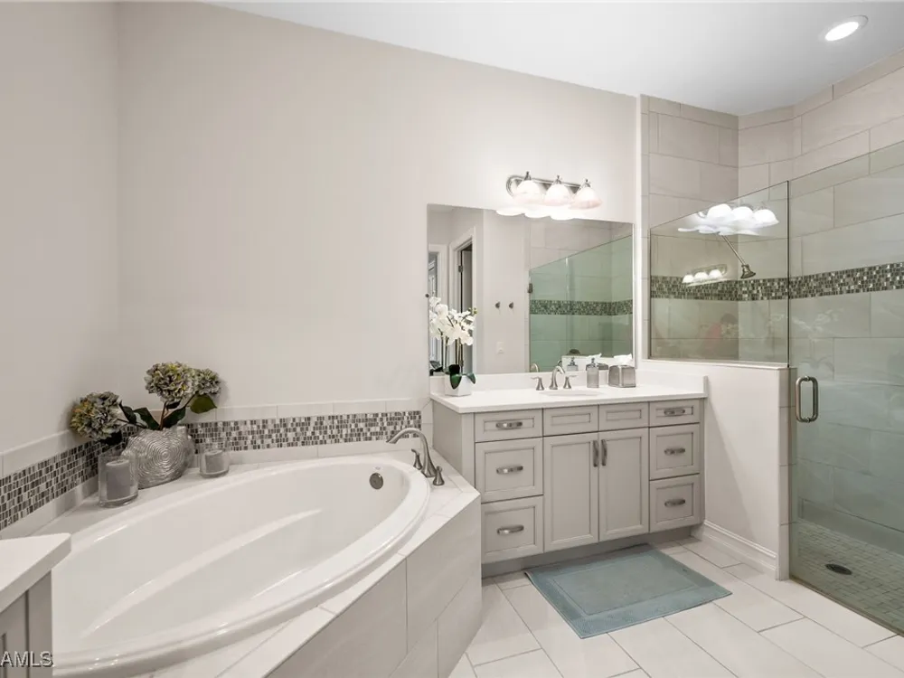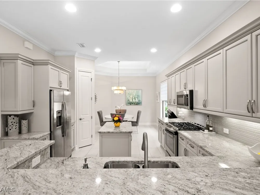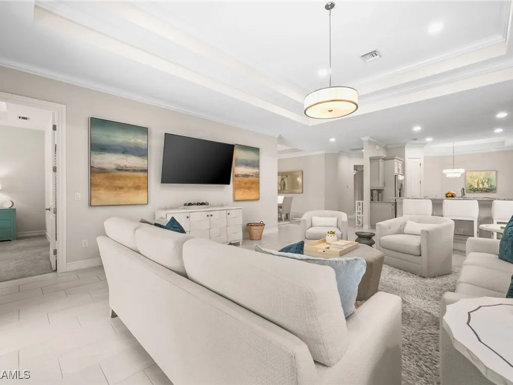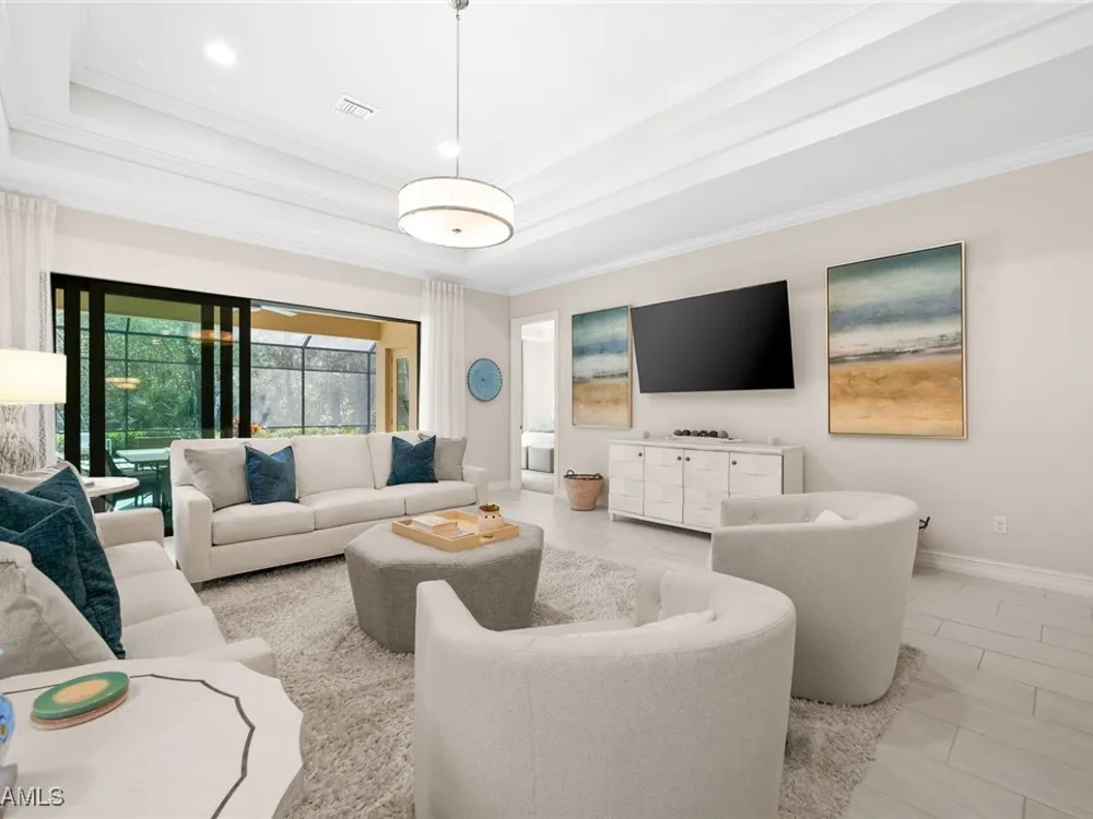 TRULY PARADISE!! This is a MUST SEE!!! Come enjoy what the finest of luxury offers in Naples. This EXQUISITE home is located within the highly desired Lakoya subdivision, one of Lely Resort's most PRESTIGIOUS neighborhoods. This is the amazing Stock Group’s largest villa. It is "BETTER THAN NEW" and offers 3 bedrooms/den/2 full baths with numerous upgrades to include 12' double tray ceiling throughout, formal dining room, eat in dining area and bar in kitchen, smart home technology allowing control of the thermostat, doors and music remotely or with your voice within the home, crown moldings throughout, eight foot interior doors, elegant lighting, security system, ceiling fans, private pool and spa, hurricane impact windows and doors, the gourmet kitchen has been upgraded with professional stainless steel gas appliances and cabinetry with soft close drawers, granite countertops, a chef's island and a large pantry. Furnishings are negotiable. Skip the long wait list at the Player's Club and become immediate members. There you'll enjoy the very best of resort amenities including 3 resort style pools with a 22' waterfall, tiki bar, full-service dining with indoor/outdoor bars, 13 tennis courts, 4 pickleball courts,6 bocce courts, 5 pros on hand and a full-service spa and fitness center. Come live true paradise with the happiest residents in all of Naples! Lely Resort also offers 3 golf courses. Join the private golf course “The Classics” or play the two award winning public golf courses Flamingo and The Mustang with no mandatory memberships. Your four-legged family members also have a place to play and meet friends at the Bark Park. Live your Dream and Vacation year-round at BEAUTIFUL Lely Resort you deserve the Lely Life! See attached for list of upgrades.