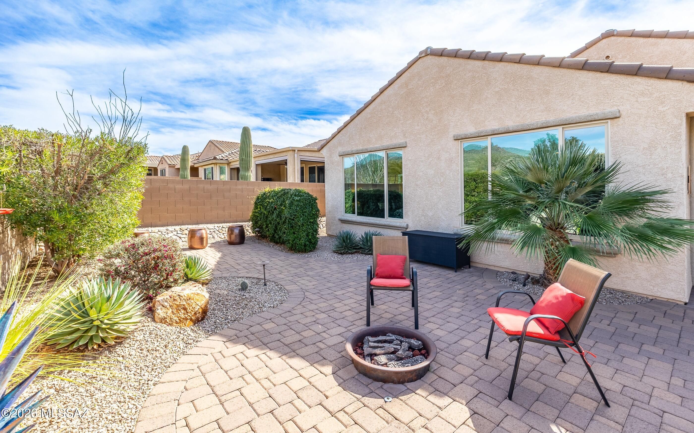 One of the most beautiful, tranquil, relaxing backyard/patio areas in Del Webb - with lovely Tortolita Mountain views. A peaceful oasis. Extended brick paved rear patio w/fire pit seating area + a gated front courtyard relaxation area. Gorgeous interior - walls of glass w/two oversized sliding doors to back porch - from great room & dining room. Lovely kitchen w/rich granite, upgraded cabinets, stainless appliances - and a stylish custom pantry door. You'll love it when you see it! Highly favored Sanctuary model w/2 bedrooms + a den/office. This home's contents - furnishings & accessories + kitchen & linens- are available on separate bill of sale- easily a turn-key property. Immaculate condition and truly move-in-ready. Quick close is possible. Call agent for turn-key pricing.