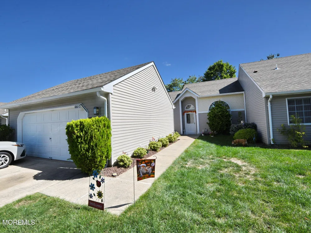 Newest Section of Clearbrook- Lowest Maintenance Fee & Parklike Surroundings! Contemporary ranch-style home offers 2 BR's & 2 BA's, including a master suite w a walk-in closet. Great room features soaring ceilings, palladium windows & an open layout perfect for living & dining. Fresh neutral paint (w/in last 2 yrs) & tasteful accent walls create a bright, airy feel throughout. Spacious eat-in kitchen w plenty of counter space, plus a family room w 2 sets of sliders leading to two private patios. 2-car garage & extra-wide driveway provide parking up to 4 cars. Monthly HOA covers lawn care, snow removal, exterior maint, water/sewer, pools, clubs, cultural center & clubhouse. This home's location & value won't last long-schedule your showing today!