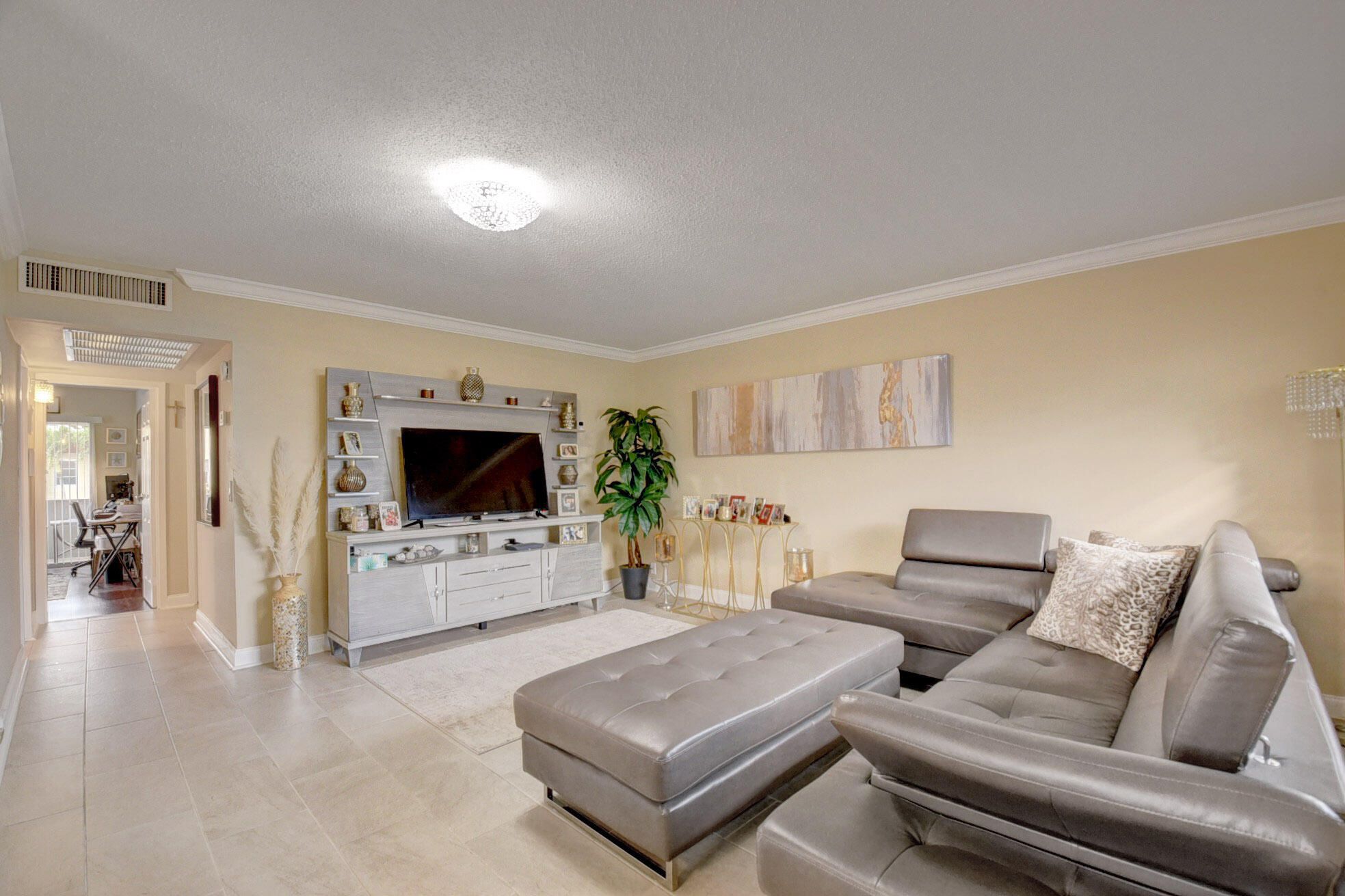 Welcome to Kings Point—an incredibly active, guard-gated 55+ community offering resort-style living! This move-in ready, bright and spacious 2-bedroom, 2-bath corner condo is filled with natural light and designed to impress. The beautifully renovated chef's kitchen features abundant natural wood cabinetry, granite countertops, and newer stainless steel appliances. Enjoy porcelain tile flooring throughout the main living areas, with attractive laminate flooring in both bedrooms. Additional upgrades include crown molding, updated baseboards, and tastefully renovated bathrooms with modern, elegant finishes. The oversized primary bedroom offers a large closet, and the unit is conveniently located just steps from the elevator. A/C and hot water heater replaced in 2019. Residents of Kings Point enjoy an unmatched lifestyle with two 18-hole golf courses, multiple swimming pools, tennis courts, a fitness center, theater, café, and a full calendar of social events and activities. Ideally located between the Florida Turnpike and I-95, and just 8-10 minutes from the beach and downtown Atlantic Avenue, with plenty of shopping and dining nearby. Don't miss this opportunity to own a stunning condo in one of South Florida's most vibrant communities!