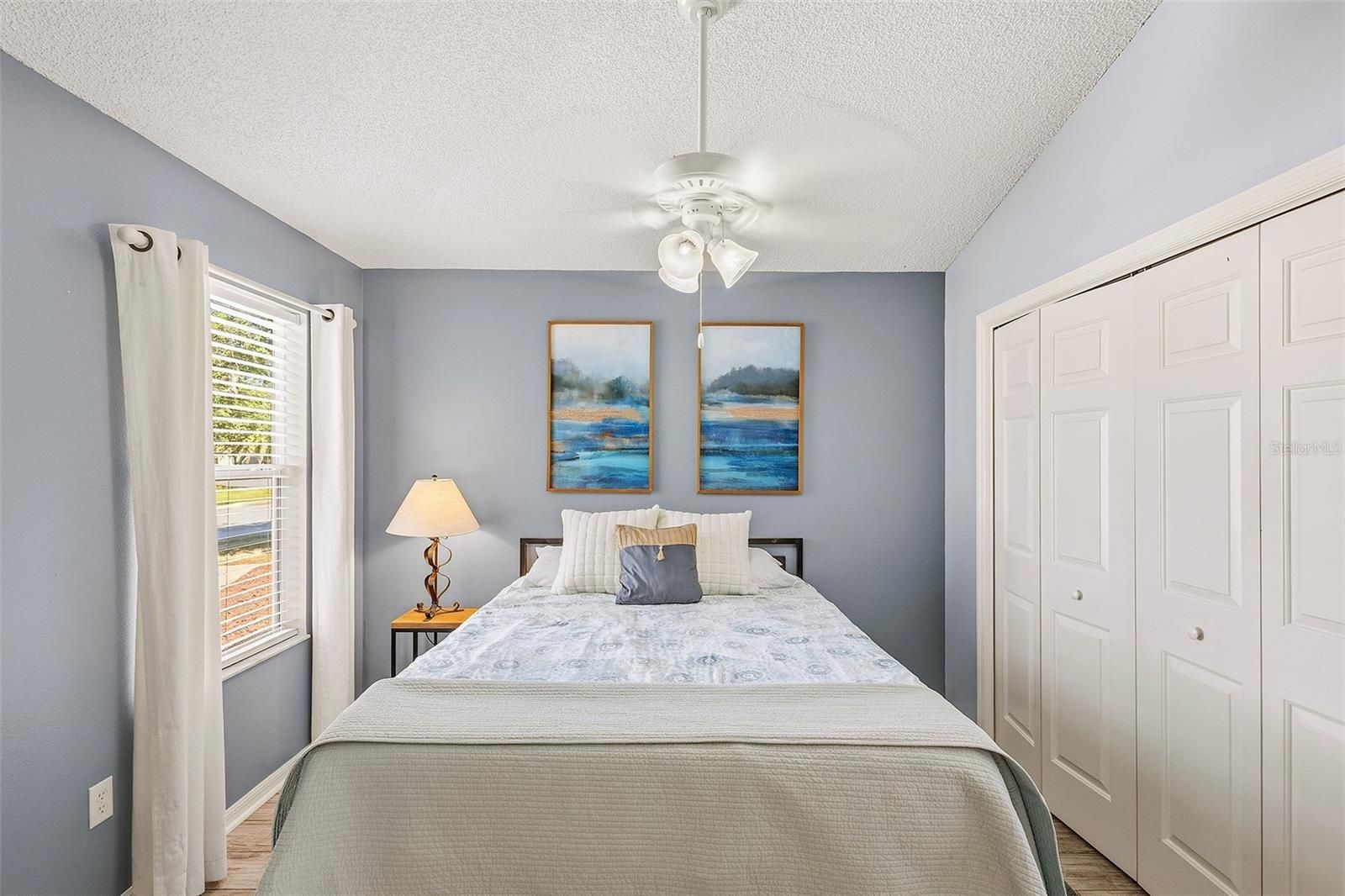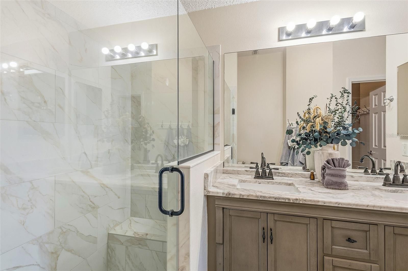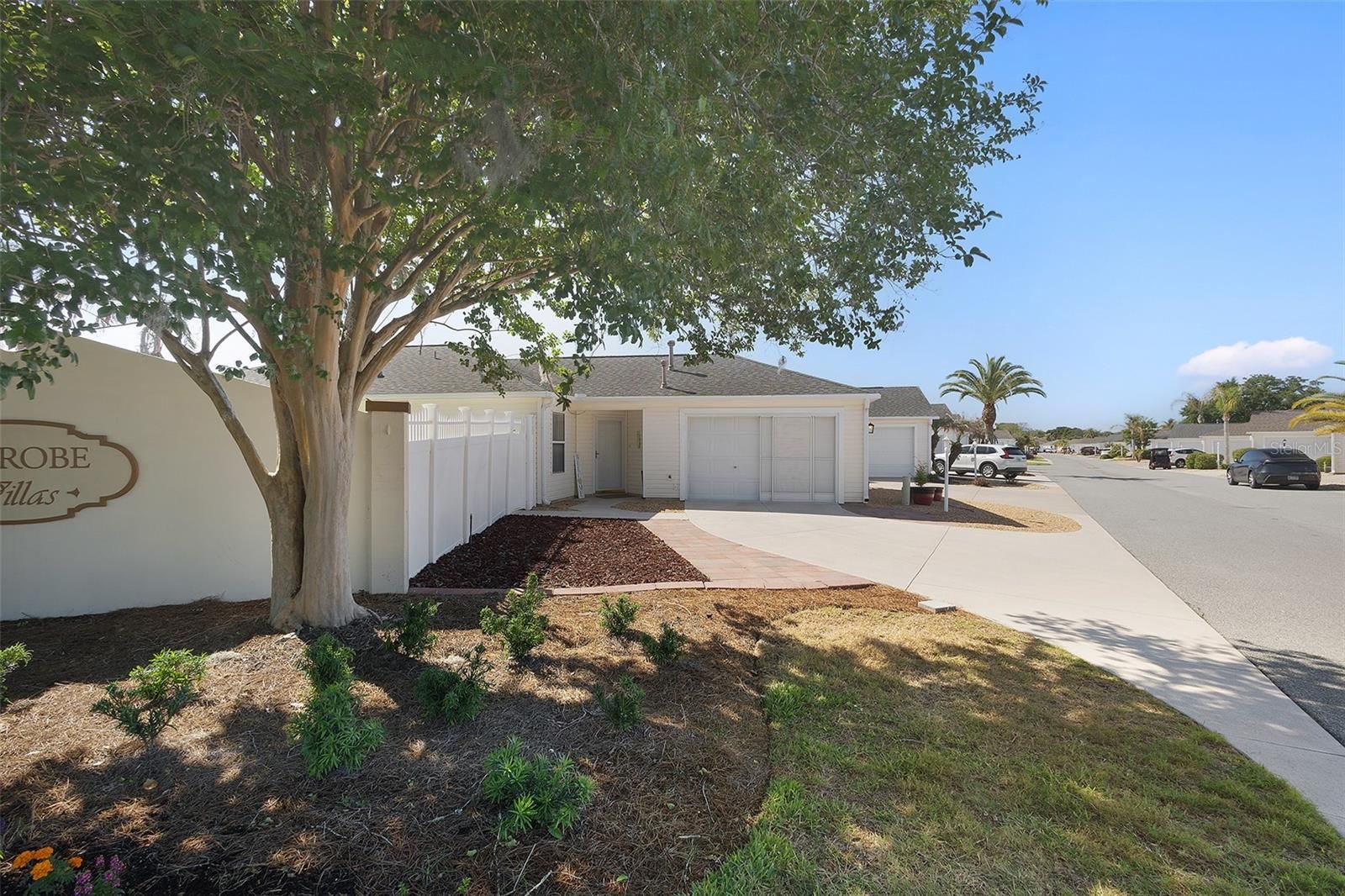 Welcome Home to this beautifully renovated courtyard Villa located in the highly sought-after Village of Winifred. * Roof 2020 * NO BOND * XXL CORNER LOT - ALL Updated ! Tastefully TURNKEY * Watch the Video by clicking on the TOUR LINK. From the moment you arrive, this home stands out with its rare oversized corner lot, offering extra green space perfect for outdoor enjoyment and pets. The low-maintenance landscaping and screened garage door add both convenience and functionality, while the storm glass front door invites you into a light-filled, meticulously maintained interior. Step inside to discover an open-concept living space designed for both relaxation and entertaining. Vaulted (volume) ceilings throughout create an airy, spacious feel, complemented by luxury vinyl plank flooring that flows seamlessly from room to room. The living area is tastefully furnished (turnkey, with select exclusions) and features a cozy freestanding fireplace, making it as inviting as it is stylish. The completely renovated home (2020) is a standout, showcasing white cabinetry, quartz countertops, undermount stainless steel sinks in the kitchen, and newer stainless steel appliances, including a gas stove. It’s a bright, modern space that opens effortlessly to the main living area. Both bedrooms are designed as private ensuite retreats, ideal for homeowners and guests alike. The primary suite features vaulted ceilings, a cedar insert - walk-in closet, and a beautifully updated bathroom with modern tile, step-in shower, and seamless glass enclosure. The guest suite offers the same level of comfort and privacy with its own updated bath and vaulted (volume) ceilings. Outdoor living is where this home truly shines. Enjoy year-round Florida weather from your enclosed lanai with tile flooring, or step into the expanded birdcage and new screen enclosure (2020)—perfect for entertaining, relaxing, or simply enjoying the peaceful surroundings. Additional highlights include: * **Roof replaced in 2020** * **Gas water heater** * **Plantation shutters on sliders & window shades throughout** * **Immaculate, move-in ready condition** * **Northwest-facing orientation for beautiful evening light** * **No Bond** Located just minutes from both Lake Sumter Landing and Spanish Springs, the Village of Winifred offers unparalleled convenience to shopping, dining, entertainment, and all the lifestyle amenities that make The Villages so desirable, situated just minutes from the 466 Shopping & Dining Corridor. This is a rare opportunity to own a fully updated, turnkey courtyard villa on a premium corner lot in one of the most central and convenient locations. Stylish, low-maintenance, and thoughtfully upgraded—this home is ready for you to start living your best Villages lifestyle.