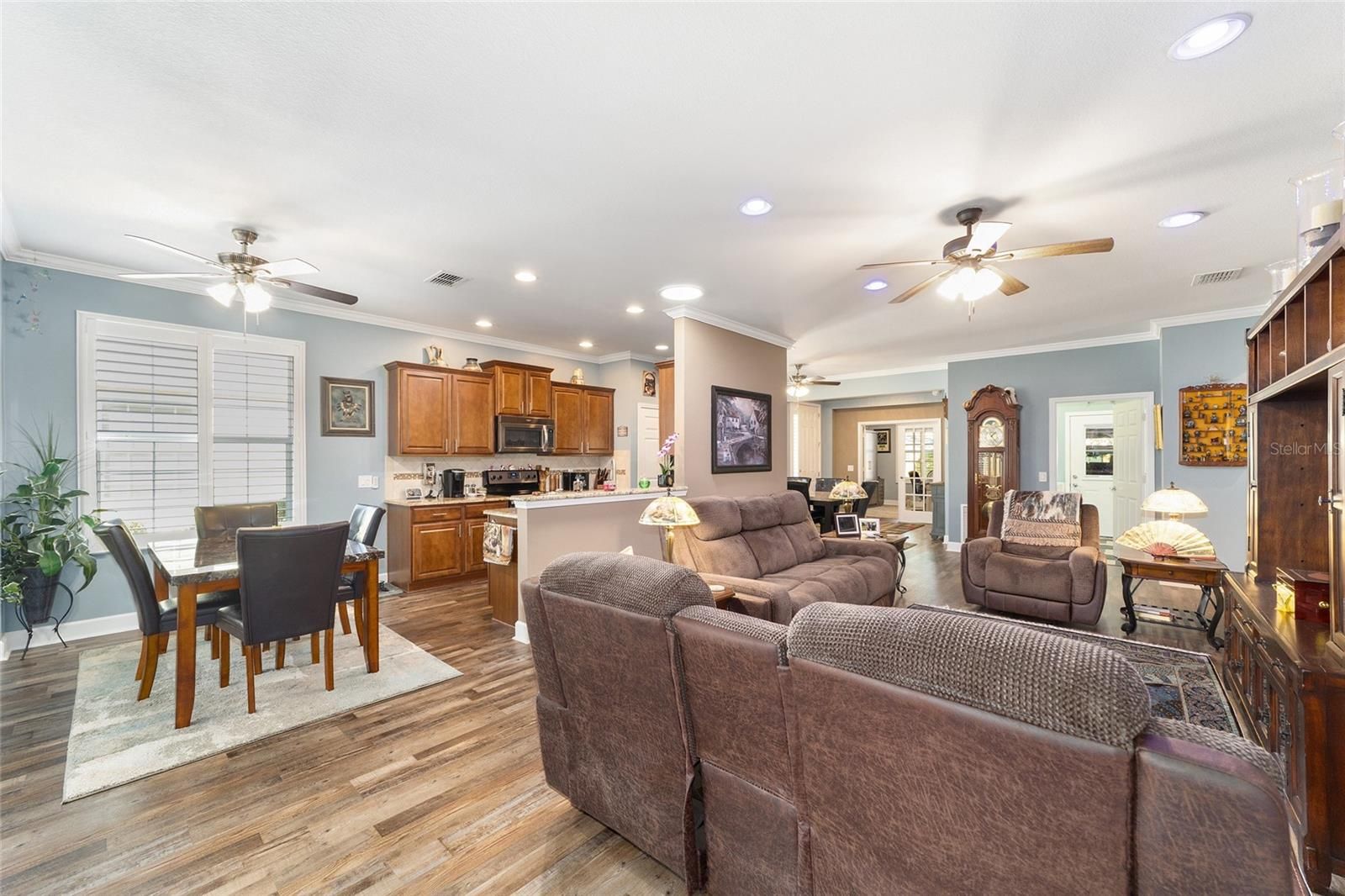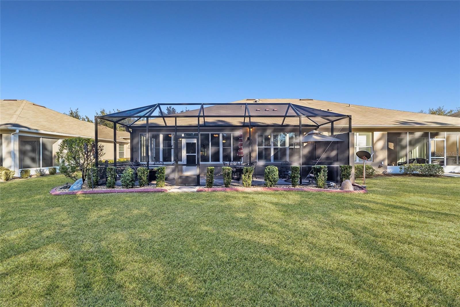 Your home search ends with this maintenance-free Alexander model villa designed to bring you the effortless lifestyle you have been waiting for. This beautiful villa is located within Stone Creek, a premier 55+ gated golf course community known for its resort-style amenities and lively, welcoming atmosphere. With landscaping, exterior painting, roof maintenance, and irrigation all included in your HOA fees, you can embrace a truly carefree way of living and spend your days enjoying the fun, connection, and relaxation this community is known for. A welcoming foyer leads into a beautifully designed living area with a neutral color palette, high ceilings with decorative crown molding, Plantation shutters, and updated luxury vinyl plank flooring throughout. The gathering room features two sets of glass sliders that open to a spacious enclosed Florida room and an extended birdcage patio overlooking lush landscaping. This inviting and expansive outdoor living space is ideal for relaxing or hosting gatherings with family and friends. The chef’s kitchen is ideal for everyday convenience and entertaining. It includes stainless steel appliances, staggered height raised panel cabinetry, sleek granite countertops, recessed LED lighting, and a pantry that keeps everything within easy reach. The owner’s suite provides a quiet retreat with a generous walk-in closet and an en suite bath that features a large step-in shower with detailed glass tile inlay and a granite-topped double sink vanity. Additional comforts include an inside laundry room with a laundry tub and folding station, along with a two-car garage that includes a privacy screen. These thoughtful features make daily living simple and enjoyable while the home’s blend of comfort, convenience, and community creates an ideal setting for your next chapter. And when you are ready to enjoy everything the community has to offer, Stone Creek provides an unparalleled lifestyle with a 24/7 staffed gated entrance that ensures security and peace of mind. Residents enjoy heated pools, a cutting-edge fitness center, a spa, hot tubs, and saunas, along with pickleball, bocce, tennis, and a softball field for those who love to stay active. A dedicated lifestyle staff curates entertainment, activities, and special events that make it easy to connect with neighbors and build lasting friendships. Just beyond the gates, you will find a beautifully maintained golf course, a pro shop, and an on-site restaurant that create even more opportunities for relaxation and socializing. Make your move today and embrace the best of resort-style living.