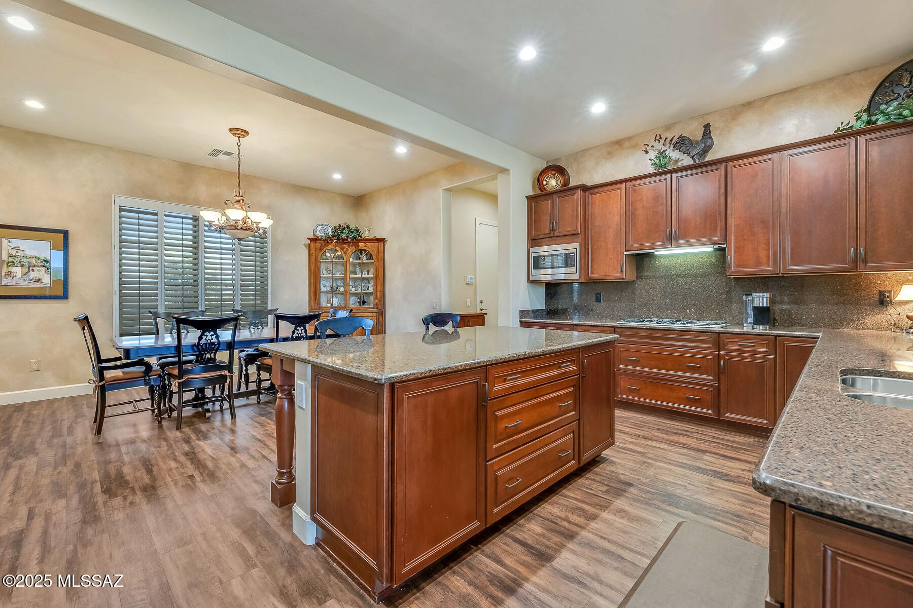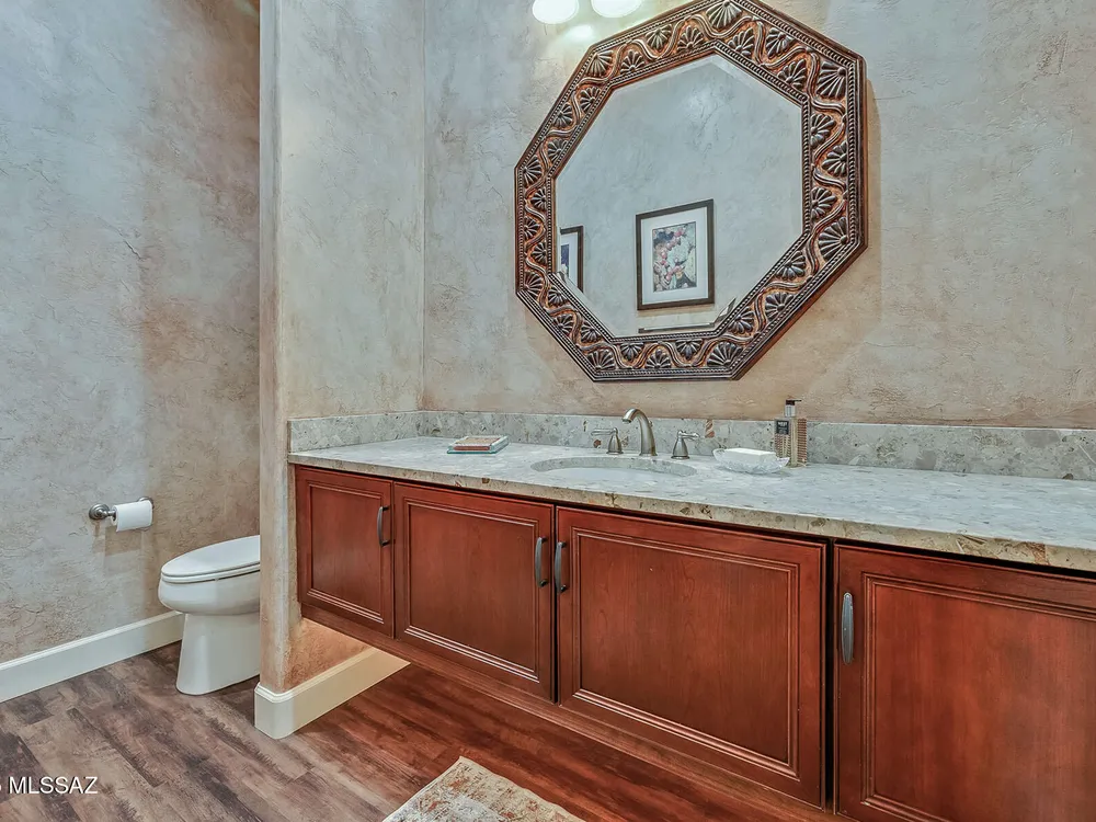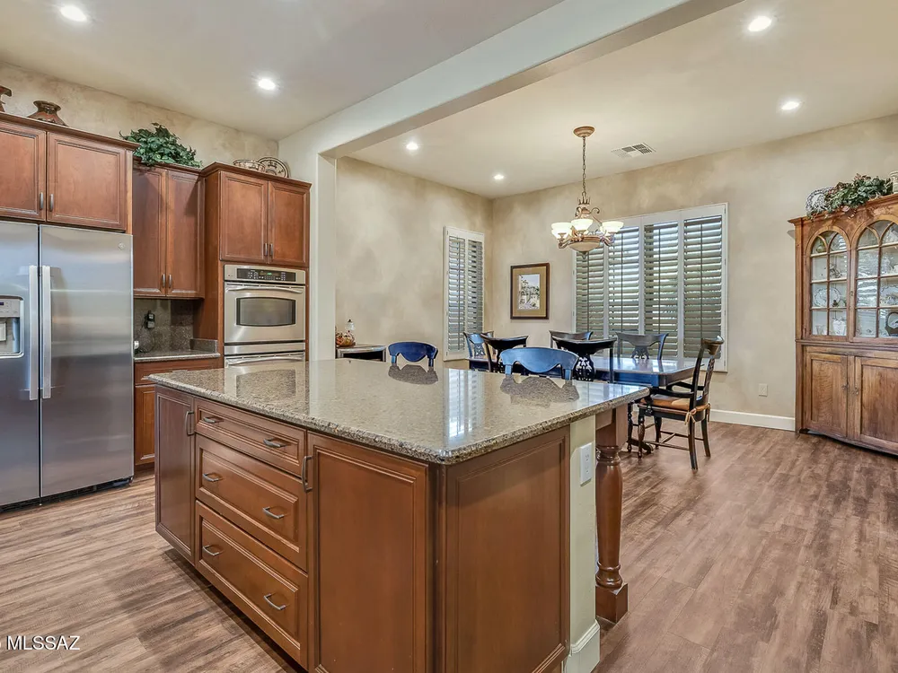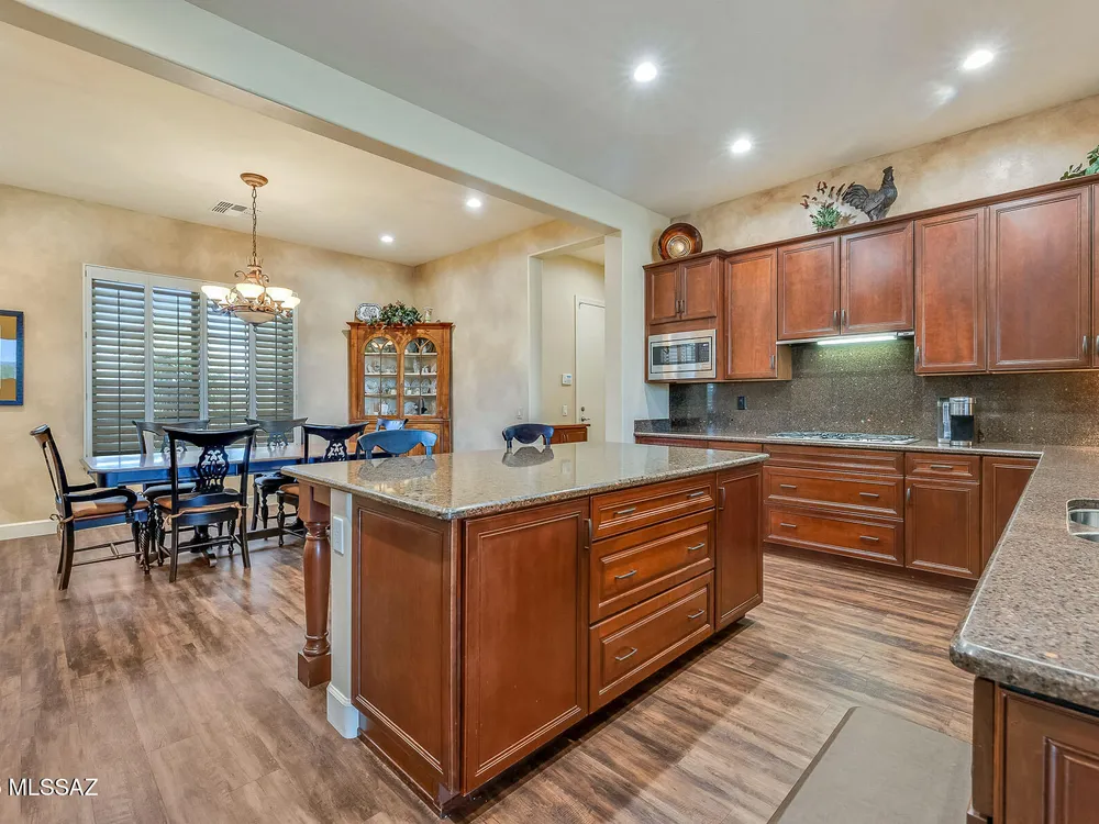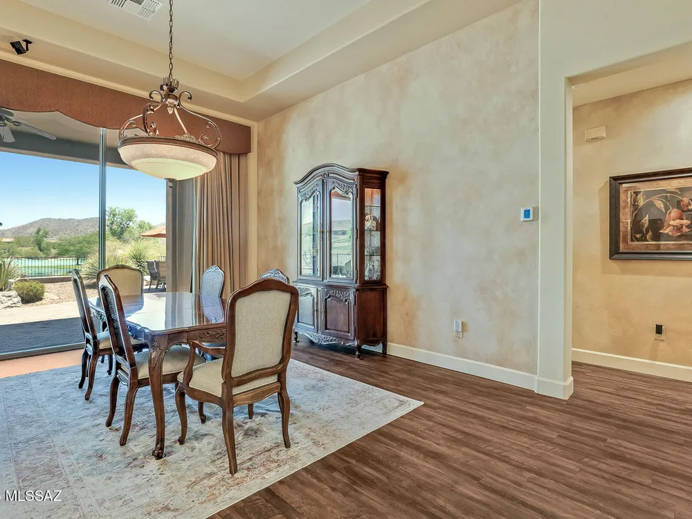 EXQUISITE LUXURY HOME resides on a Premium View Lot in the coveted PRESERVE at SaddleBrooke boasting Panoramic Golf Course and Catalina Mountain Views. Popular Sabino plan on corner lot offers 2,664 sq ft of living space in main home comprising dual Ensuite Bedrooms, Den/Office and Powder Room. Private, detached 285 sq ft Casita off gated courtyard is ideal for additional guests. This elegant Open Concept Plan showcases recessed ceilings, bay windows, faux paint accents, Luxury Vinyl Plank flooring with carpeted bedrooms, plus stone pavers front & rear. Great Room is highlighted by distinct Living & Dining areas, built-in Media wall, Fireplace and View Windows. Expansive Gourmet Kitchen hosts dual islands with breakfast bars, large breakfast nook, rich hued cabinetry, Quartz countertops,