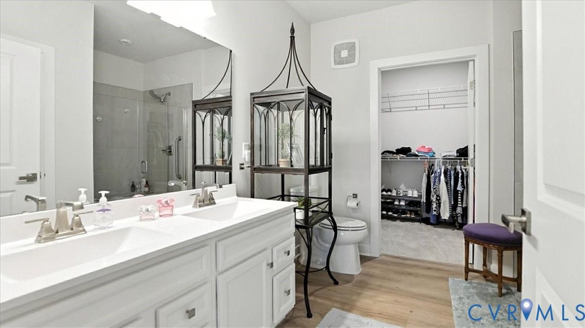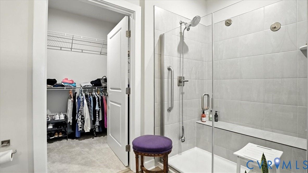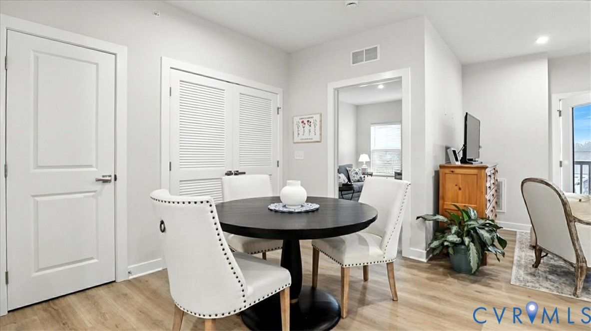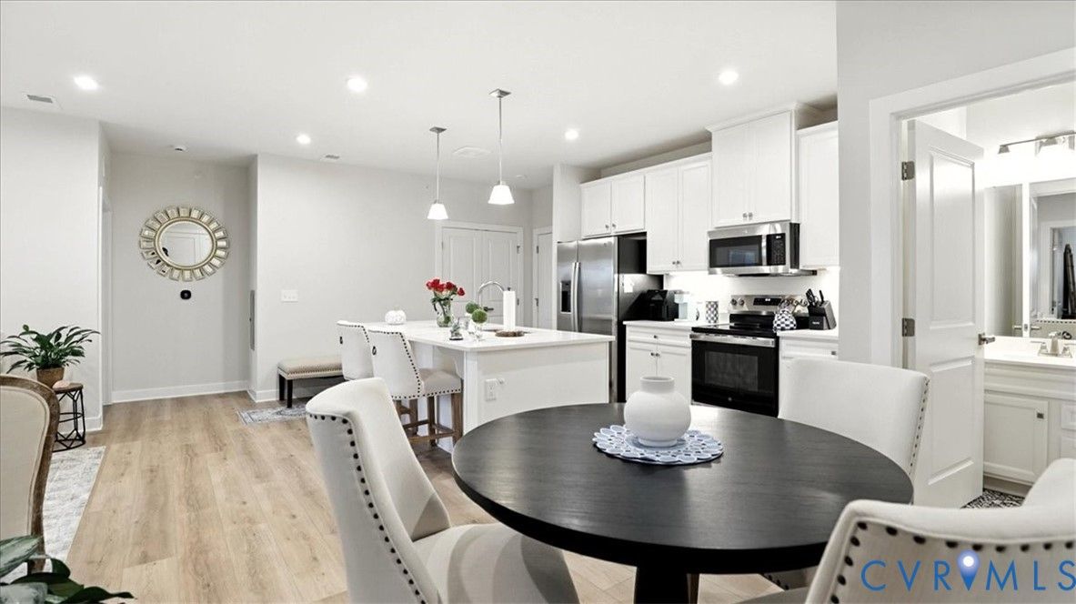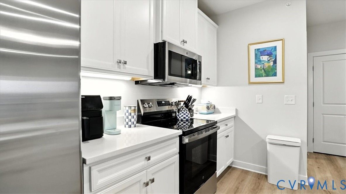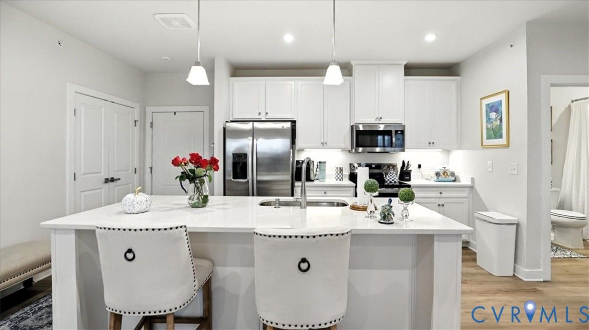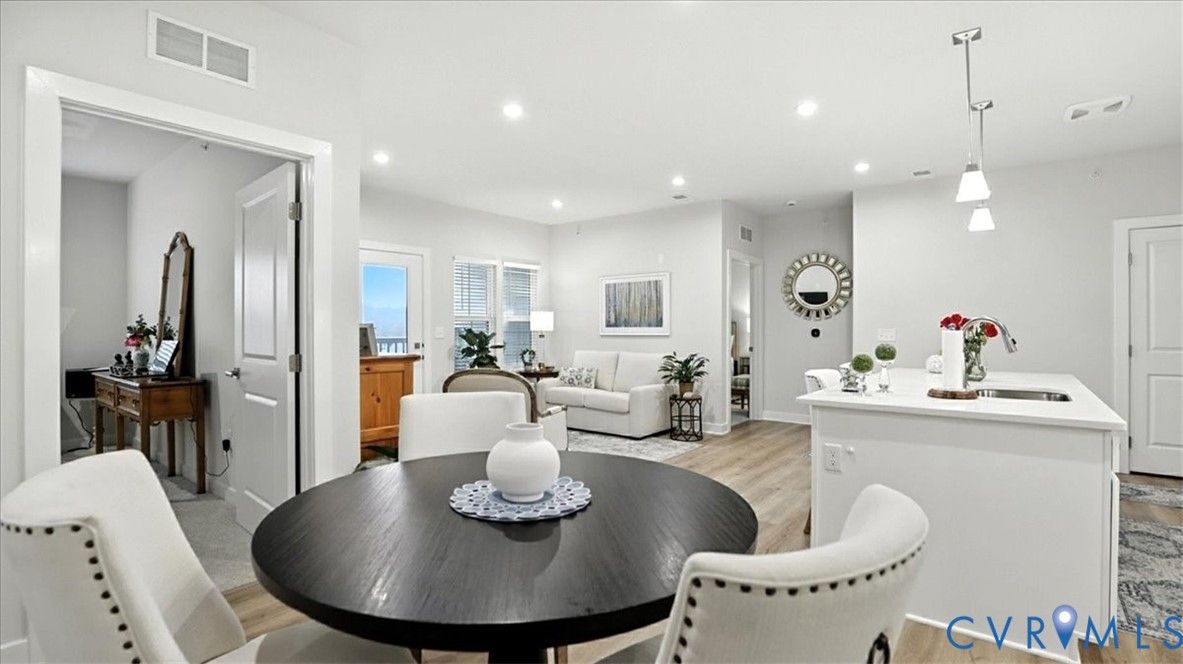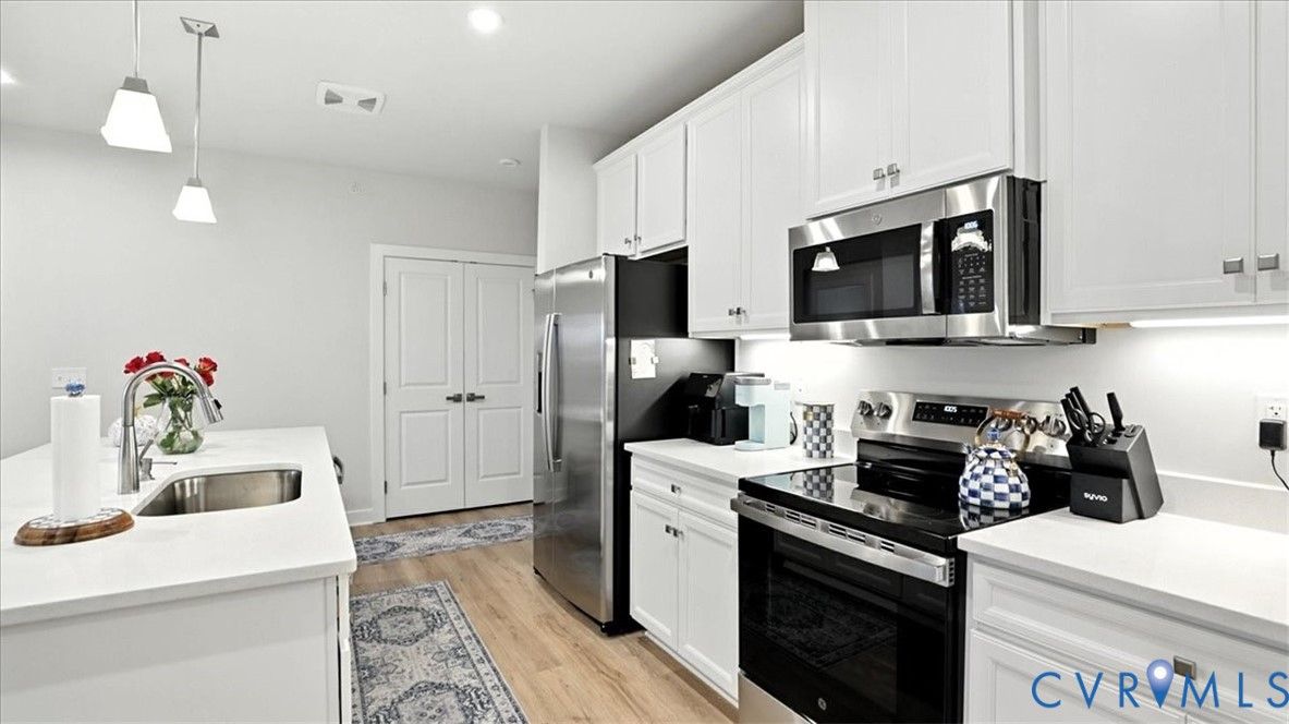 Better Than New, Move-In Ready and waiting for YOU! Welcome to one of the most desirable top-level condos in the 55+ community of Greenwich Walk! This stunning Emerald model offers beautiful views of the neighborhood and is packed with thoughtful upgrades, stylish finishes, and low-maintenance living—all just steps from Cosby Village. Step inside this sunny, open-concept home and fall in love with the chic, durable LVP flooring and spacious layout designed for both comfort and entertaining. The designer kitchen is a true showstopper, featuring sleek quartz countertops, under-cabinet lighting, stainless steel appliances (refrigerator conveys), an expansive island with bar seating, recessed/pendant lighting, a generous pantry, and a cozy dining area. The inviting living room flows seamlessly from the kitchen and opens to a private balcony—your perfect perch for morning coffee or evening unwinding. Retreat to the spacious primary suite, complete with plush carpeting, a huge walk-in closet, and a spa-inspired en-suite bath with a raised-height double vanity, linen closet, and a beautifully tiled walk-in shower with bench seating. A second bedroom—ideal for guests or a home office—is conveniently located near a second full bathroom. Added bonus: no need to install blinds AND the washer/dryer are included! Enjoy elevator access and true single-level living in Chesterfield’s premier active adult community. Greenwich Walk @ Foxcreek offers its own private clubhouse, pickleball courts, fitness center, pool, walking paths and a tranquil pond. With dozens of social clubs and regular community happy hours, there’s always something to do—and great neighbors to do it with. Don’t miss your chance to experience the ultimate in carefree living. Schedule your showing today!