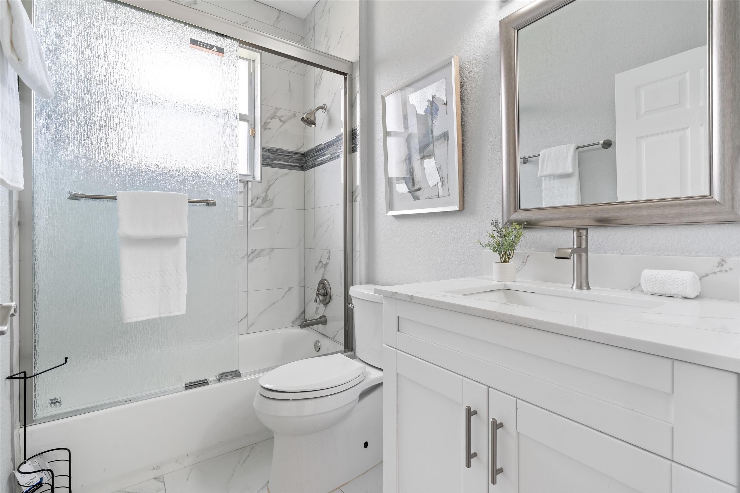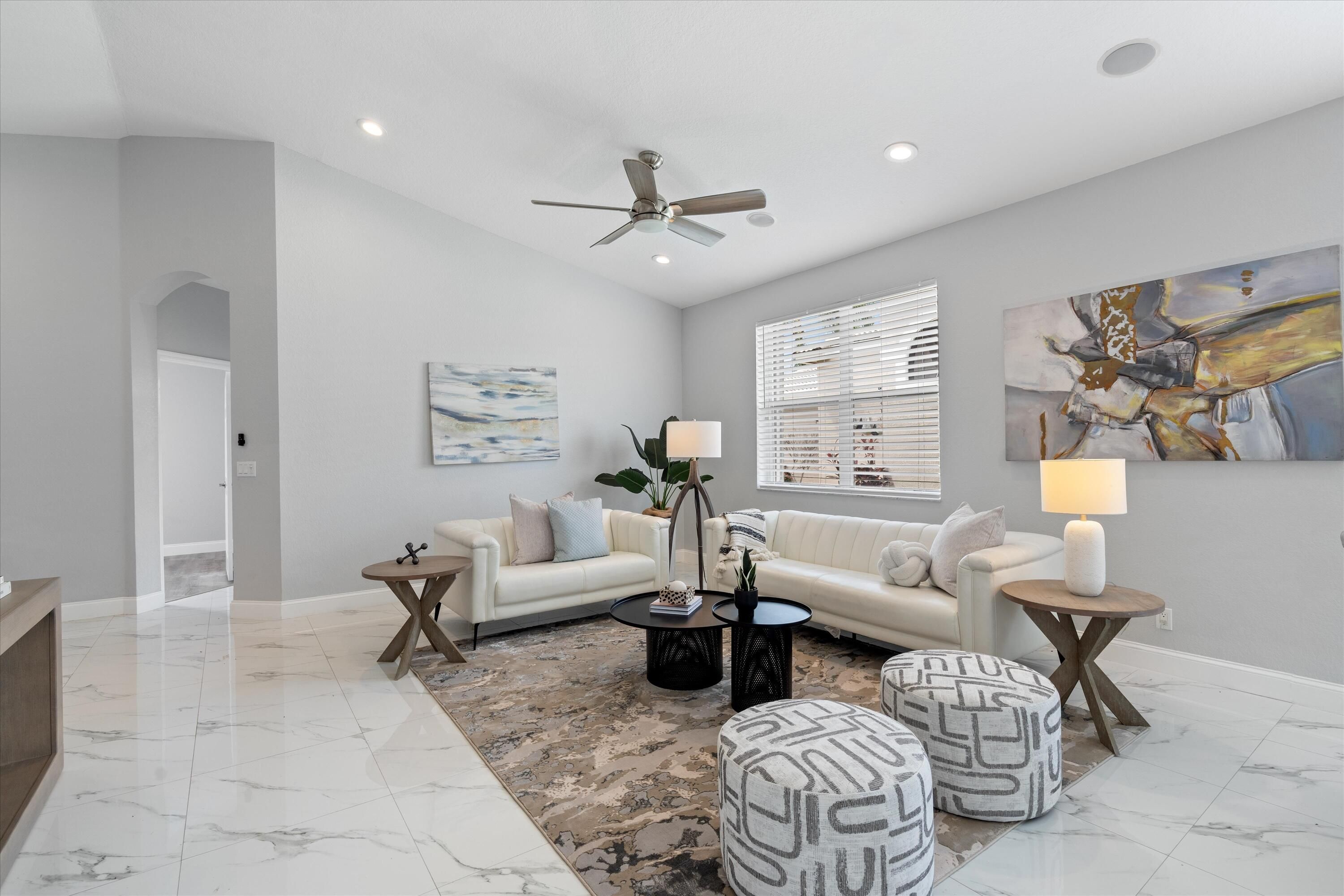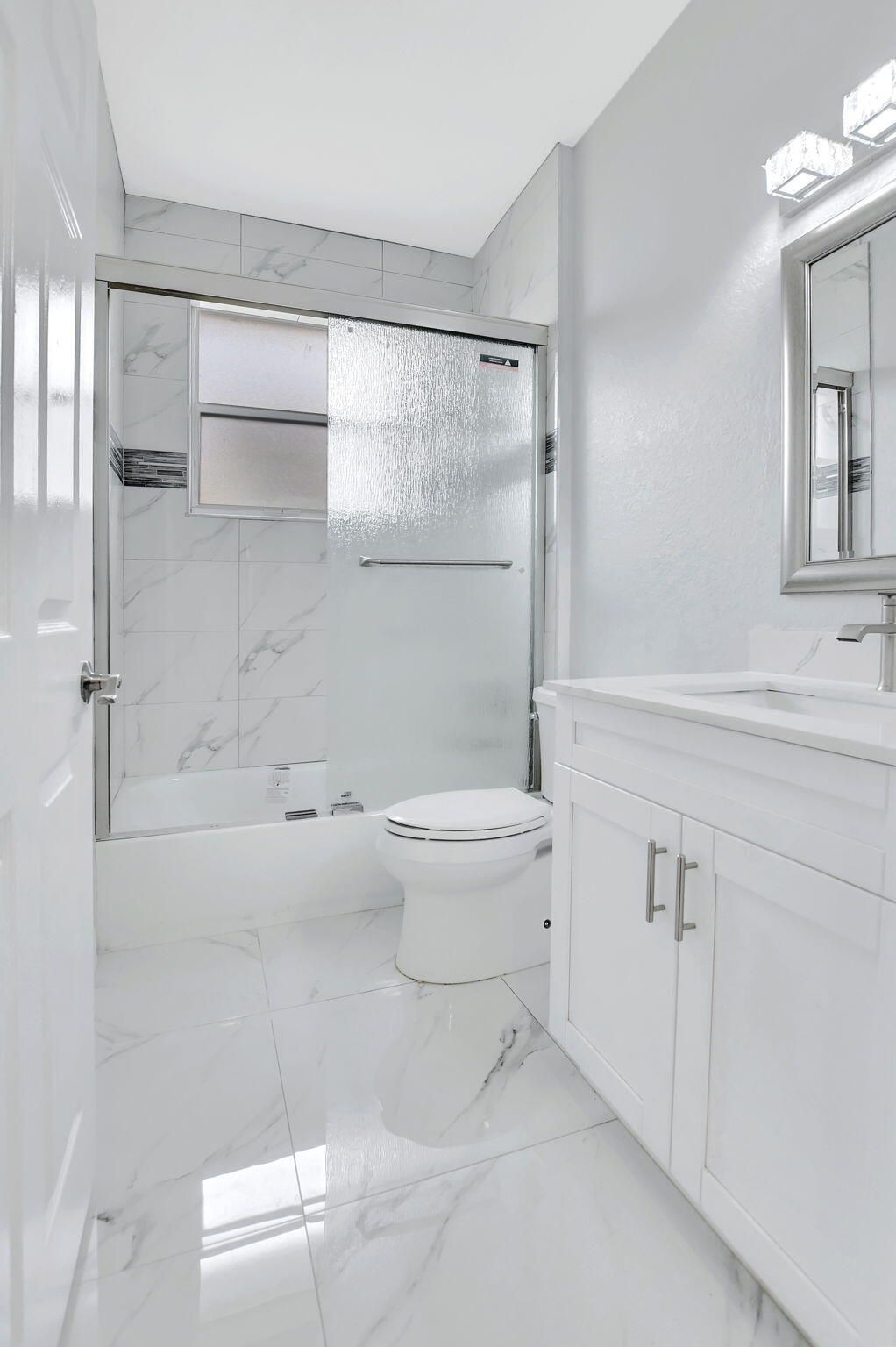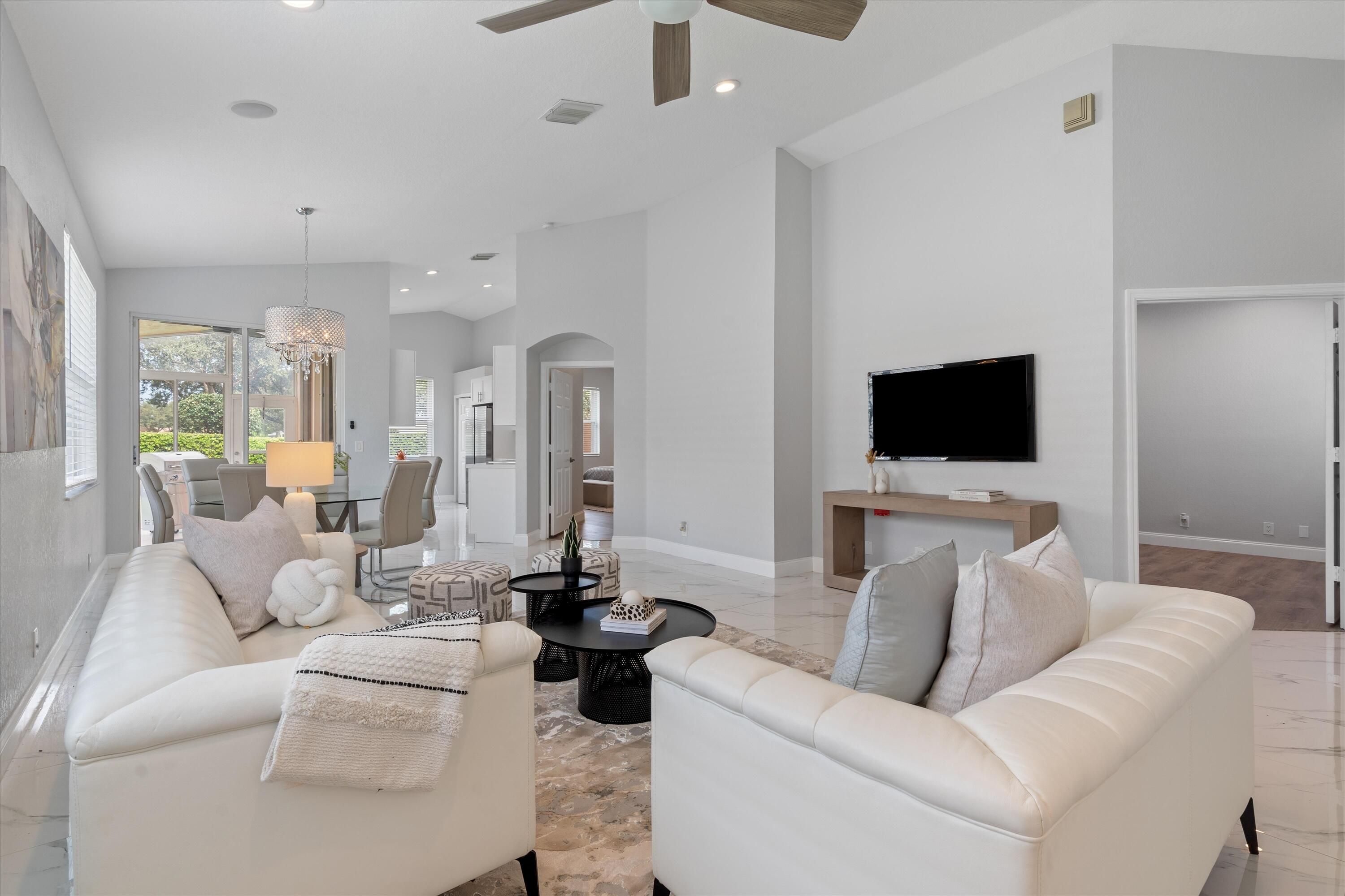 Renovated from top to bottom! BRAND NEW ROOF! 3 bedrooms, 2 full baths, 2 car garage. Gorgeous kitchen with quartz counters, white shaker soft close cabinets, brand-new stainless-steel appliances. Split bedroom plan offers you and your guest privacy. Impressive tile floors throughout living areas. High ceilings, 7'' baseboards, high end laminate flooring in bedrooms. High hat lighting. Designer light fixtures. Covered screened patio. Villa Borghese is a very active 55+ guard-gated community that is beautifully maintained! Gorgeous clubhouse, that was recently renovated. Very active with tons of activities, clubs, shows & entertainment. Resort style pool and spa, pickleball, bocce ball, and 5 har-tru tennis courts and so much more! Don't miss out!