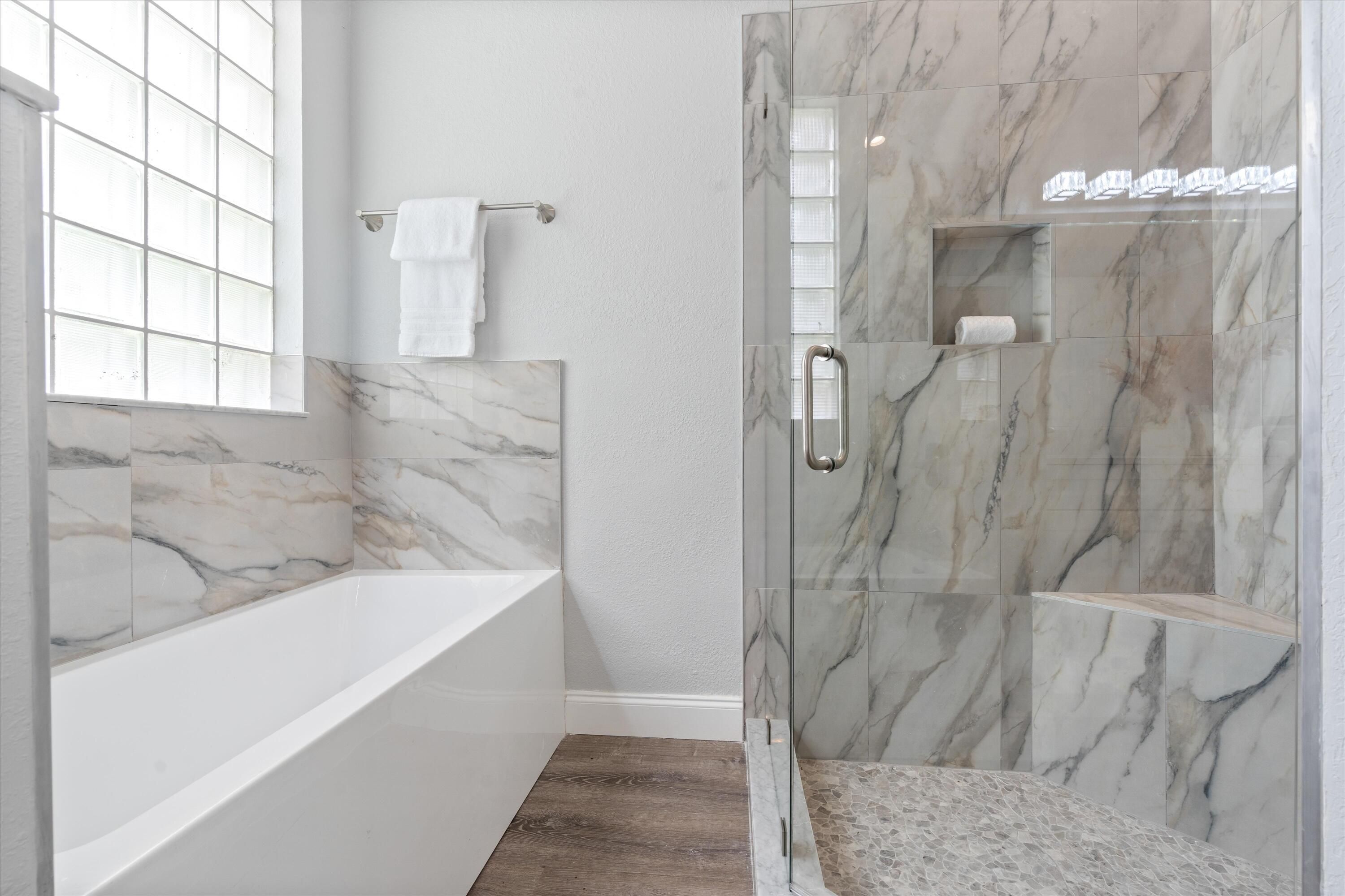 - Split Bedrooms, High Ceilings, Entrance Foyer, Living/Dining Room, Breakfast Area, Blinds, Separate Shower, Dual Sinks, Bathtub