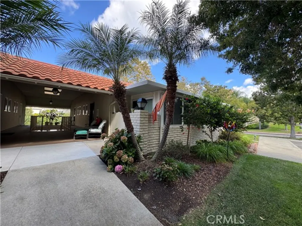 **PHOTOS COMING FRIDAY 10/17 - STAY TUNED!** No stairs to this beautifully remodeled single-level home in the guard-gated Laguna Woods Village community. This end-unit lives more like a private cottage than a condo, offering the rare benefit of no one above or below you and a convenient carport plus guest parking just out front. Completely reimagined with walls moved and the floor plan expanded for improved functionality, storage, and flow. The primary suite was enlarged and reconfigured for better livability, and the guest bedroom was widened by about a foot with a larger closet - creating a comfortable space for guests or a home office. The open-concept kitchen features an impressive center island with pendant lighting that offers bar seating and ample storage, granite countertops, a large skylight for natural light, and upgraded stainless-steel appliances including a Bosch dishwasher, range with built-in air fryer, and full backsplash. Additional features include rich wood laminate flooring throughout, LED dimmable lighting, crown molding, high-end dual-pane windows, five ceiling fans, and a full-size in-home washer and dryer. The Smart Home system allows you to control lights, temperature, and the August keyless front door using Alexa or Google. The enclosed front patio adds