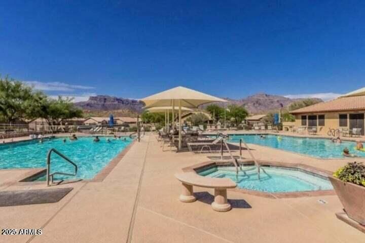 YOU'LL LOVE THE SPECTACULAR SUPERSTITION MOUNTAIN VIEWS FROM THE PATIO LOOKING UP THE 7TH FAIRWAY FROM THIS CHARMING HOME LOCATED IN MOUNTAINBROOK VILLAGE. GOLD CANYON'S MOST SOUGHT AFTER OVER 55 COMMUNITY! THIS POPULAR SAGUARO MODEL HOME IS EVEN BETTER WITH AN EXTENDED 400' SQ FT LIVING ROOM ADDITION AND GORGEOUS GRANITE KITCHEN ISLAND REMODEL INCLUDING A NEW KITCHEN SINK, BAR SINK AND EXTENSIVE USE OF BRASS RAILINGS AND FOOT RAILS. MUST SEE TO BE APPRECIATED! LARGE PRIMARY BEDROOM WITH MASTER BATH INCLUDES DOUBLE VANITIES, GARDEN TUB, SHOWER & WALK-IN CLOSET. SEPARATE GUEST BEDROOM & DEN ALLOWS FOR PRIVACY. GAS FIREPLACE. AMPLE OAK CABINETRY. CORNER PANTRY. REDUCE HIGH ENERGY COSTS WITH OWNED EFFICIENT SOLAR PANELS! R/O SYSTEM, 4' GARAGE EXTENSION & ELECTRIC CAR CHARGING STATION! WOW!