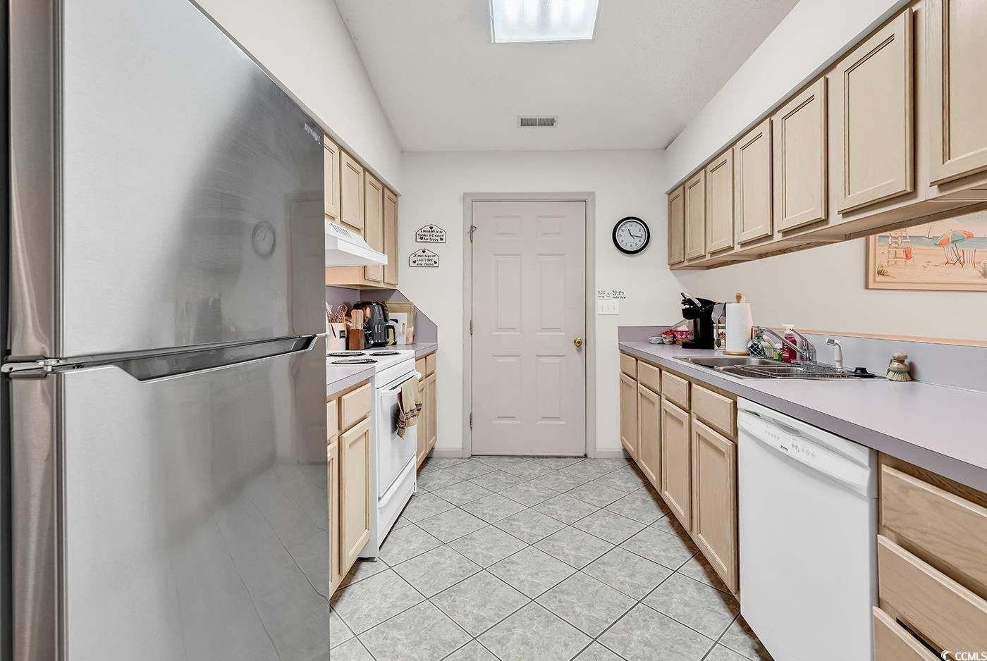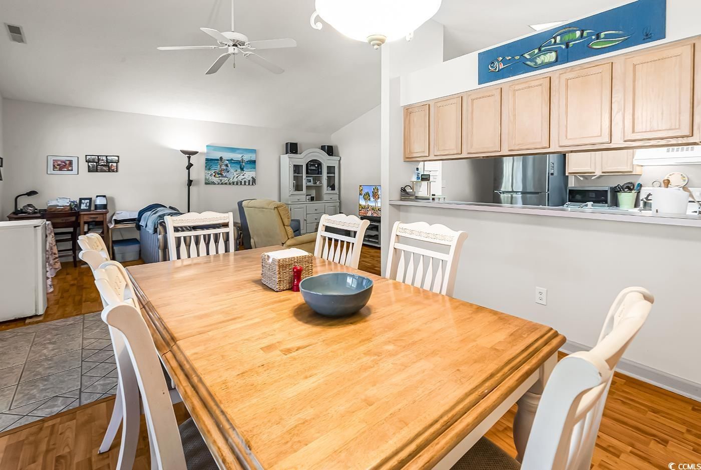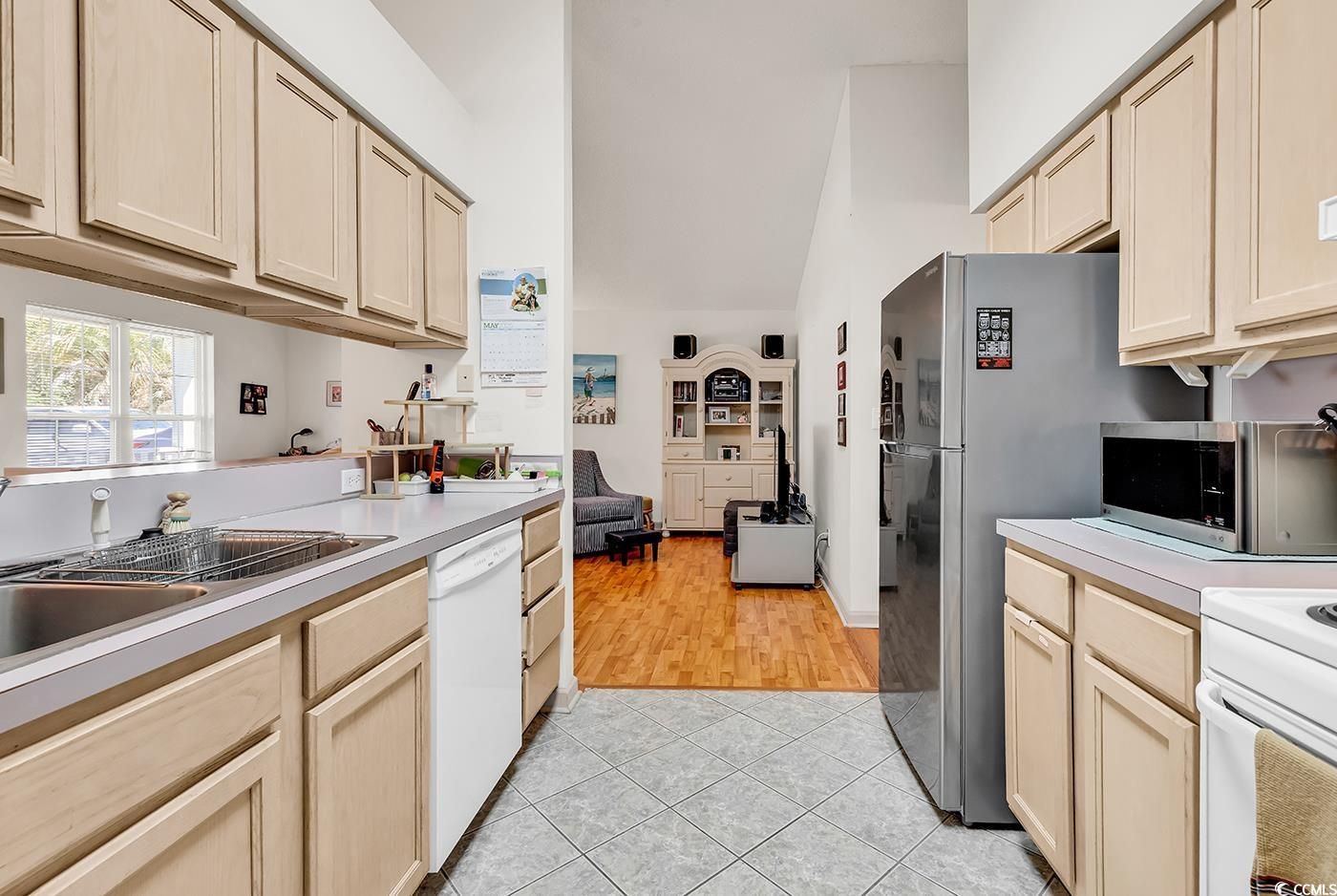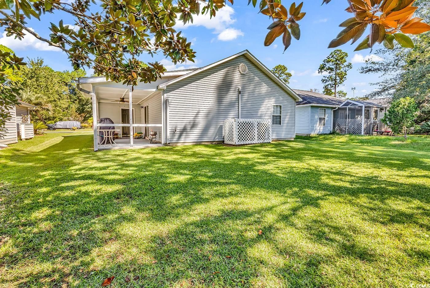 Welcome to this charming 3-bedroom, 2-bathroom home in the gated community of Myrtle Beach Golf & Yacht. Inside, you’ll find a galley-style kitchen with a convenient pass-through to the living area, complete with a full bank of double-sided upper cabinets that add both function and storage. The main living spaces and bedrooms feature low-maintenance laminate flooring, while tile accents the kitchen and baths. The primary suite includes double closets, a private en suite bath, and direct access to the covered back porch—an inviting space to relax and enjoy the outdoors. Additional highlights include a covered rear porch, and the option to purchase the home fully or partially furnished, making it move-in ready. Living here means more than just a house—it’s a lifestyle. The community offers an impressive array of amenities including a pool, hot tub, tennis and shuffleboard courts, a playground, picnic area, and clubhouse. There’s also RV and boat storage, plus quick access to the Intracoastal Waterway and boat ramp at the end of Bay Road. All this, just a short drive from Myrtle Beach’s beautiful beaches, golf courses, entertainment, dining, and shopping.