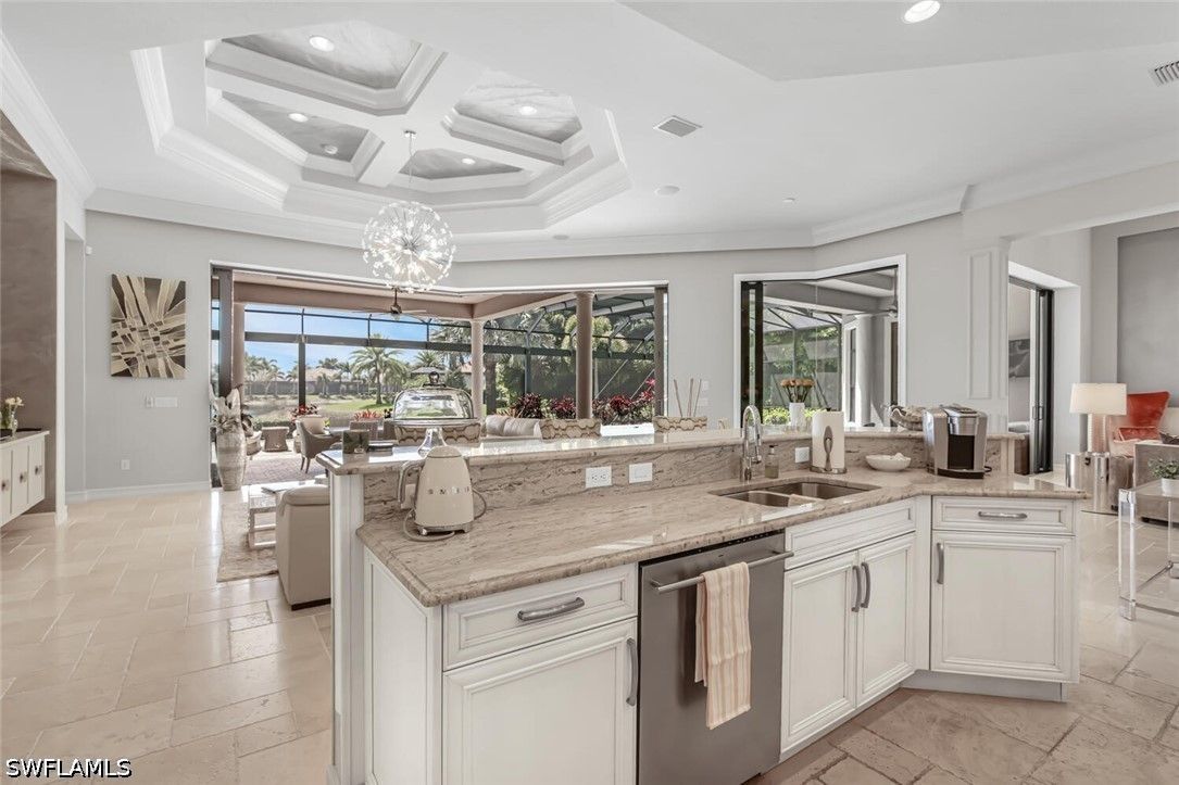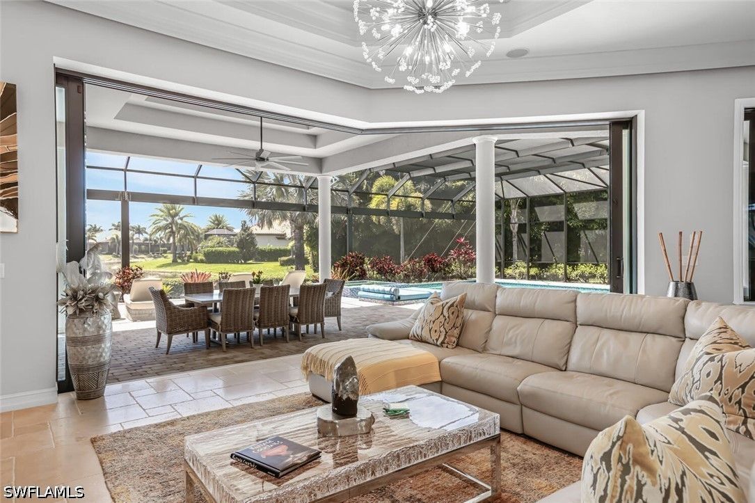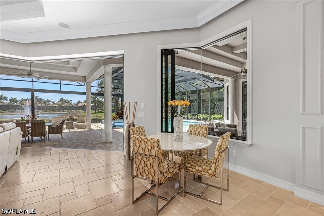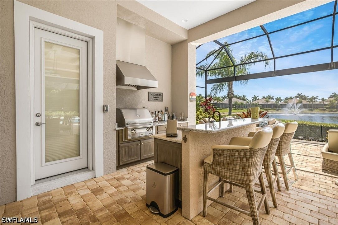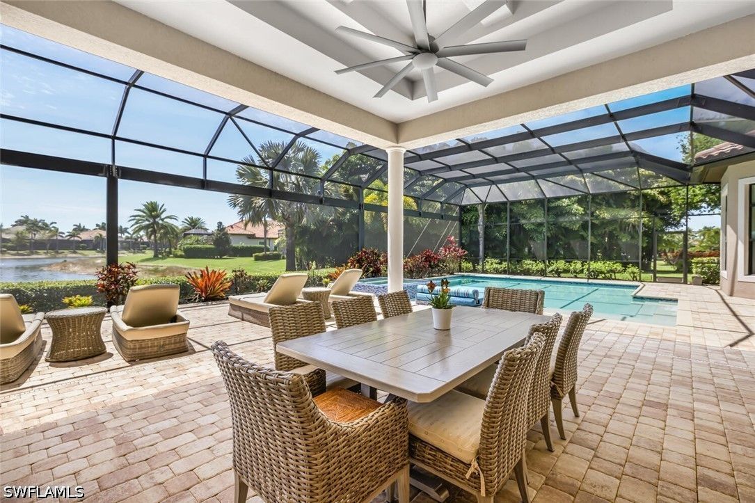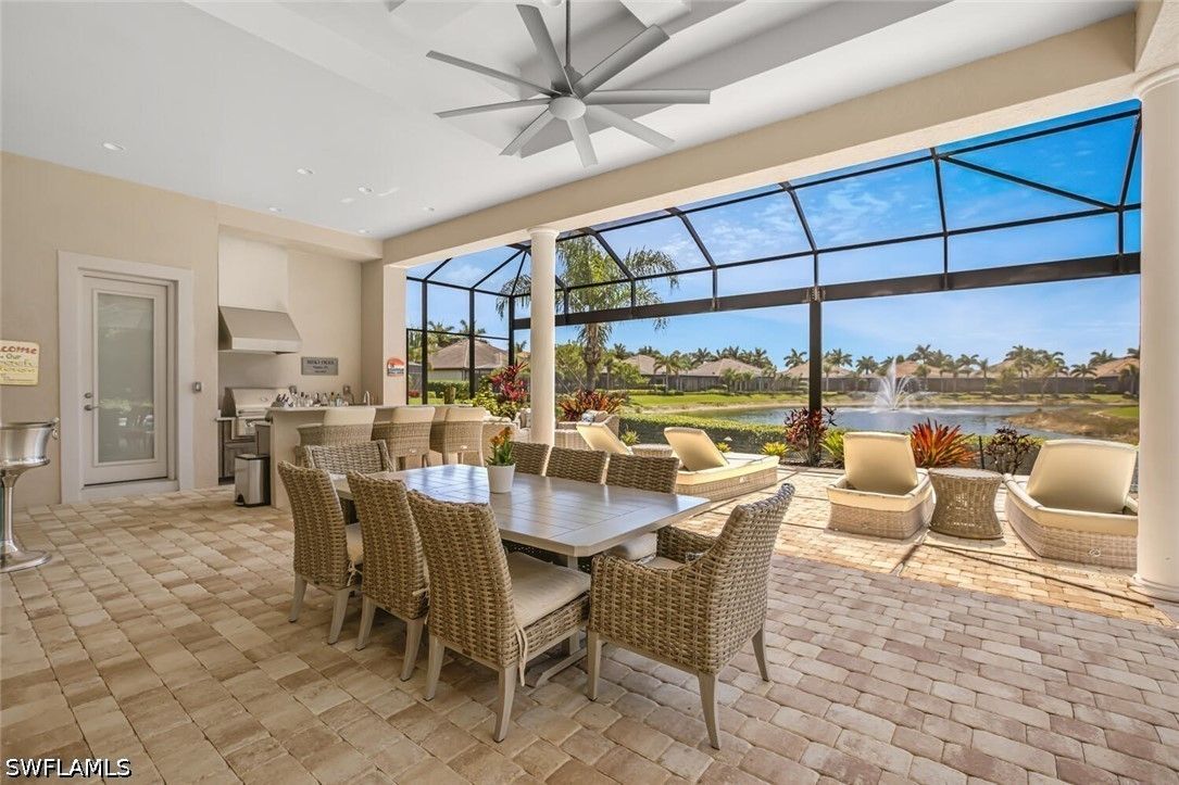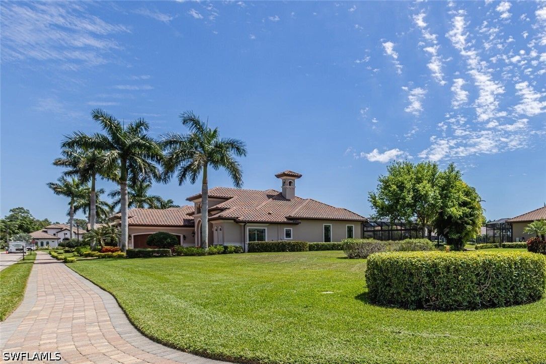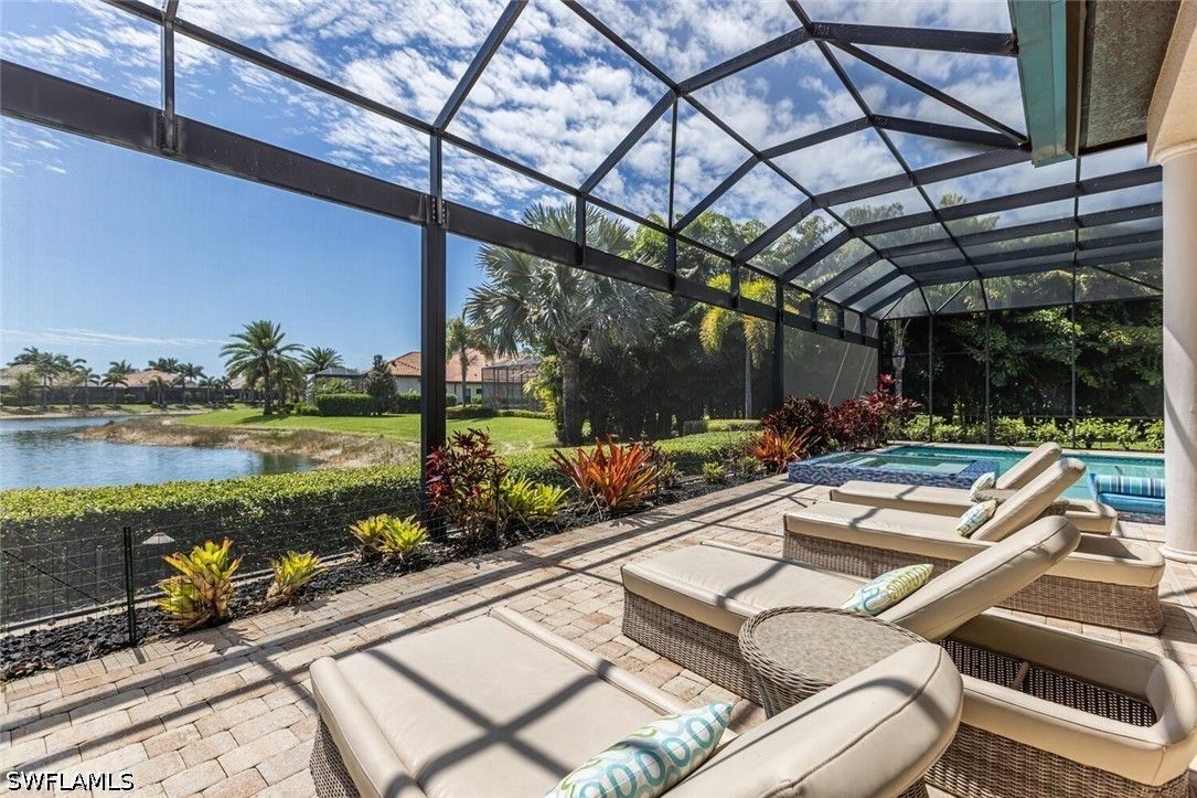Location, location, location this rarely available Majorca (Diamond Series) model on a private corner lot located in the beautiful Lakoya community has one of the better views in all of Lakoya! This open floor plan allows the owners and guests to enjoy a beautiful view throughout the living room, family room, kitchen, master bedroom and of course the lanai! The southern exposure allows for you to enjoy the pool and spa all day! If you love to entertain, this is the perfect home with a beautiful outdoor natural gas kitchen, bar and fire pit! The interior with its beautiful ceilings, wood and tile flooring, plantation shutters and stainless-steel appliances must be seen to be appreciated. The upgraded California closets are spectacular! A beautiful pool and Spa including a large picture window lanai cage has a beautiful view of a lake and water display! Enjoy tennis, pickleball, bocce, exercise facility, restaurant, beauty salon and spa! In addition to the two public golf courses and one private course! Easy access to either downtown Naples or Marco Island!