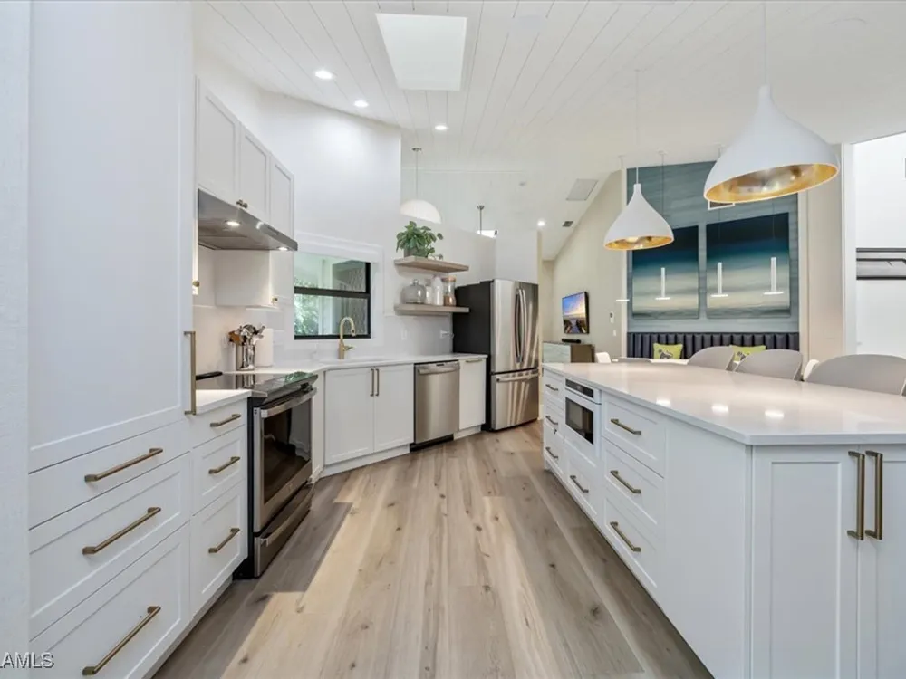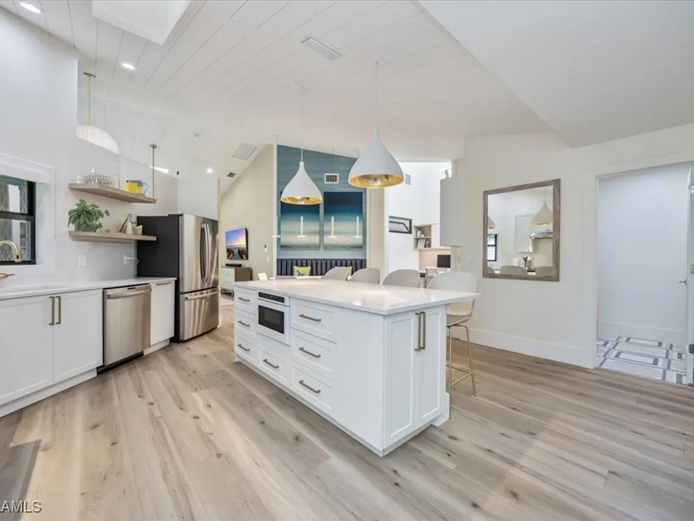This centrally located, fabulous 3+den residence has been incredibly transformed from floor to ceiling with a stunning selection of finishes and materials. Blending style, practicality, and a touch of playful creativity, this home showcases thoughtful design choices throughout. All major appliances, along with the water heater and AC, have been replaced. New impact windows and doors create a protective core. Other desirable benefits include dramatic floor-to-near-ceiling windows and glass doors, which provide a full view of the backyard and maximize the natural light that floods into the living space. These are pre-wired for future automatic window and door coverings if you choose. Skylights also provide an abundance of natural light throughout the property. Lastly, the property is located in X Flood Zone, providing an added comfort against unwanted exposure. The quality of these improvements was initially intended for the current owner. The new owner will reap the rewards of this purposefully curated home, which anticipates the expectations of the world’s most selective clientele.