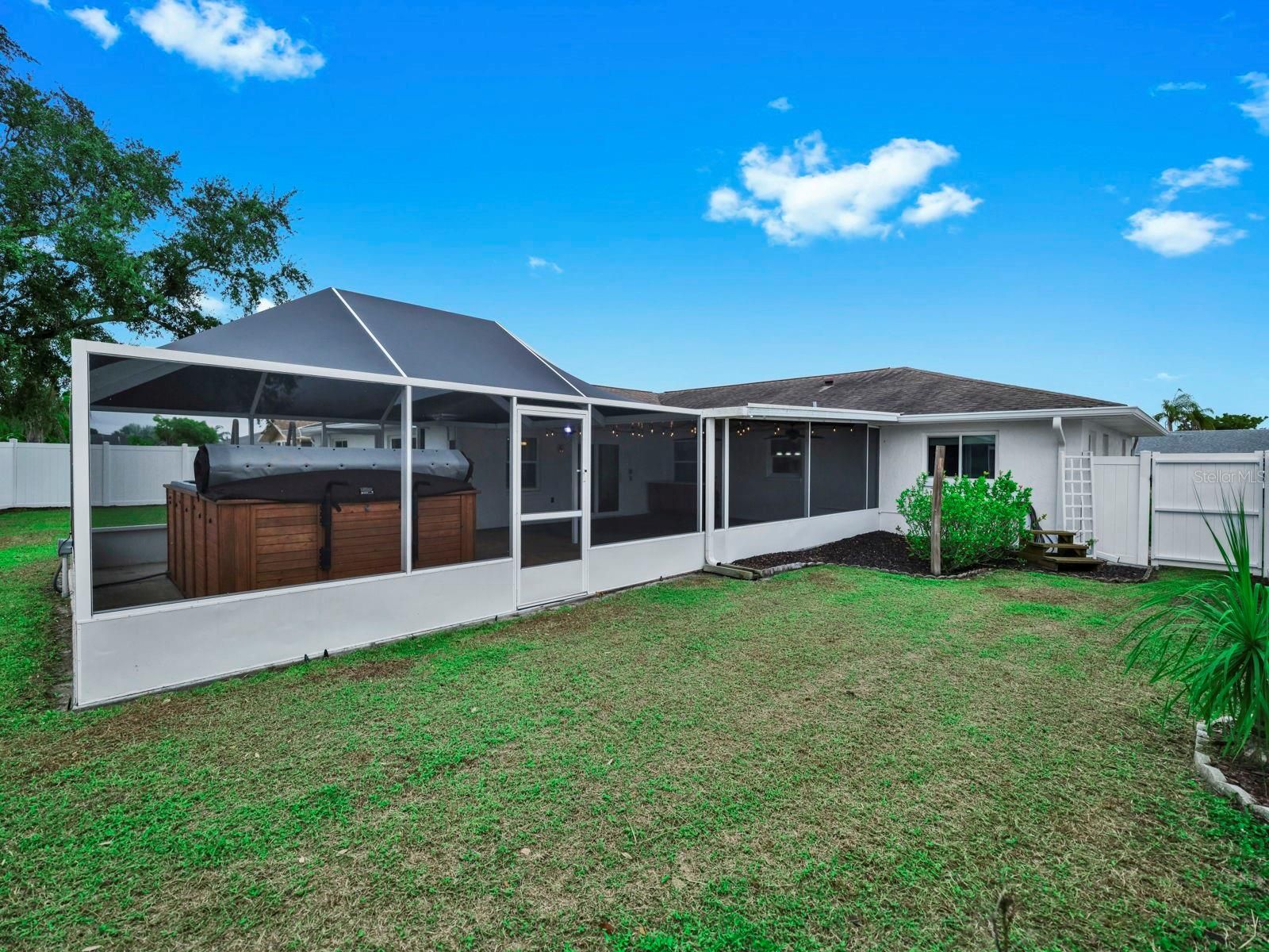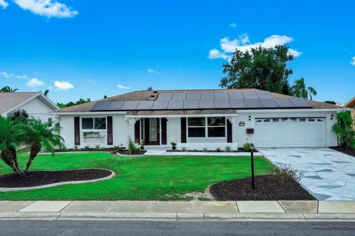 Move-in ready with owned solar (low bills), a private Swim Spa, and a golf-cart lifestyle in Sun City Center! This 3BR/3BA, 1,935 sq ft offers flexible living with a separate living room, a comfortable family room, and a formal dining area—ideal for hosting, hobbies, or quiet downtime. Recent upgrades include exterior paint (2024), granite kitchen counters (2022), LG French-door refrigerator, and a new LG dishwasher (2025). Thoughtful touches throughout: Lifeproof Luxury Vinyl in the main living areas, RO drinking water at the sink, double-pane/energy-efficient/high impact windows, new water heater (2023), programmable Kwikset locks, garage opener with battery backup & keypad, and 12 LED light bars for a bright, organized garage. The backyard shines with an expanded, screened lanai (high-speed outdoor fans) and a PVC-fenced yard featuring a heated Swim Spa with bar seating - perfect for daily fitness or a soothing soak—plus special roof screening to help reduce sun exposure and two convenient exits to the yard. No CDD, No HOA, and **leasing is allowed. Beyond the home, enjoy one of Florida’s most active 55+ communities with indoor & outdoor pools (including an indoor lap & walking pool), a modern fitness center, pickleball & tennis, shuffleboard & lawn bowling, softball, dog park, archery range, nature trails, woodworking & stained-glass studios, pottery & lapidary, the Rollins Theater, library, ballroom dance & line-dance clubs, and dozens of arts, games, music, travel, and veterans groups—truly something for every lifestyle. Cost-savers & quick facts: Owned-outright solar; energy-efficient windows; heated Swim Spa; block construction; shingle roof; pets OK.
