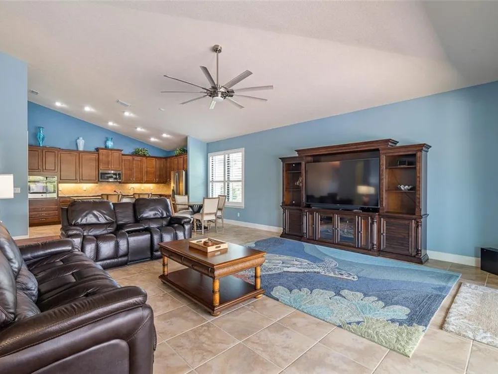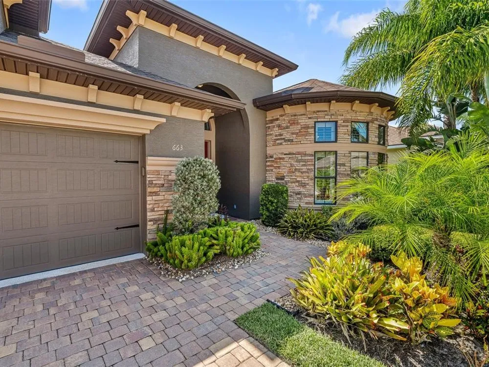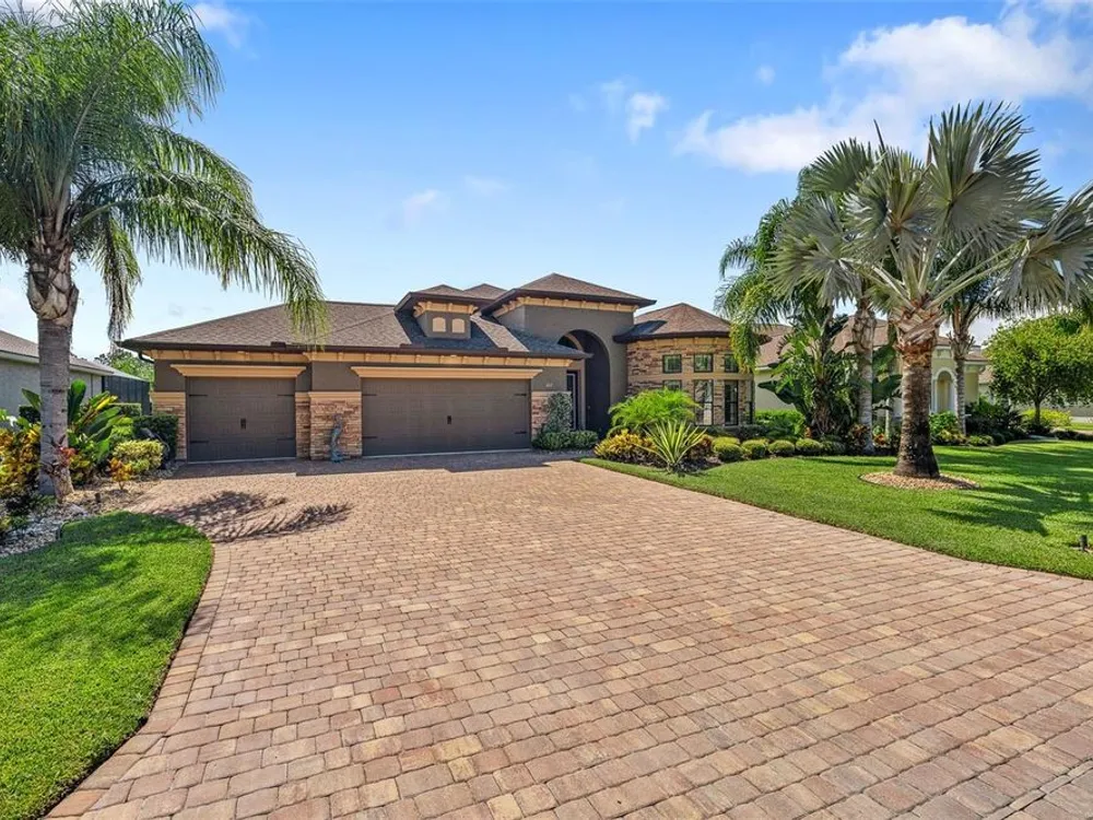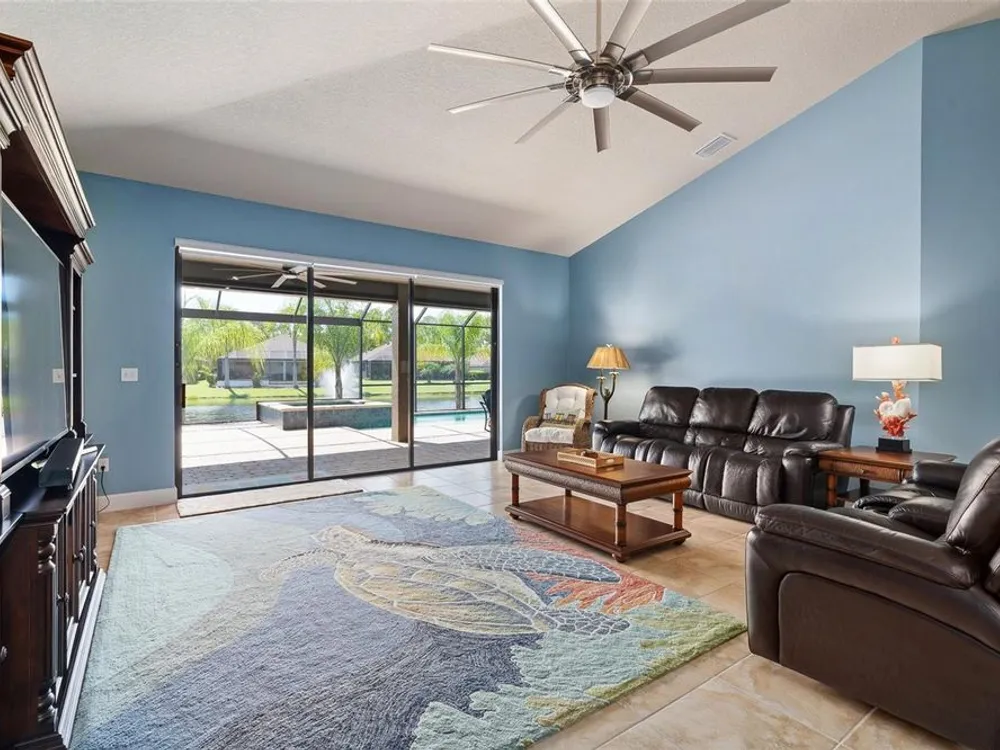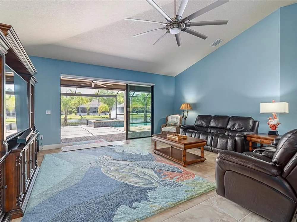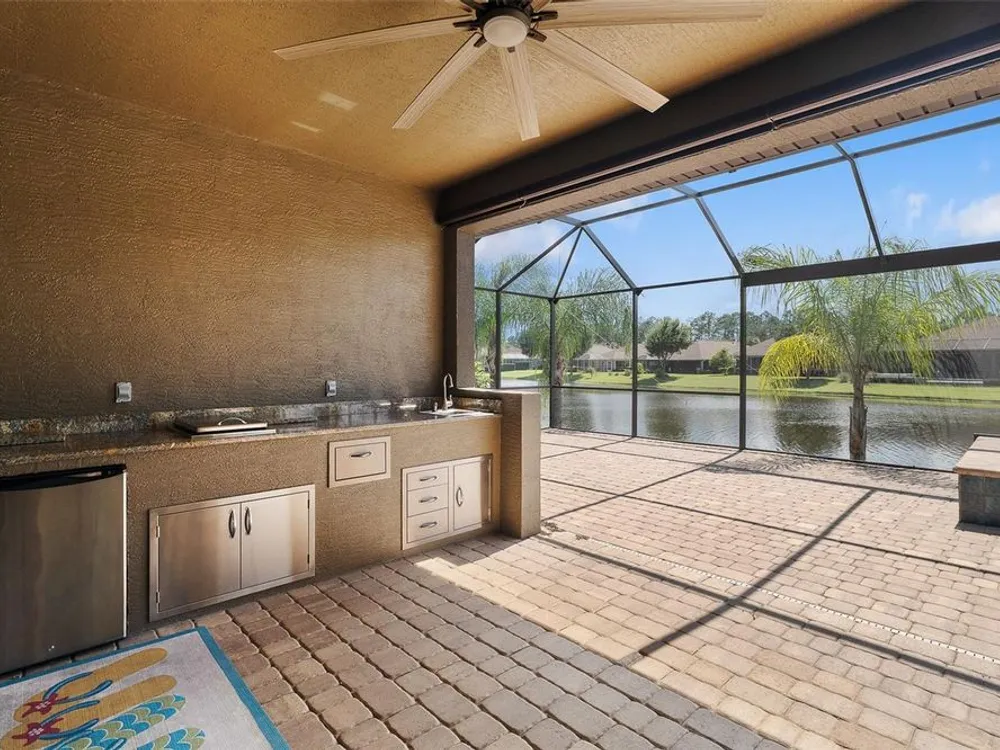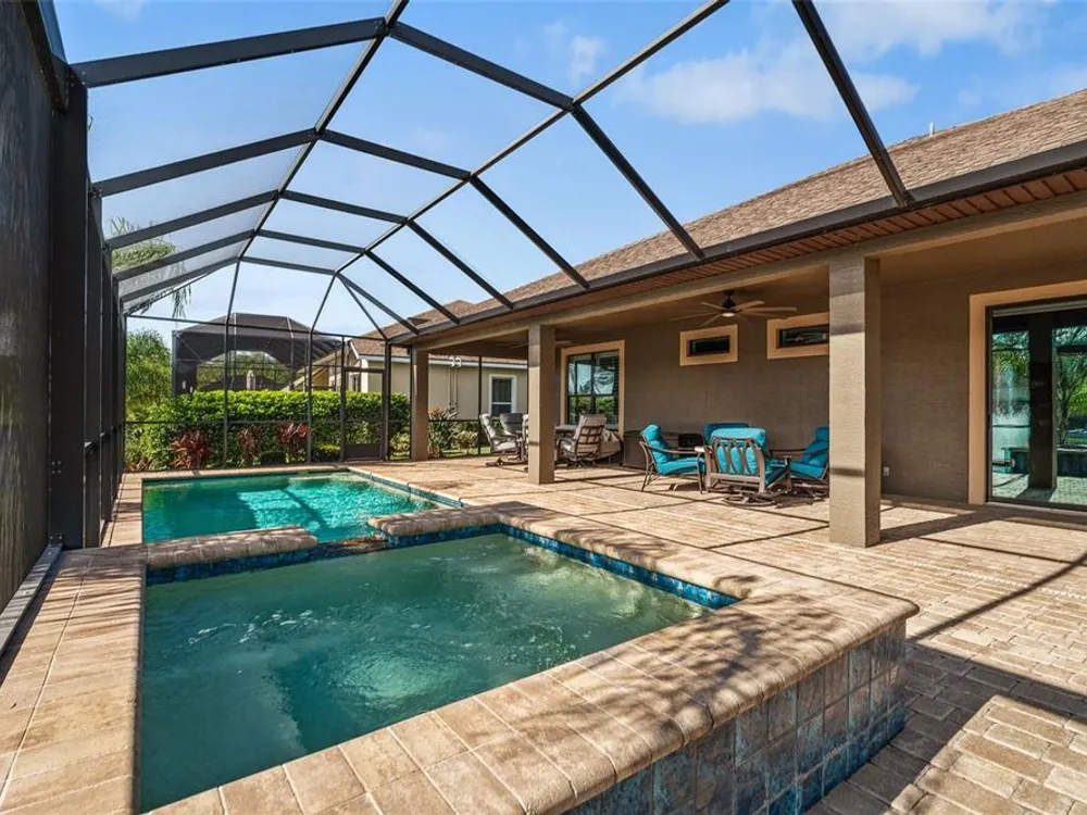 Welcome to this beautifully maintained executive POOL home in the prestigious Plantation Bay Golf & Country Club. From the moment you arrive, the pavers driveway and double glass door entry set the stage for a grand interior filled with light, elegance, and upgrades. Step inside to soaring ceilings with tray and crown details, leading into an open floor plan perfect for both everyday living and entertaining. The deluxe kitchen features built-in GE stainless steel appliances, granite countertops, 42-inch wood cabinetry, tile backsplash, reverse osmosis system, a spacious island, and a large walk-in pantry. Adjacent breakfast nook with plantation shutters and a formal dining room with vaulted ceilings provide ideal spaces for gatherings. The family room impresses with tile floors, high ceilings, and triple sliders with electric blinds that open seamlessly to the lanai capturing the perfect pool and lake views. . The primary suite is a true retreat with views of the pool and lake, grand in size, double walk-in closets, and a spa-like ensuite with dual sinks and a walk-in tile shower. Two additional bedrooms offer comfort for family or guests, each with plantation shutters, large in size, and generous storage. Bedroom 3 has a beautiful curved wall of bay windows overlooking your perfectly manicured front lawn. Outdoor Living at Its Best! The showstopper of this home is the screened lanai and pool oasis, overlooking the lake and lighted fountain for breathtaking views day and night. Enjoy the sparkling pool with ozone system and Jacuzzi with propane heater, or entertain in style with the outdoor kitchen featuring sink, fridge, ice chest, and granite countertops. Pavered decking and a mega-screen enclosure complete this resort-style retreat. Additional highlights include a 3-car extended garage with epoxy flooring, built-in shelving, hybrid hot water heater (2021), whole-house Kinetico water filtration system, surge protection, NEW AC (2024), and updated Minka lighting. Enjoy the unmatched lifestyle of Plantation Bay Golf & Country Club-golf cart friendly community, offering optional membership packages with 45 holes of championship golf, two clubhouses with dining-one being brand new 30 million clubhouse, wellness and spa center, fitness, 9 tennis courts, 10 pickleball courts, a resort-style pool and lap pool, cabana bar and grill, walking trails, and full activities calendar! Buyers of this home to receive a substantial discount on initiation fee at the club. Ask listing agent for details. This home is truly clean as a whistle, move-in ready, and perfectly designed to enjoy Florida living at its finest.