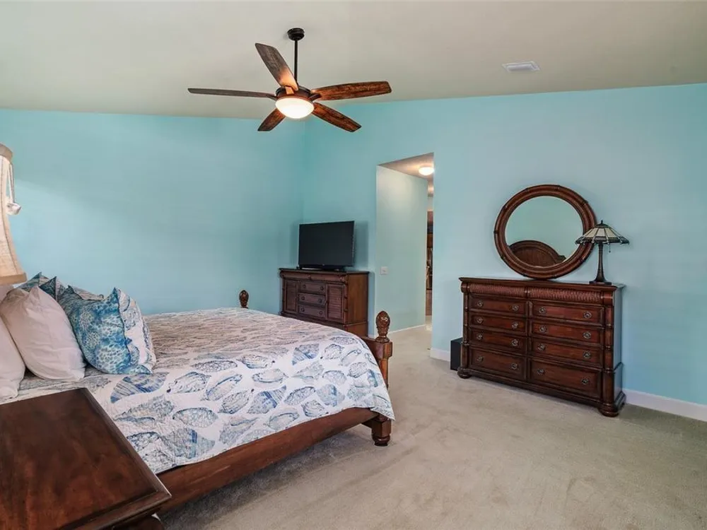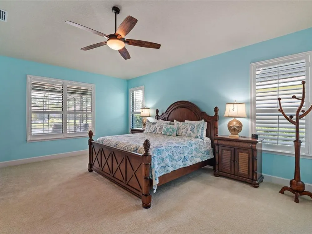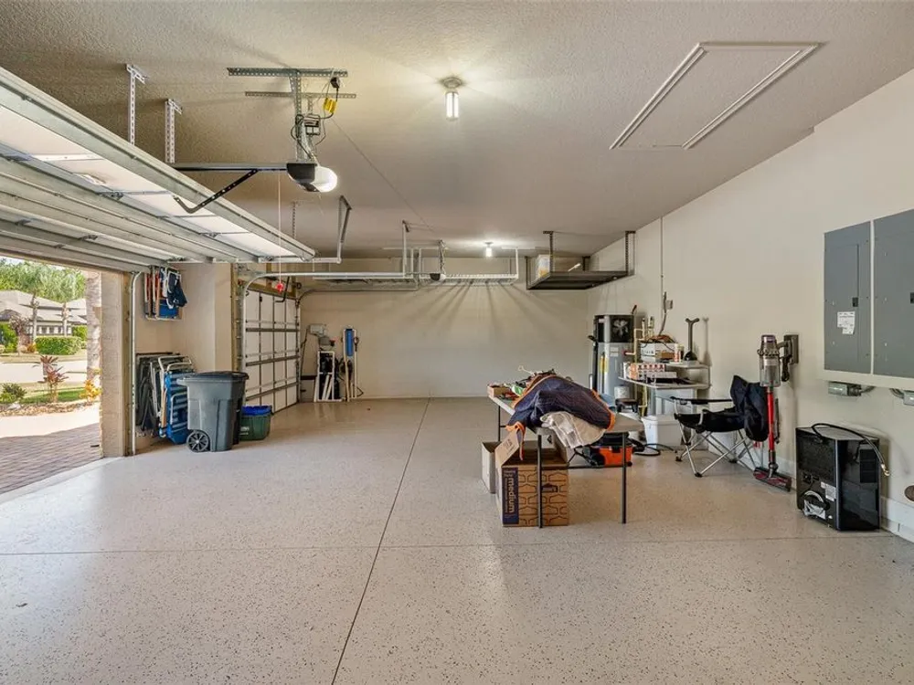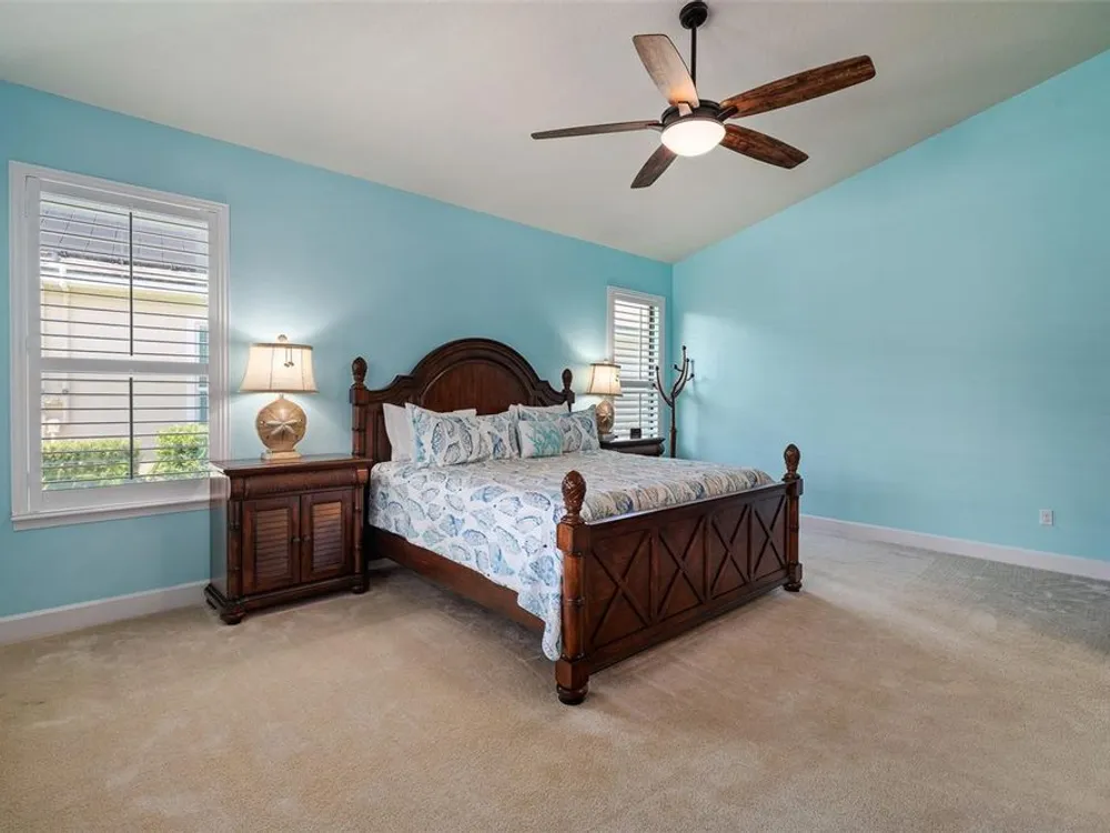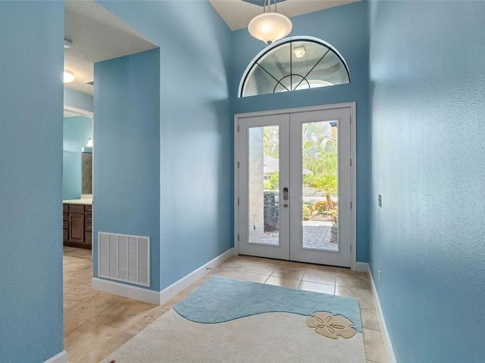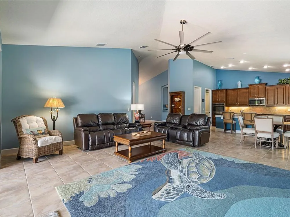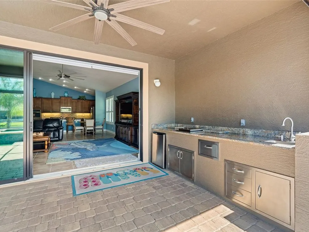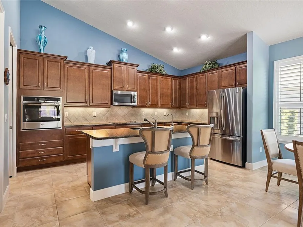 Welcome to this beautifully maintained executive POOL home in the prestigious Plantation Bay Golf & Country Club. From the moment you arrive, the pavers driveway and double glass door entry set the stage for a grand interior filled with light, elegance, and upgrades. Step inside to soaring ceilings with tray and crown details, leading into an open floor plan perfect for both everyday living and entertaining. The deluxe kitchen features built-in GE stainless steel appliances, granite countertops, 42-inch wood cabinetry, tile backsplash, reverse osmosis system, a spacious island, and a large walk-in pantry. Adjacent breakfast nook with plantation shutters and a formal dining room with vaulted ceilings provide ideal spaces for gatherings. The family room impresses with tile floors, high ceilings, and triple sliders with electric blinds that open seamlessly to the lanai capturing the perfect pool and lake views. . The primary suite is a true retreat with views of the pool and lake, grand in size, double walk-in closets, and a spa-like ensuite with dual sinks and a walk-in tile shower. Two additional bedrooms offer comfort for family or guests, each with plantation shutters, large in size, and generous storage. Bedroom 3 has a beautiful curved wall of bay windows overlooking your perfectly manicured front lawn. Outdoor Living at Its Best! The showstopper of this home is the screened lanai and pool oasis, overlooking the lake and lighted fountain for breathtaking views day and night. Enjoy the sparkling pool with ozone system and Jacuzzi with propane heater, or entertain in style with the outdoor kitchen featuring sink, fridge, ice chest, and granite countertops. Pavered decking and a mega-screen enclosure complete this resort-style retreat. Additional highlights include a 3-car extended garage with epoxy flooring, built-in shelving, hybrid hot water heater (2021), whole-house Kinetico water filtration system, surge protection, NEW AC (2024), and updated Minka lighting. Enjoy the unmatched lifestyle of Plantation Bay Golf & Country Club-golf cart friendly community, offering optional membership packages with 45 holes of championship golf, two clubhouses with dining-one being brand new 30 million clubhouse, wellness and spa center, fitness, 9 tennis courts, 10 pickleball courts, a resort-style pool and lap pool, cabana bar and grill, walking trails, and full activities calendar! Buyers of this home to receive a substantial discount on initiation fee at the club. Ask listing agent for details. This home is truly clean as a whistle, move-in ready, and perfectly designed to enjoy Florida living at its finest.