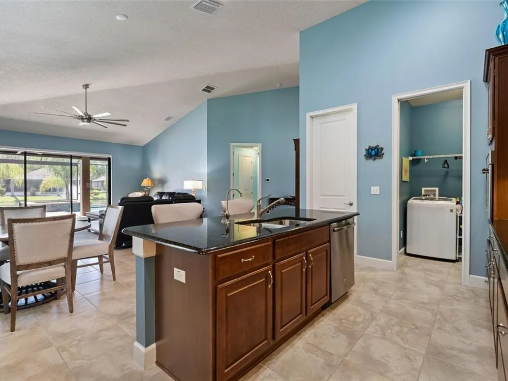 - Ceiling Fan(s), Eat-in Kitchen, High Ceilings, Kitchen/Family Room Combo, Open Floorplan, Solid Surface Counters, Solid-Wood Cabinets, Split Bedrooms, Stone Counters, Thermostat, Vaulted Ceiling(s), Walk-In Closet(s), Window Treatments
