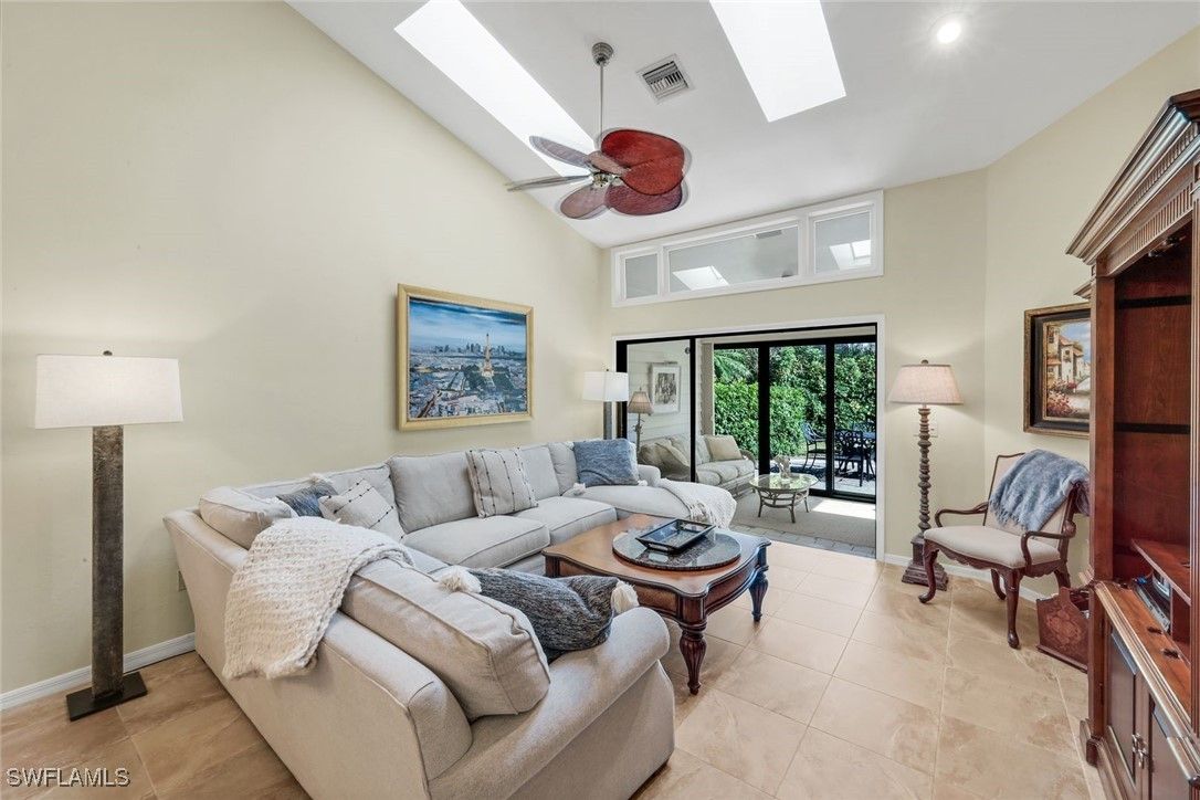 Discover the charm of The Villas of Pelican Bay—an intimate enclave of just 48 residences tucked along a picturesque paver-lined street. Mature trees, manicured landscaping, and a serene atmosphere create a true sense of retreat in one of Naples’ most desirable locations. Perfectly positioned adjacent to Club Pelican Bay and less than half a mile from the beach tram—approximately one mile from the Gulf of Mexico—this pet-friendly neighborhood welcomes two pets with no weight limit and offers its residents a private pool with expansive sun deck and a community room for gathering and relaxation. This sunny and spacious 3BR/2BA villa is ready for your personal touch. The open great room and dining area seamlessly flow into an all-weather den, creating flexible living spaces filled with natural light. The den opens to a large, private patio, ideal for entertaining, outdoor dining, and quiet enjoyment. Interior highlights include plantation shutters, tile flooring, and carpeted bedrooms. The generous primary suite features direct access to the glass-enclosed den, a large walk-in closet with custom shelving, and an additional storage area under the stairs. The primary bath offers a double vanity, oversized walk-in shower, and soaking tub. Two guest bedrooms are privately situated on the second floor with their own full bath, while a powder room serves the main level. Practical updates include replacement of all copper piping valves, a new electrical panel, and a new water heater. A gated, tropical courtyard entry enhances the home’s warm welcome. Residents of Pelican Bay enjoy unparalleled five-star amenities, including: Private beach access Two beachside pavilions with restaurants and bars Beach tram service Tennis, fitness facilities, and aquatic activities Community center, plus the only community in Naples offering golf and private on-site beach clubs with dining All of this is perfectly situated west of U.S. 41, moments from Waterside Shops, Mercato, Artis–Naples, and the Baker Museum—placing world-class shopping, dining, arts, and entertainment right at your fingertips.