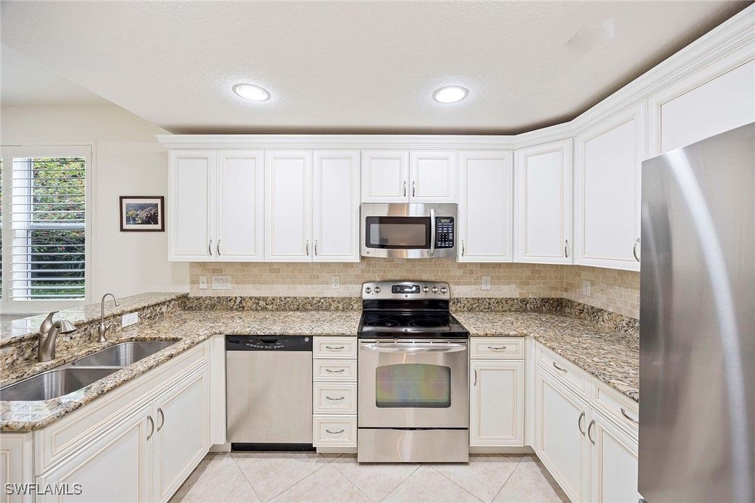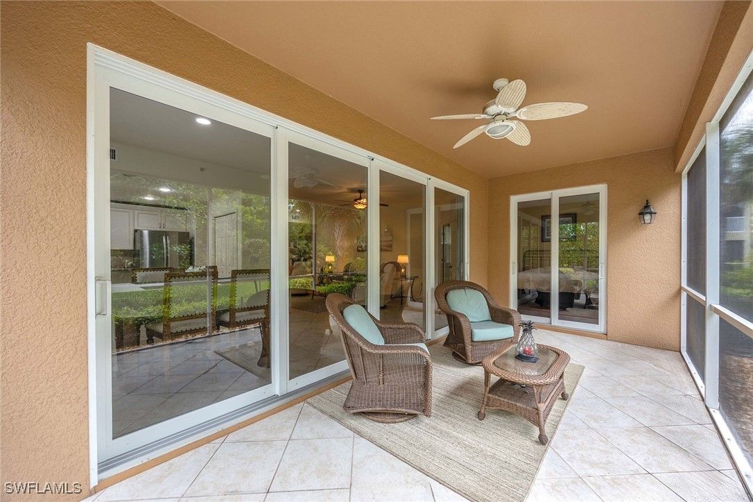 Welcome to this beautifully maintained first-floor carriage home in the prestigious gated community of Alden Woods at Lely Resort. Offering two spacious bedrooms, two baths, a den and a two-car garage, this residence effortlessly blends comfort, functionality and style, ideal for full-time living, a seasonal retreat or an investment opportunity with rental potential. Enter and discover an open, light-filled layout adorned with elegant wood and tile flooring that complements the home’s refined aesthetic. The chef-inspired kitchen is a standout, featuring stainless steel appliances, granite countertops and upgraded soft-close cabinetry. The extremely private lanai, where quiet peaceful views and the lush tropical landscaping of Alden Woods provide a backdrop for your morning coffee or evening glass of wine. The home is outfitted with a new energy-efficient HVAC system, enhanced by a UV light purification feature, as well as a premium whole-home Kinetico water filtration system for the ultimate in air and water quality. Just near your front door, indulge in the exclusive Alden Woods amenities—take a refreshing dip in the pool, unwind in the spa, work out in the fitness center or host gatherings in the community clubhouse. Enjoy immediate access to the renowned Players Club & Spa, where resort-style living comes to life. Enjoy the lagoon-style pools, poolside tiki bar, upscale fitness center, tennis courts, pickleball courts, bocce area, two dining venues, and a full-service spa and salon. For golf enthusiasts, three championship golf courses (two public, one private) are right at your doorstep. Just minutes from downtown Naples, Marco Island, world-class beaches, fine dining and shopping, this residence offers the ultimate in convenience and lifestyle.