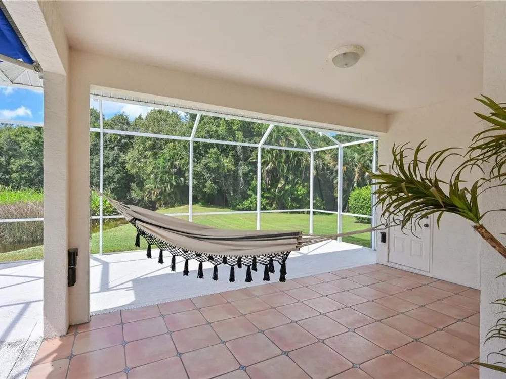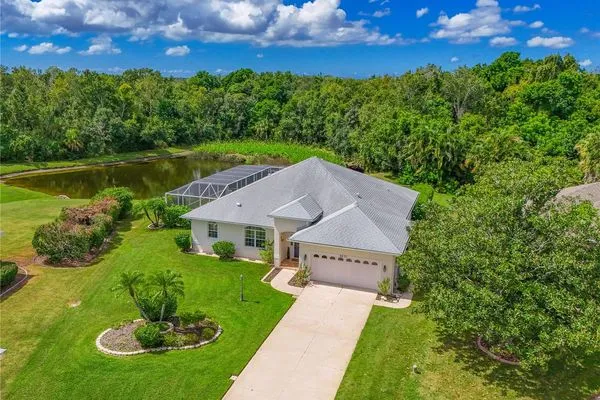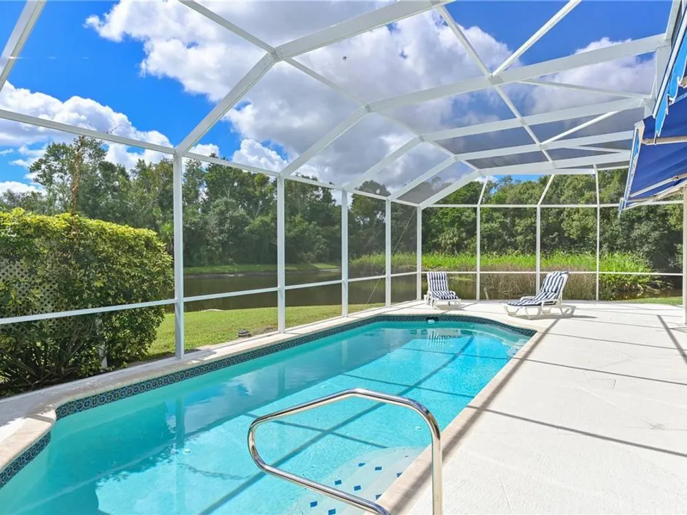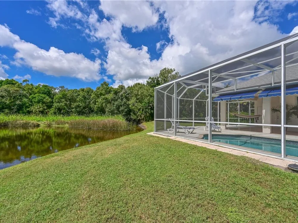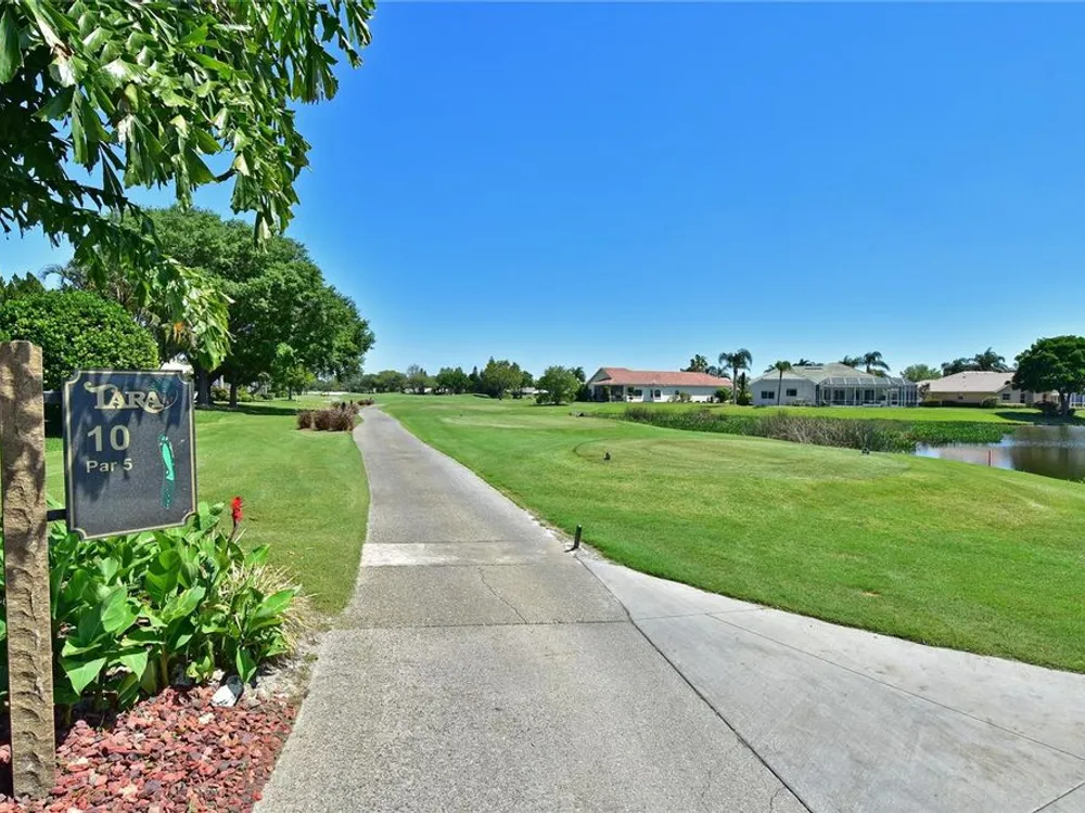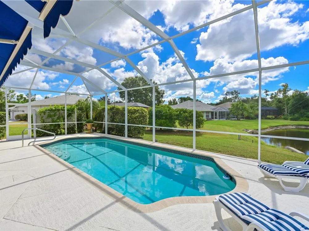 A home with character! Refreshed and ready for you to make it your own! This open floor plan gives you all the living space and entertaining opportunities for years to come. Oversized living and dining area, flow right together with triple sliders that bring the Florida sunshine in, all day long. Eat-in kitchen is bright and sunny with the front facing east, and the side windows have southern exposure. New refrigerator. Sliders go out to the massive lanai where you will spend endless days enjoying your pool and pond view. New pool cage 2025. Pool area has a half bath. Primary bedroom has sliders to the lanai, ensuite bath with soaking tub and shower, walk-in closet. Entry hall into the primary bedroom has extra closets for all your storage needs. Large guest bedroom with view of the private pond out back. Home office/den has French doors. All new fans throughout the house. Distinctive ceramic tile was imported from Spain and is showcased throughout the living area and outdoor lanai area. This home is located on a cut de sac. The original builder designed the house to have the most amount of natural sunlight by positioning the front to face East. The pool has sun on it all day long. Expansive pool decking wraps around the house with room for dining, lounging or that outdoor ping pong table. Private yard backs up to a beautiful wooded area and pond. Class A membership to Tara Golf and Country Club completes your full, active Florida lifestyle. 18 Hole Championship golf course was voted Number One by Peoples Choice 2025.Tennis, Bocce, Full Fitness Center, Community Pool and Spa, Brand New Pickle Ball Facility with 5 lit courts, and fabulous clubhouse (that will be completely renovated in 2025-2026.)Will be open for service during the renovation for dining, social events, and our popular bar in the grill room. This golf community is the best bang for the buck in the Bradenton area, and will give you the friendly community you want to live in. Welcome to Taradise!