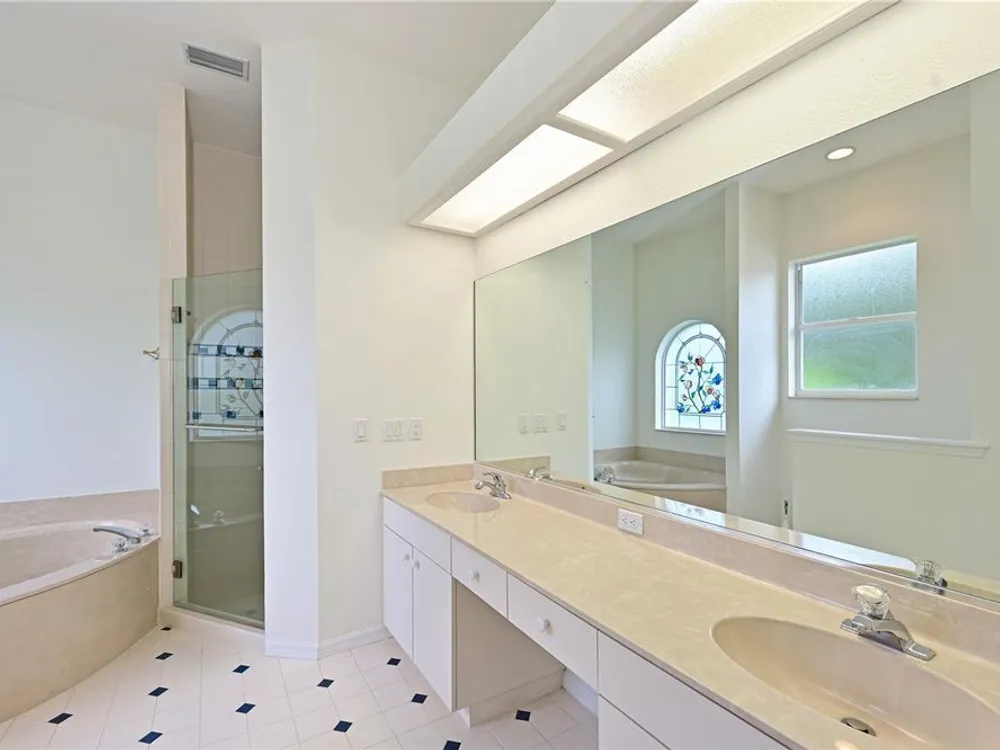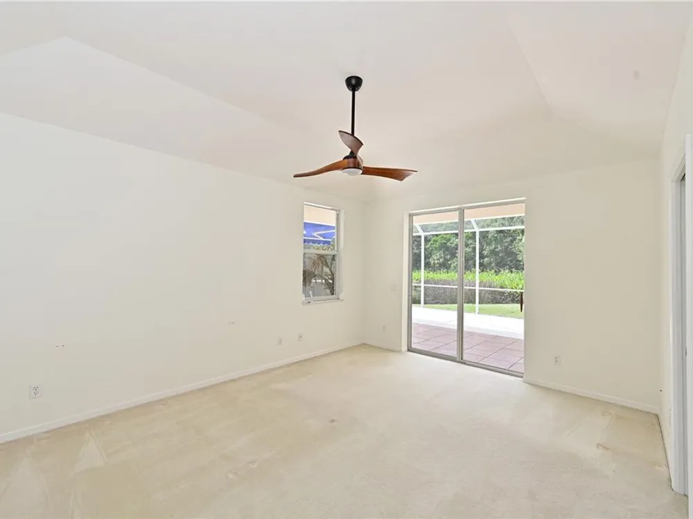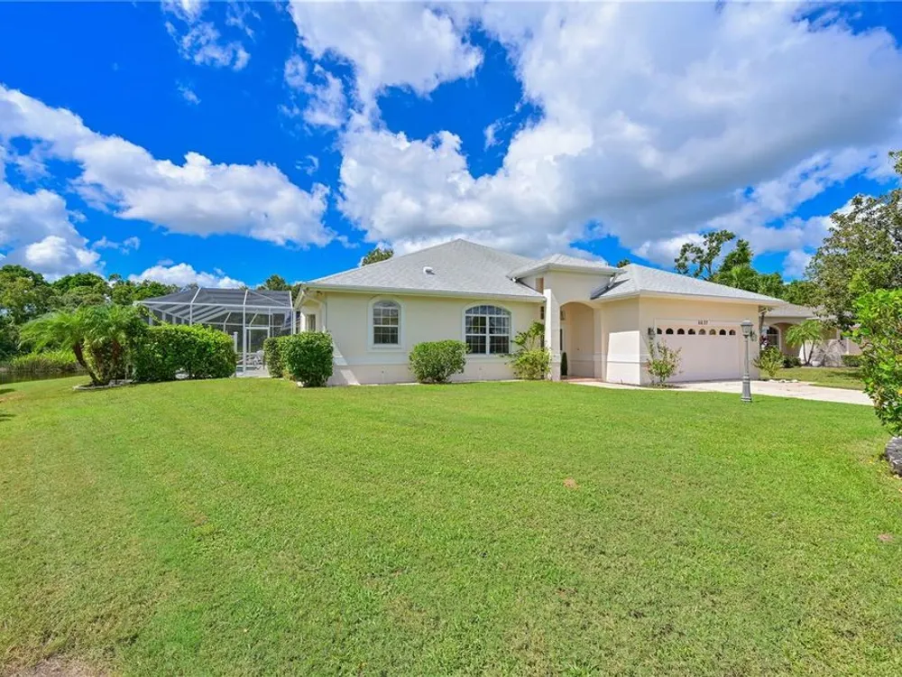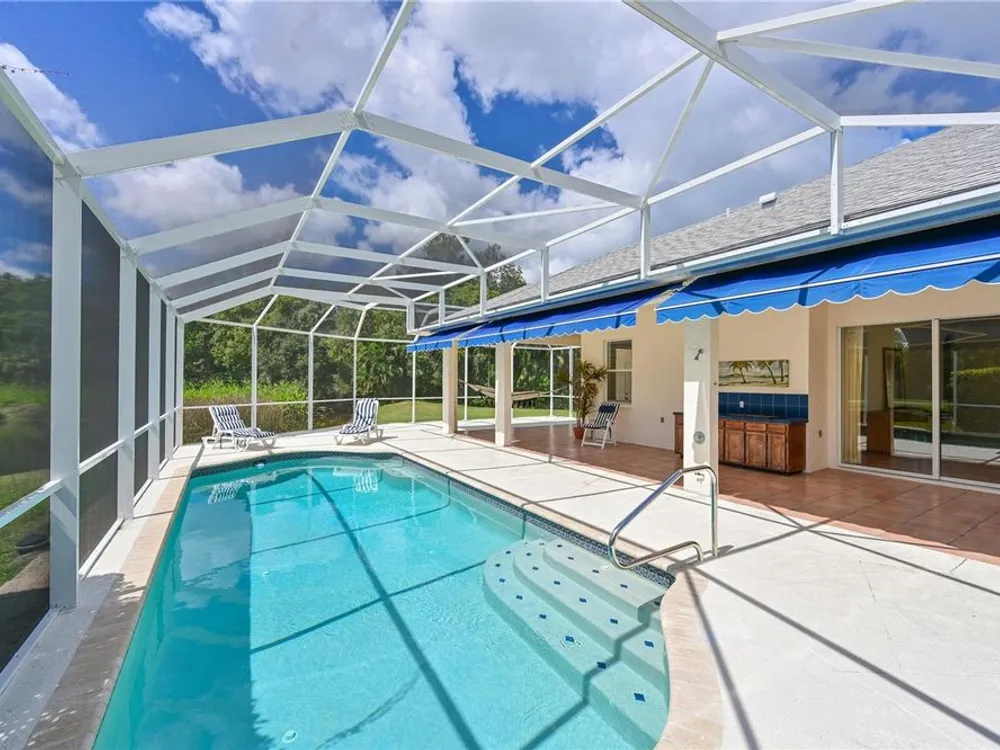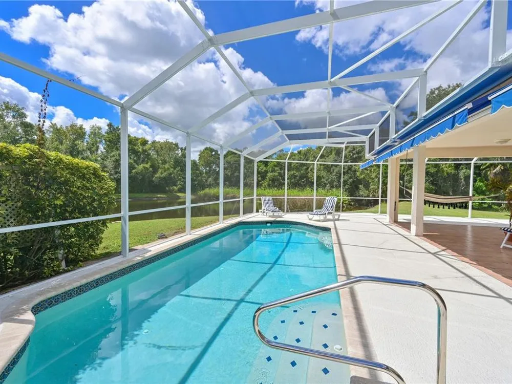 A home with character! Refreshed and ready for you to make it your own! This open floor plan gives you all the living space and entertaining opportunities for years to come. Oversized living and dining area, flow right together with triple sliders that bring the Florida sunshine in, all day long. Eat-in kitchen is bright and sunny with the front facing east, and the side windows have southern exposure. New refrigerator. Sliders go out to the massive lanai where you will spend endless days enjoying your pool and pond view. New pool cage 2025. Pool area has a half bath. Primary bedroom has sliders to the lanai, ensuite bath with soaking tub and shower, walk-in closet. Entry hall into the primary bedroom has extra closets for all your storage needs. Large guest bedroom with view of the private pond out back. Home office/den has French doors. All new fans throughout the house. Distinctive ceramic tile was imported from Spain and is showcased throughout the living area and outdoor lanai area. This home is located on a cut de sac. The original builder designed the house to have the most amount of natural sunlight by positioning the front to face East. The pool has sun on it all day long. Expansive pool decking wraps around the house with room for dining, lounging or that outdoor ping pong table. Private yard backs up to a beautiful wooded area and pond. Class A membership to Tara Golf and Country Club completes your full, active Florida lifestyle. 18 Hole Championship golf course was voted Number One by Peoples Choice 2025.Tennis, Bocce, Full Fitness Center, Community Pool and Spa, Brand New Pickle Ball Facility with 5 lit courts, and fabulous clubhouse (that will be completely renovated in 2025-2026.)Will be open for service during the renovation for dining, social events, and our popular bar in the grill room. This golf community is the best bang for the buck in the Bradenton area, and will give you the friendly community you want to live in. Welcome to Taradise!