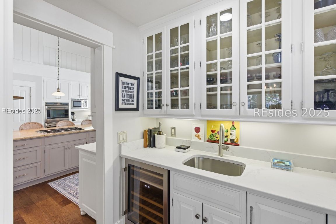 Chateau inspired home with artist designed gardens and pool in the Golf Club offers beautiful living inside and out. Charming exterior architectural details give way to well-planned interiors. Entertaining rooms face the pool and gardens through floor to ceiling windows, charming beverage bar joins the kitchen and dining areas, while bedroom suites enjoy privacy. Gorgeous outdoor kitchen borders the pool deck, and glass sunroom leads to screened in porch, allowing for enjoyment of the outdoors all four seasons. Covered walk connects to the owner's entry through efficient pocket office, A separate suite for guests is tucked above the garage. The Golf Club at Indigo Run features additional gated entry, golf membership is optional.