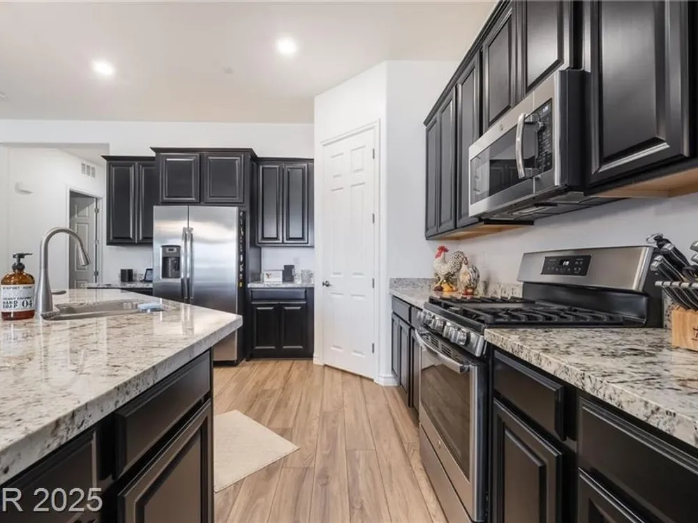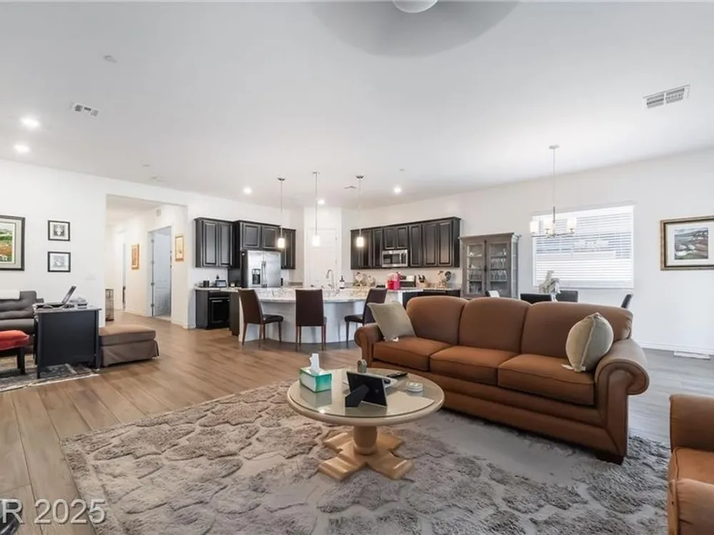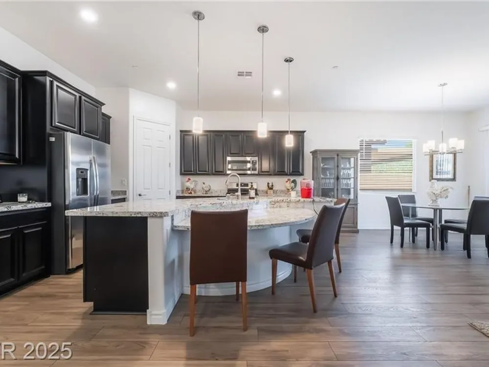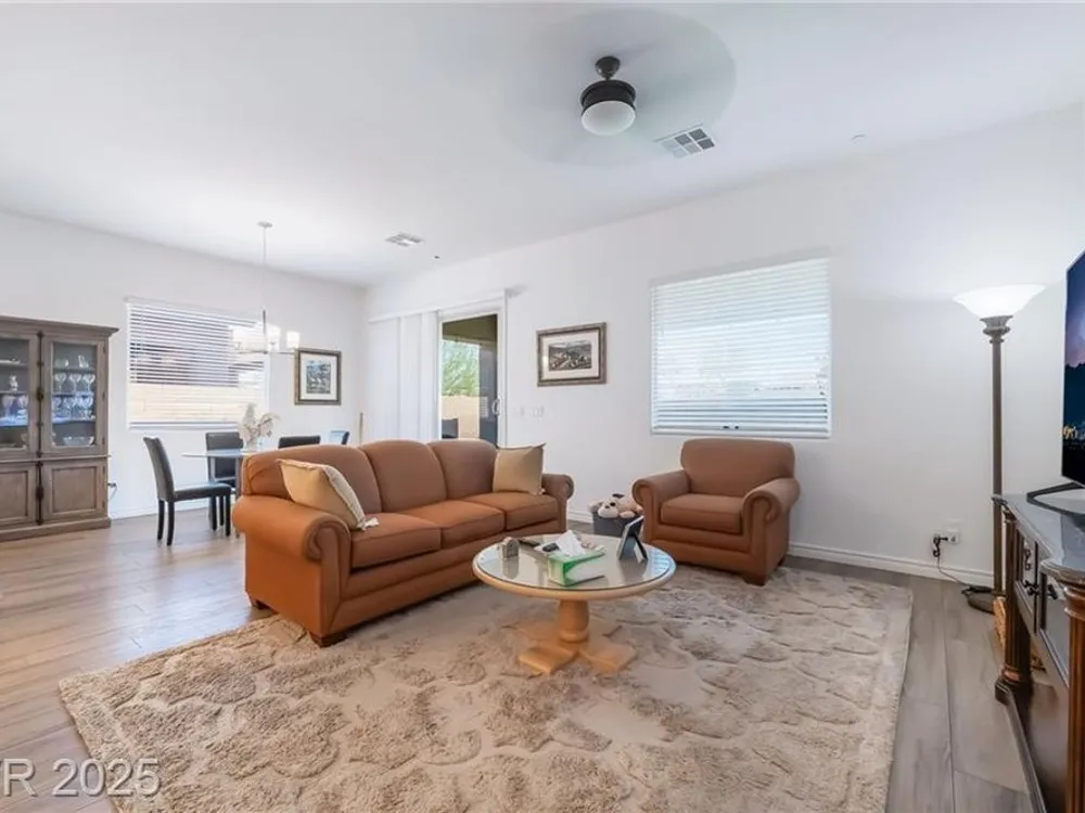 Live your best life in Heritage @ Cadence, a premier 55+ guard-gated community in the 89011 zip code! Enjoy a resort-style clubhouse w/ year-round indoor/outdoor pools, fitness center, movement room, poker club, horseshoes, bocce ball & pickleball courts! This 2019 single-story beauty offers 3 beds, 2 baths & an oversized 2-car garage. Inside, find custom flooring, fresh designer paint & an open-concept family room flowing into a chef’s dream kitchen! Granite counters, stainless appliances, 42" espresso cabinets, walk-in pantry & a huge island makes it perfect for entertaining. The spacious primary suite features a spa-like shower & massive walk-in closet. Relax in your private, low-maintenance backyard w/ covered patio, ideal for unwinding after a sunny Vegas afternoon. Block walls add privacy, & the desert setting brings peace & charm. Minutes from shopping, dining, airport, Lake Mead & all that Henderson/Las Vegas offers! Seller is open to discuss all Buyer/Broker questions! ;))