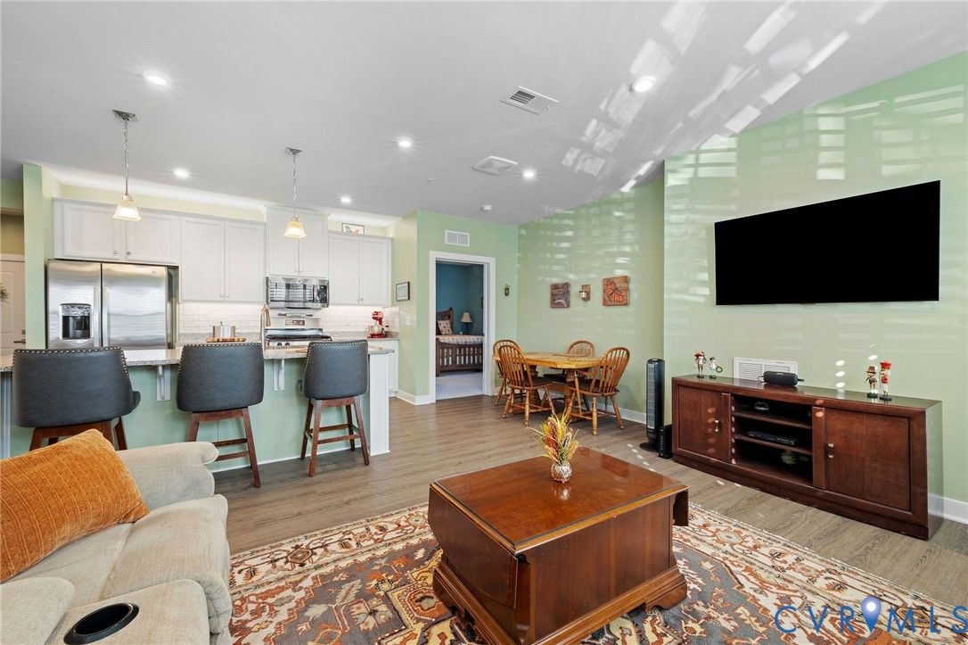 Step right in to this first floor, condo in the 55+ community of Greenwich Walk! This stunning ‘Cobalt’ model offers 2 beds/2 baths with plenty of added upgrades, as well as a unique separate entrance via the side porch! This unit offers modern convenience with maintenance-free living—all just steps from the many amenities of Cosby Village! You’re sure to fall in love with the chef’s kitchen, featuring sleek granite countertops, subway tile backsplash, under-cabinet lighting, stainless steel appliance package, spacious pantry, and a large kitchen island! The main living area, kitchen, and dining areas boast luxury vinyl plank flooring and offer a unique layout with plenty of versatility. This unit has had plantation shutters installed in every room of the house, adding a beautiful touch as well as added privacy to the home! Off of the living room, you’ll find your unique private side-entrance, adding convenience and easy accessibility in and out of the unit! The primary bedroom of this home comes complete with a massive walk in closet, plush carpeted floors, and a beautiful en-suite bath complete with a glass enclosed, walk in shower, double vanity, and additional linen closet. Additional second bedroom offers carpeted floors, plantation shutters, and ample storage making it the perfect guest bedroom or home-office. Greenwich Walk @ Foxcreek offers its own private clubhouse, pickleball courts, fitness center, pool, walking paths and a tranquil pond. With dozens of social clubs and regular community happy hours, there’s always something to do—and great neighbors to do it with! Don’t miss your chance to experience the ultimate in carefree living. Schedule your private showing today!