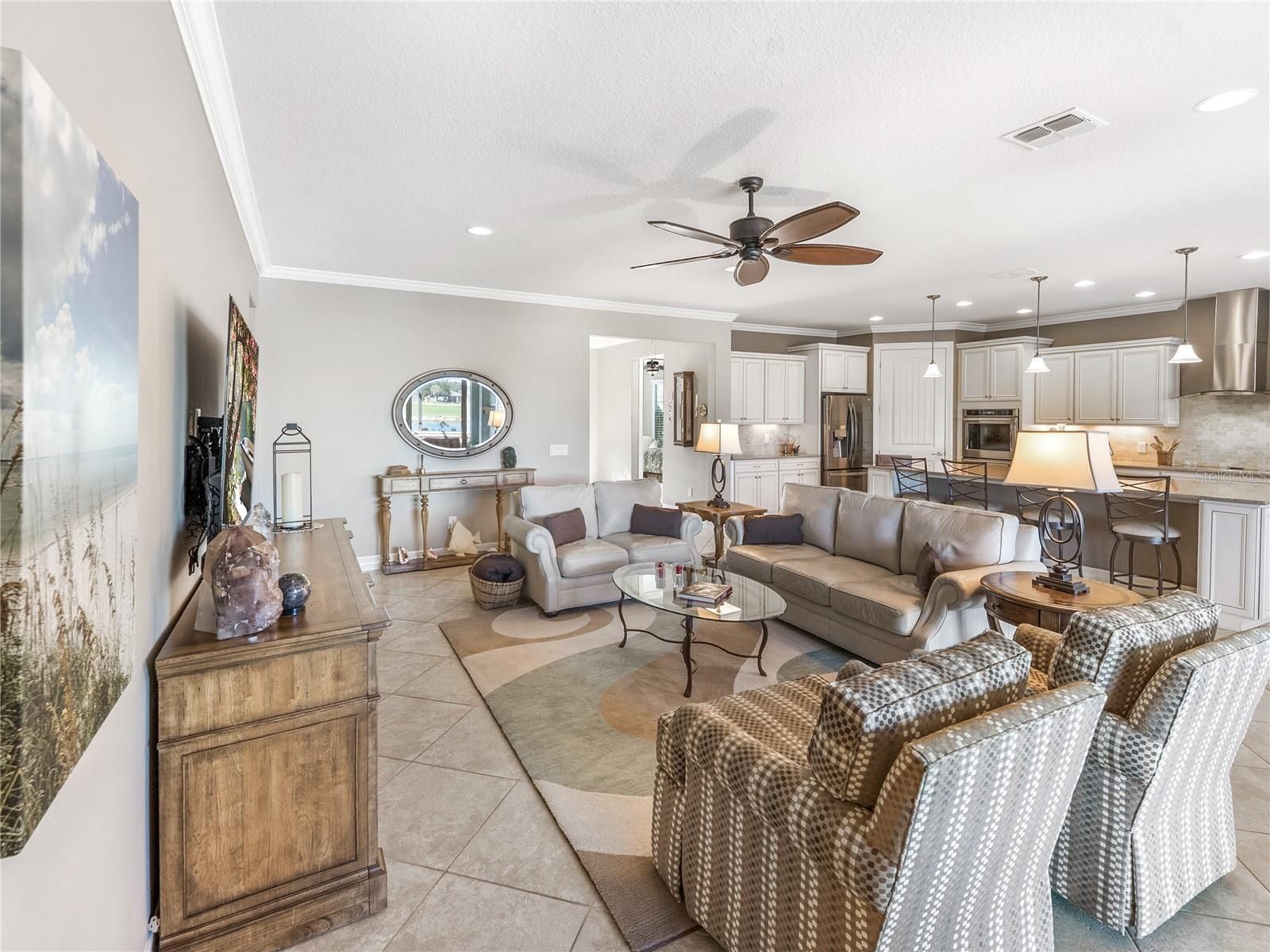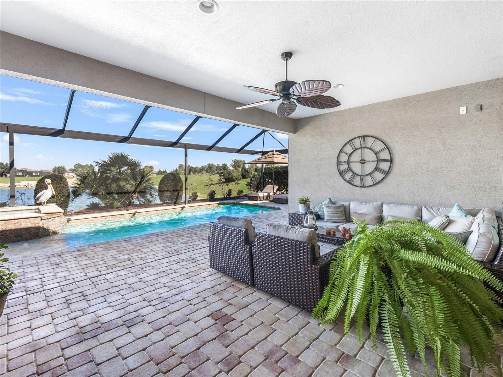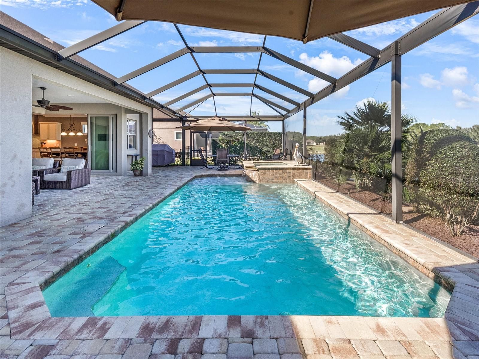 Stunning 4 Bedroom, 4 Bathroom Pinnacle Model with Loft, Pool, and Lake/Golf Course Views in Del Webb Stone Creek Located in the highly sought-after Del Webb Stone Creek, this exceptional Pinnacle model offers top-tier upgrades, thoughtful design, and breathtaking lake and golf course views. Featuring 4 bedrooms, 4 bathrooms, a flex room, and a 3-car garage with a 4-foot extension, this home delivers both luxury and functionality. Step inside to find elegant tile laid on the diagonal, rounded interior wall corners, and crown molding throughout, creating an inviting and upscale atmosphere. The gourmet kitchen is a chef’s dream, complete with luxury cabinetry with crown molding, soft-close doors and drawers, quartz countertops, stainless steel appliances, double ovens, under-cabinet lighting, and a motion-sense faucet. Expansive zero-corner sliders open fully, seamlessly blending the interior with the spectacular outdoor oasis. The main level includes a beautifully appointed primary suite featuring a walk-in tiled shower, with all additional bathrooms also offering fully tiled showers. Upstairs, you’ll find a private guest retreat with a loft, bedroom, and full bathroom, along with an impressive custom craft room equipped with built-in cabinetry for exceptional storage and organization. Outside, enjoy Florida living at its finest in your saltwater pool and spa, surrounded by a paver patio, sunshades, and a screened birdcage enclosure—all overlooking serene lake and golf course views. The screened front entry, paver driveway, and custom landscaping add exceptional curb appeal. The 3-car garage is equally impressive, featuring epoxied floors, a screen garage door, wall-mounted storage systems, extra cabinetry, a utility sink, and 50-amp RV electric service. A water conditioner and fully paid-off solar panels offer added comfort and impressive energy efficiency. Additional highlights include zero-corner sliders leading directly to the pool area, an upstairs custom craft room with full cabinetry, a laundry room with abundant storage and a utility sink, and fully paid-off solar panels for long-term savings. As part of Del Webb Stone Creek, residents enjoy world-class amenities including a state-of-the-art fitness center, indoor and outdoor pools, spa, tennis and pickleball courts, a softball field, scenic walking and biking trails, billiards, a dog park, and a full calendar of clubs and social activities. The community also features the Stone Creek Golf Club, offering challenging play and stunning scenery. This home truly has it all—luxury, functionality, resort-style living, and a premier location with incredible views. Don’t miss the opportunity to own one of the community’s finest homes. Schedule your private showing today!