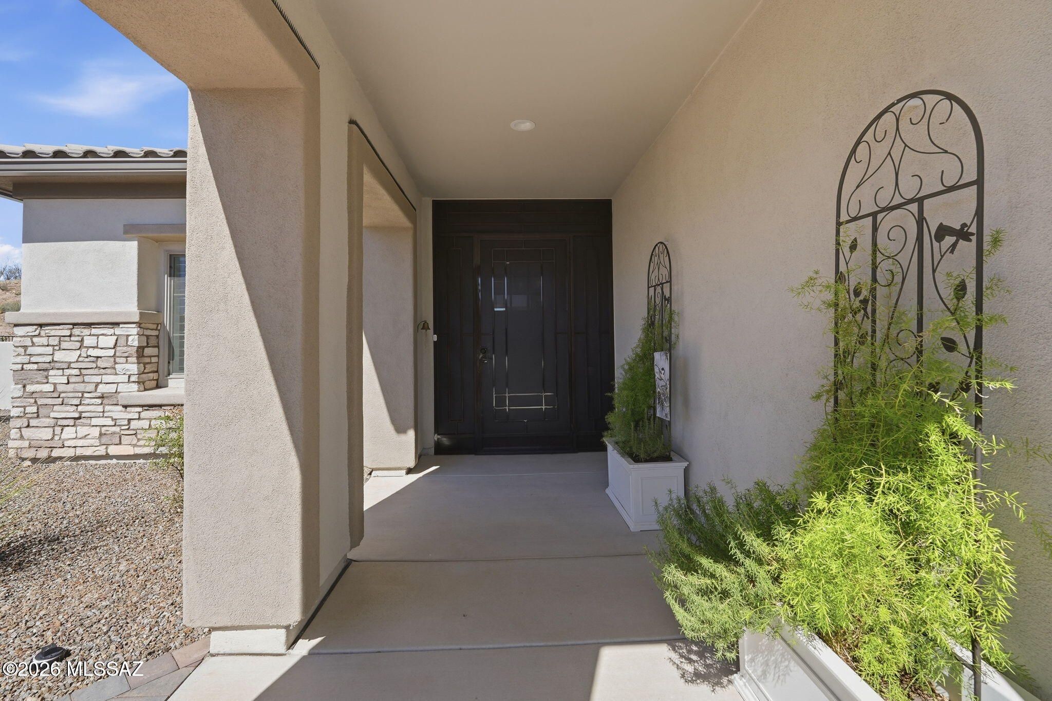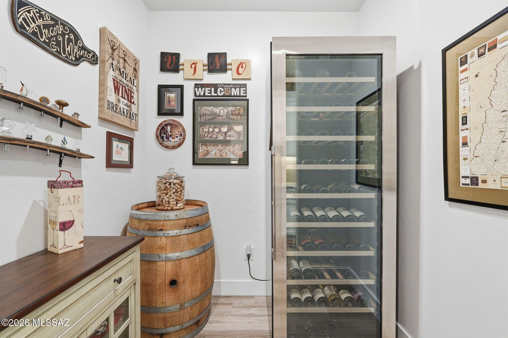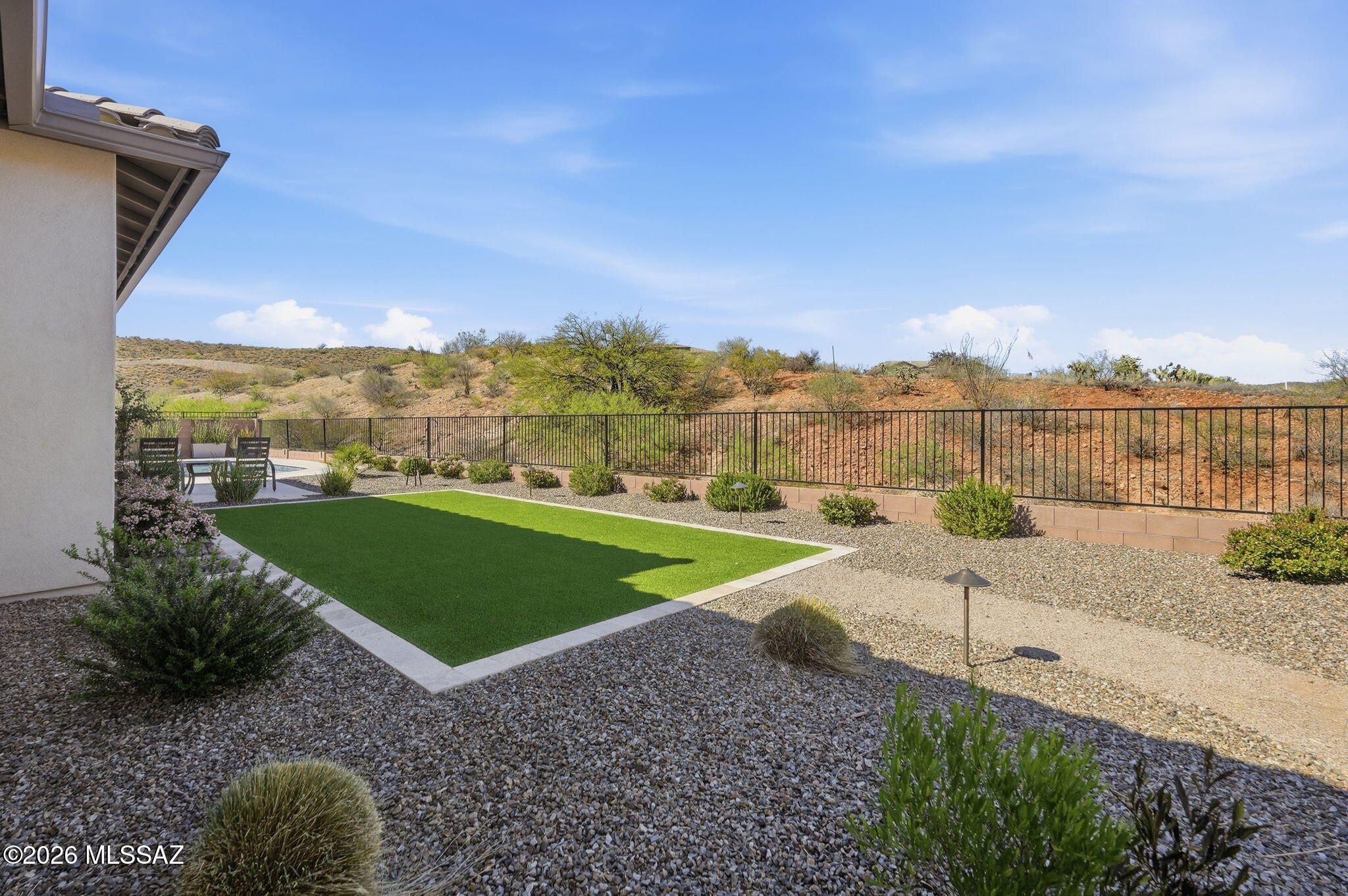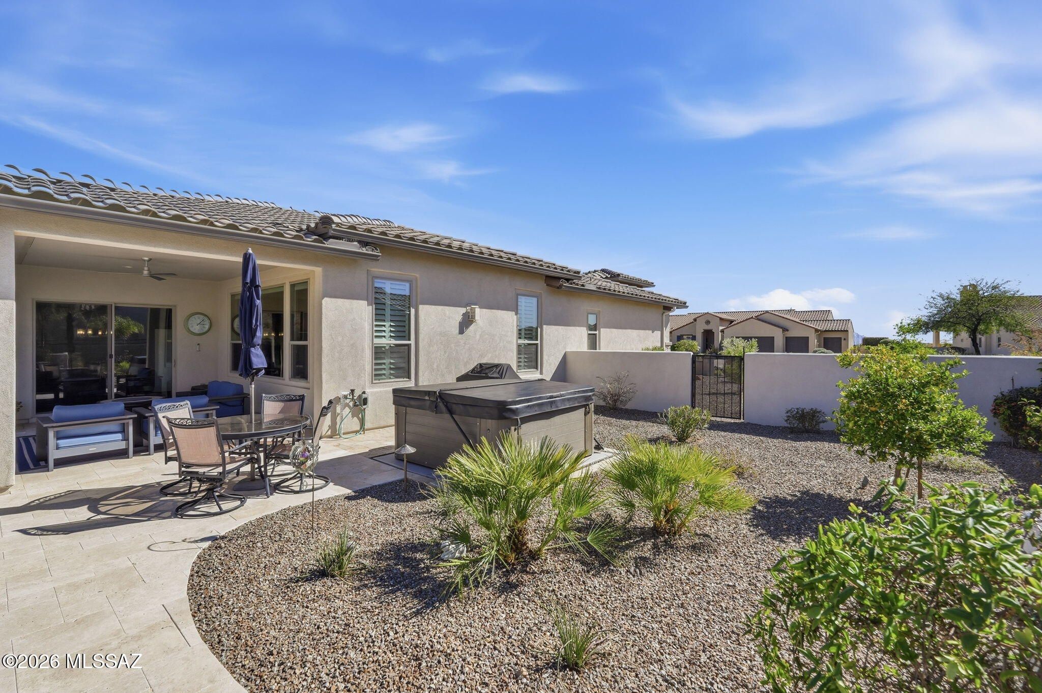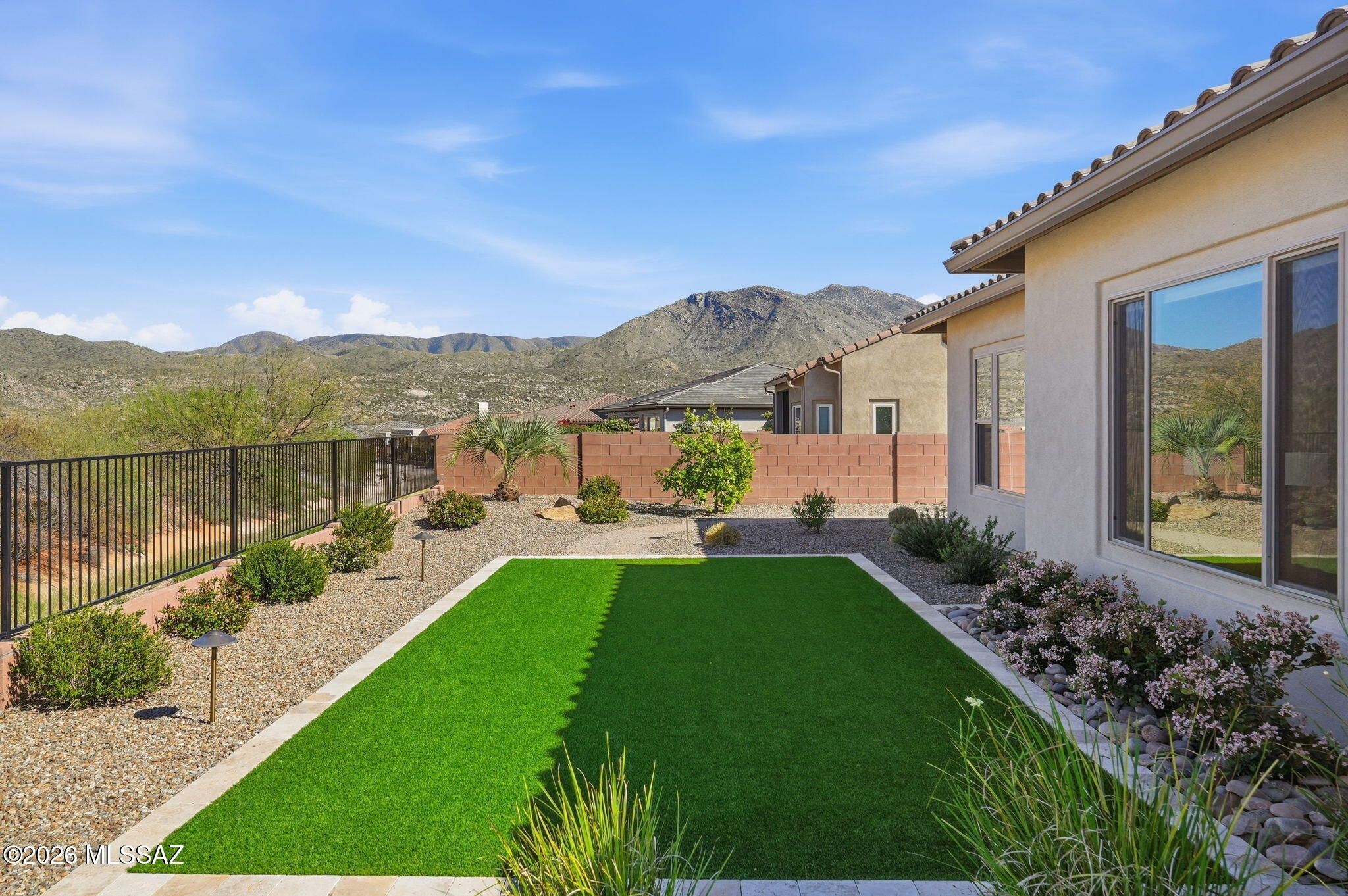 Beautifully appointed and landscaped 2022 home in The Preserve at SaddleBrooke featuring large 1/4 acre lot. Avalon floor plan with gas fireplace in the great room - light and bright living, dining, and kitchen spaces leading out to pool, desert and mountains out back. The backyard is an oasis with a saltwater pool - baja ledge and in-floor cleaning; hot tub, travertine paver patio, and artificial turf. Gourmet kitchen offers a large island, honed marble counters, Wolf, Sub-Zero, and Miele appliances, wine room, butler and walk-in pantries. Large den with plenty of space for relaxing, TV viewing, and desk area. Primary suite boasts a zero-grade shower and large walk-in closet. Guest room with ensuite bath and walk-in closet. Garage has utility sink, epoxy, and smart access door.