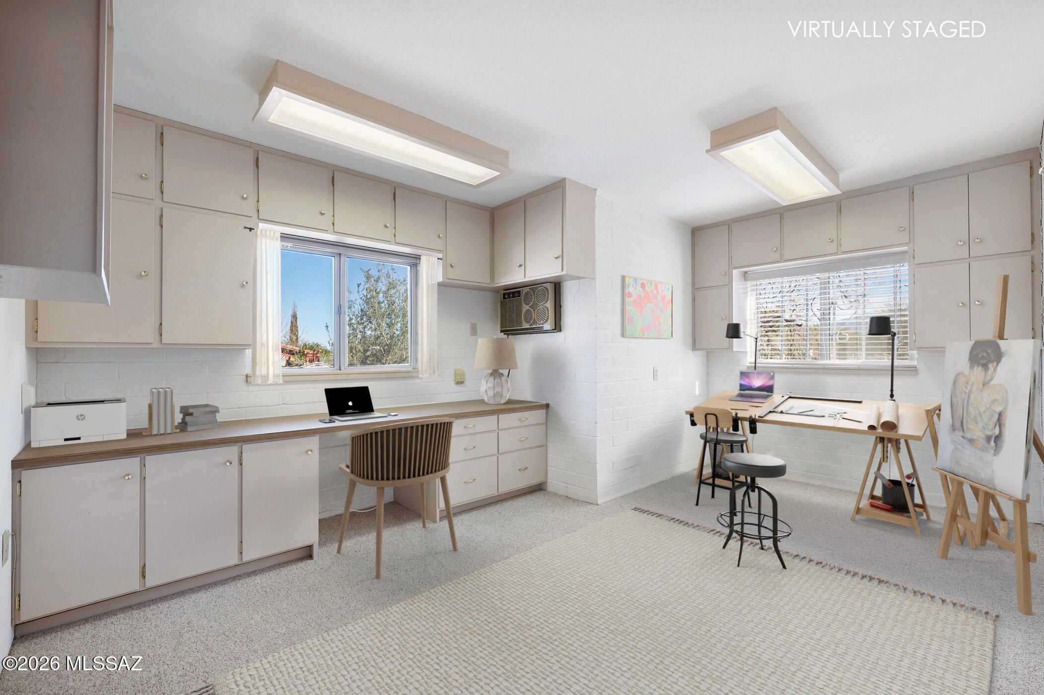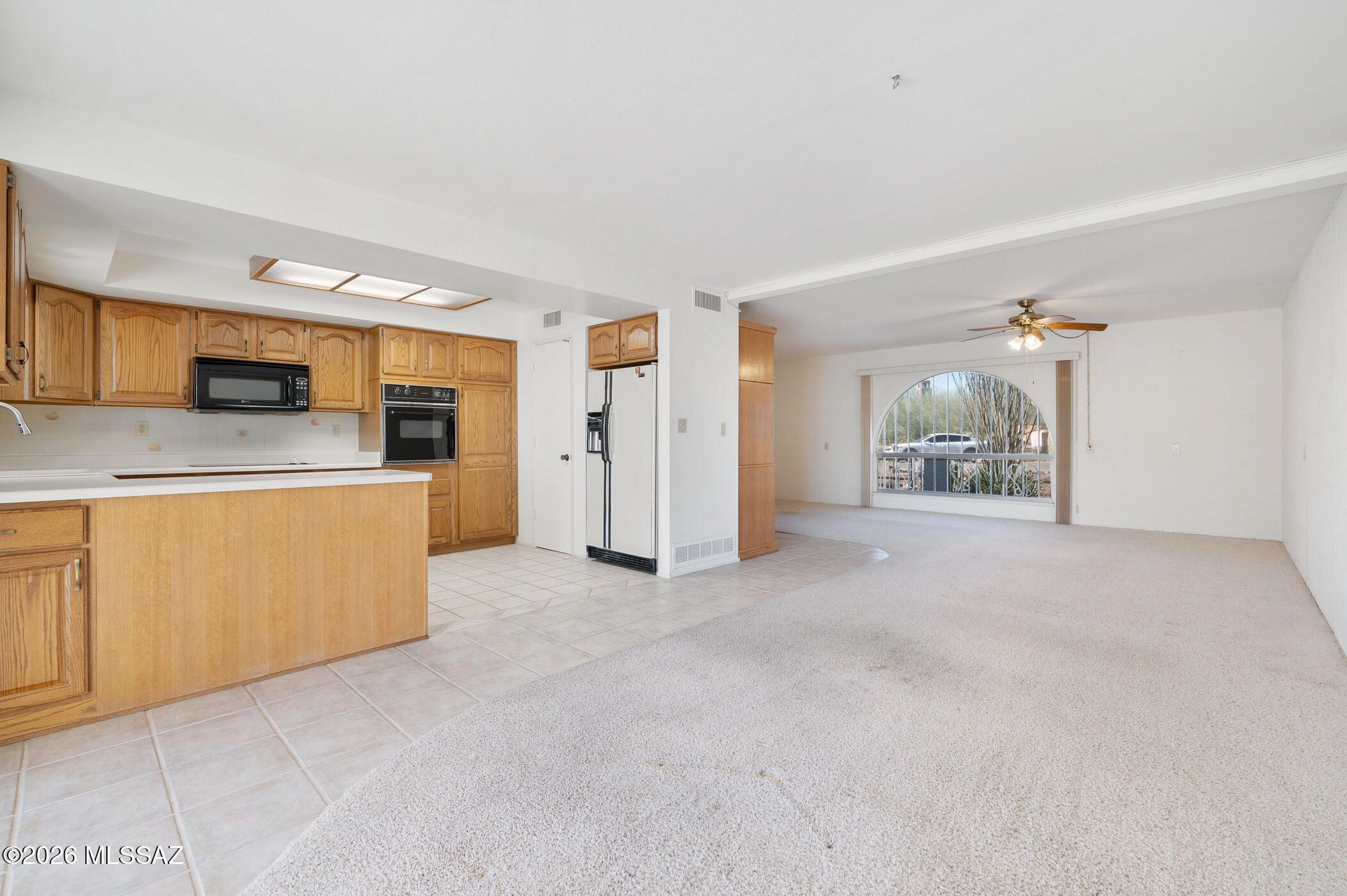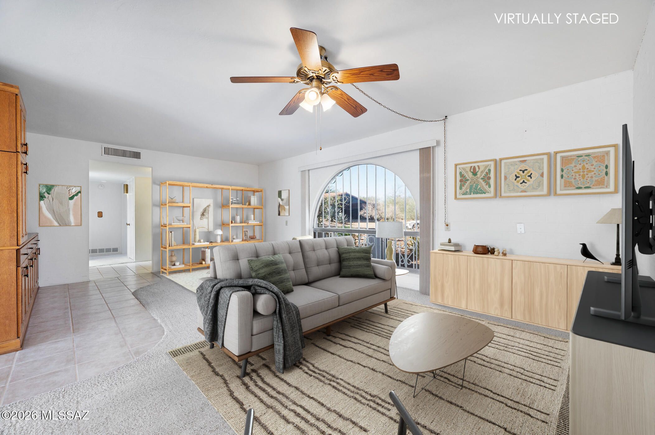 Embrace the warmth of the Southwest in this charming territorial-style home, surrounded by natural desert landscaping that includes a stately Saguaro cactus, mature Ocotillo, and vibrant Prickly Pear. The inviting curb appeal sets the tone for the thoughtful design found throughout. Enter into a spacious living and dining area enhanced by custom built-in shelving--perfect for displaying decor or creating your ideal media and entertainment setup. Just off the kitchen, a cozy dining nook offers an intimate space for meals while providing easy access to the outdoor patio. Home cooks will appreciate the well-appointed kitchen, featuring an easy-clean cooktop, abundant cabinetry, a generous pantry, and extended countertop space ideal for meal prep or holiday gatherings.